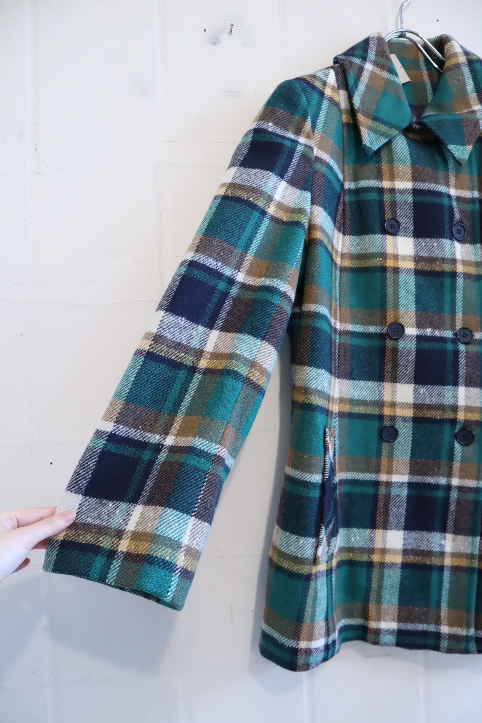 70s "PENDLETON" green×orange plaid coat [l-1985]