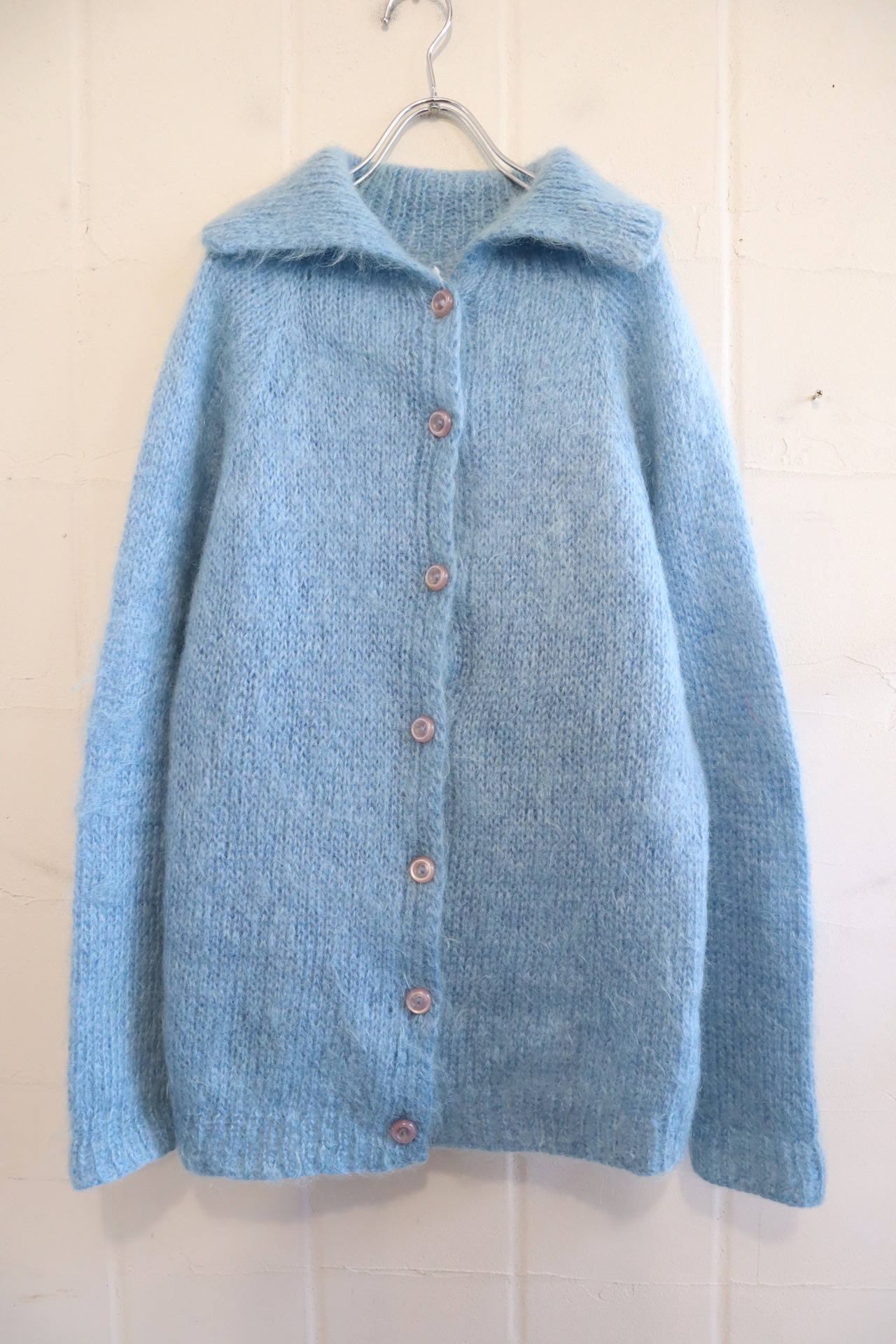 ぷっくりしたボタンが特徴的なモヘアニットカーディガン。