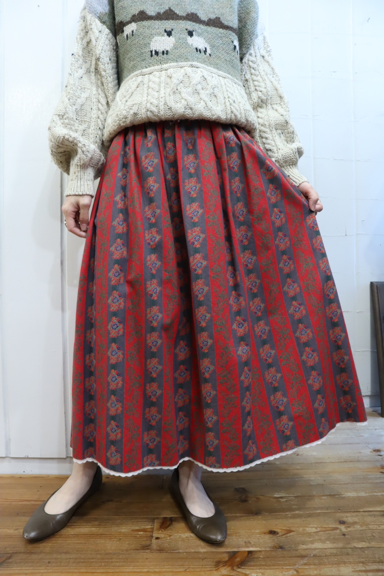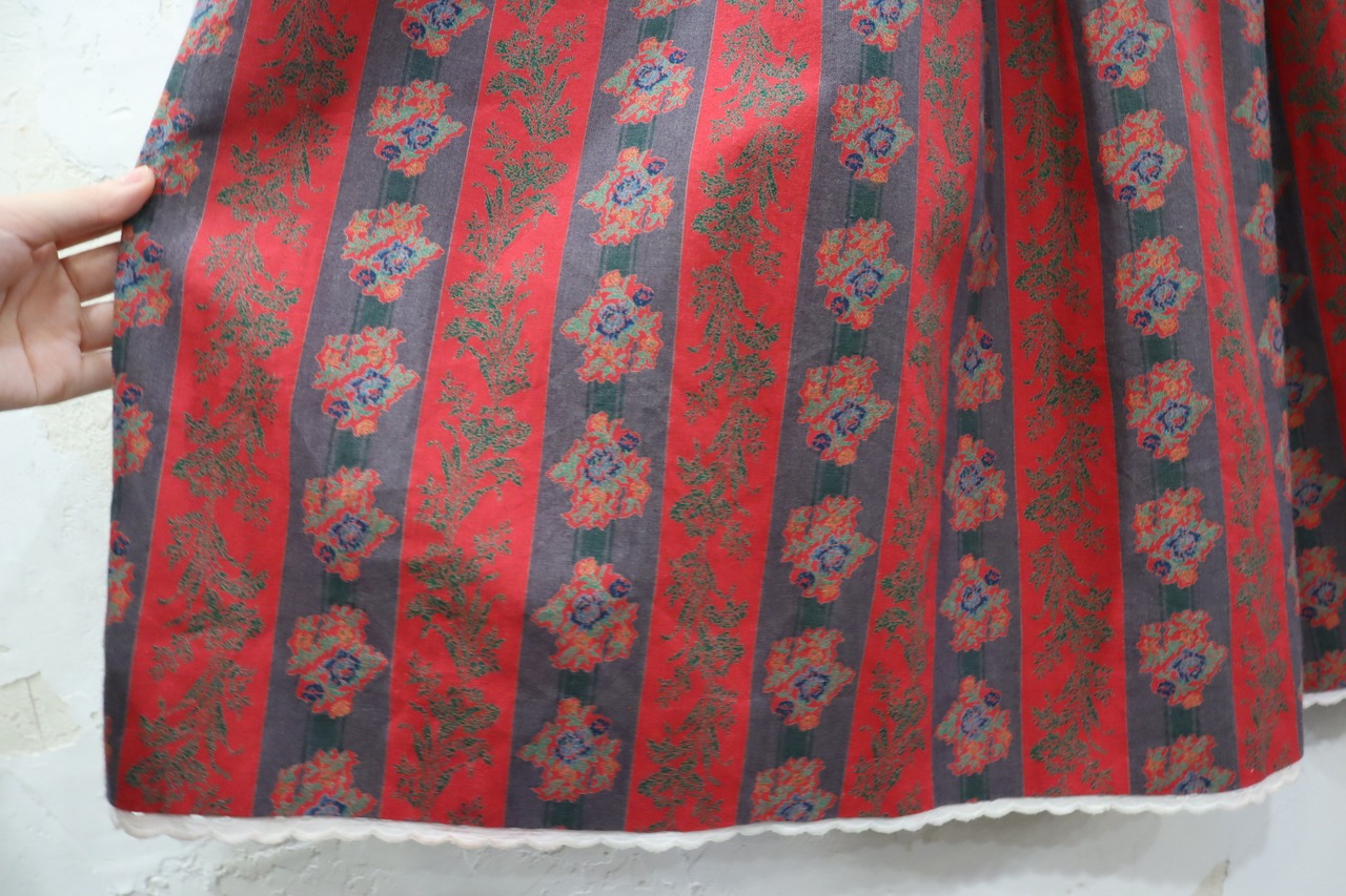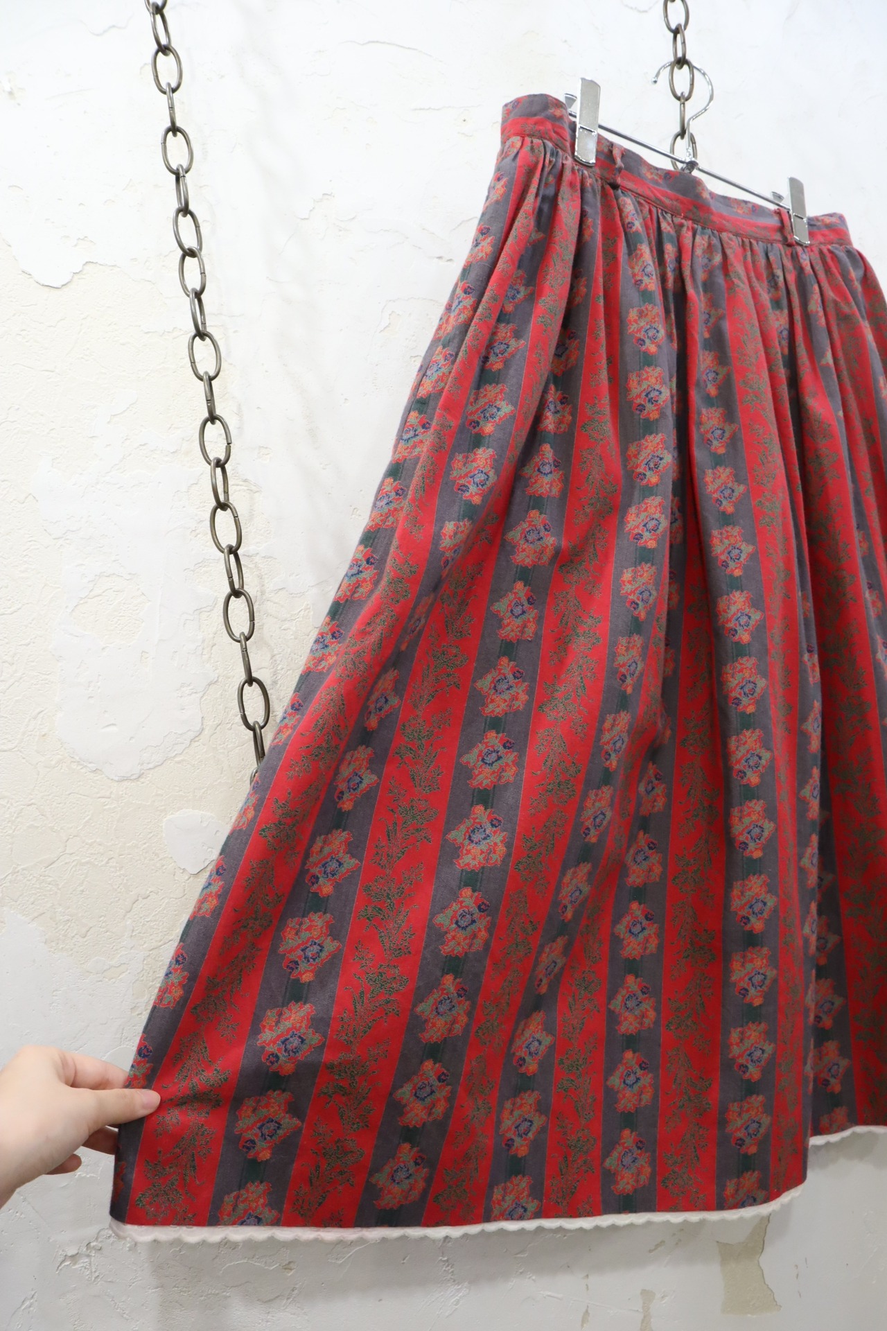 red×gray flower&stripe pattern tyrol skirt [l-2006]