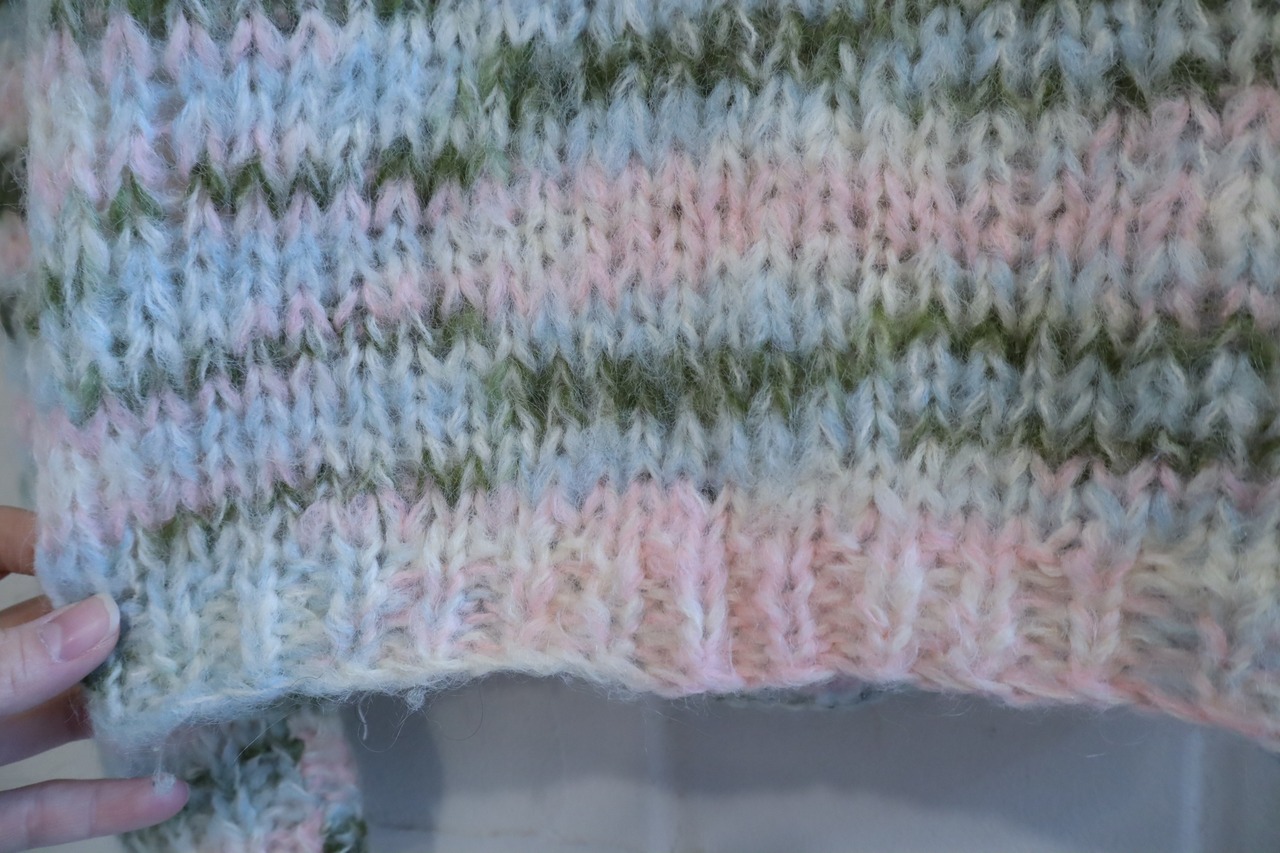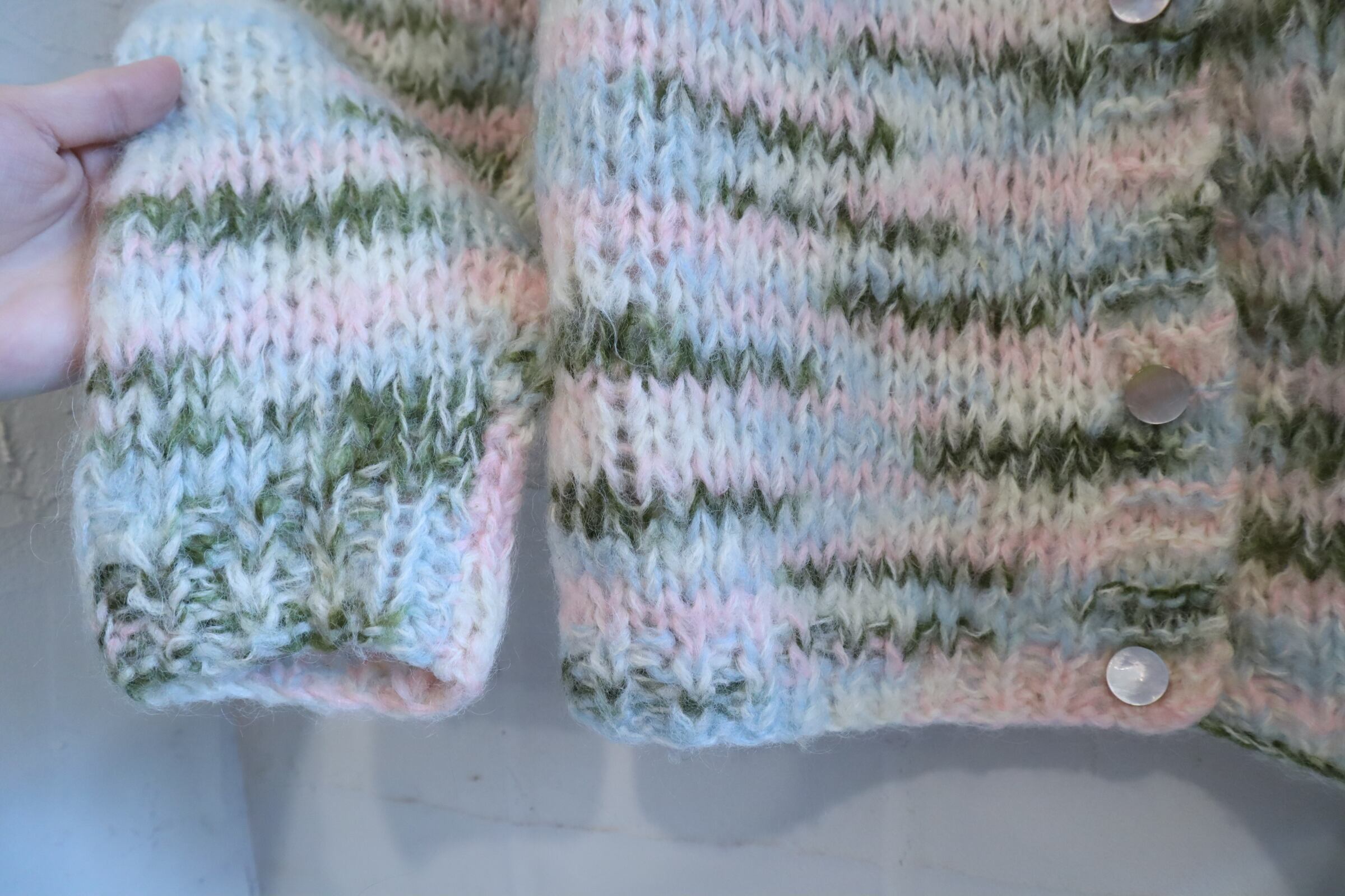 ボーダーのようにミックスされたカラーリングが可愛いイタリア製のモヘアニットカーディガン。
