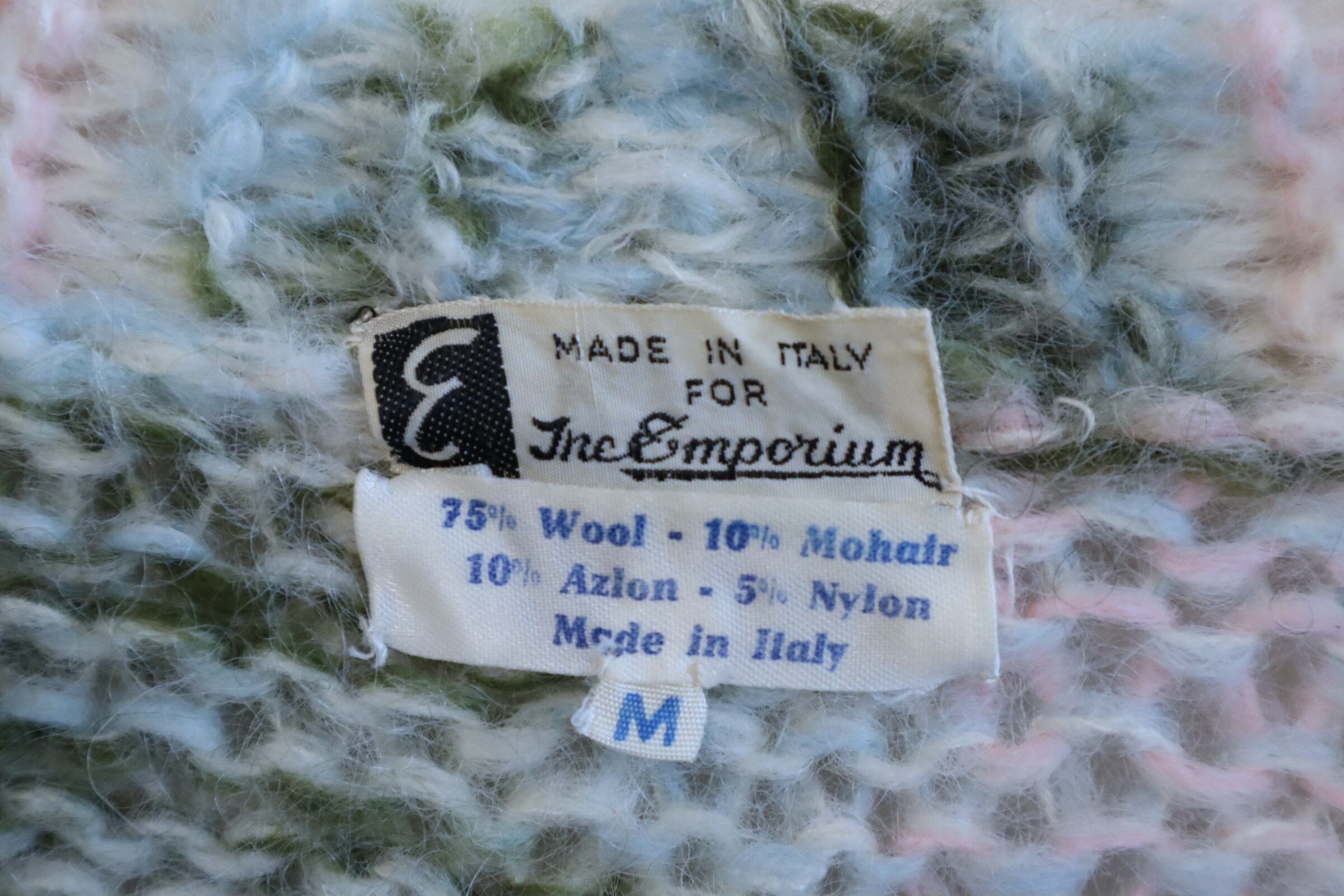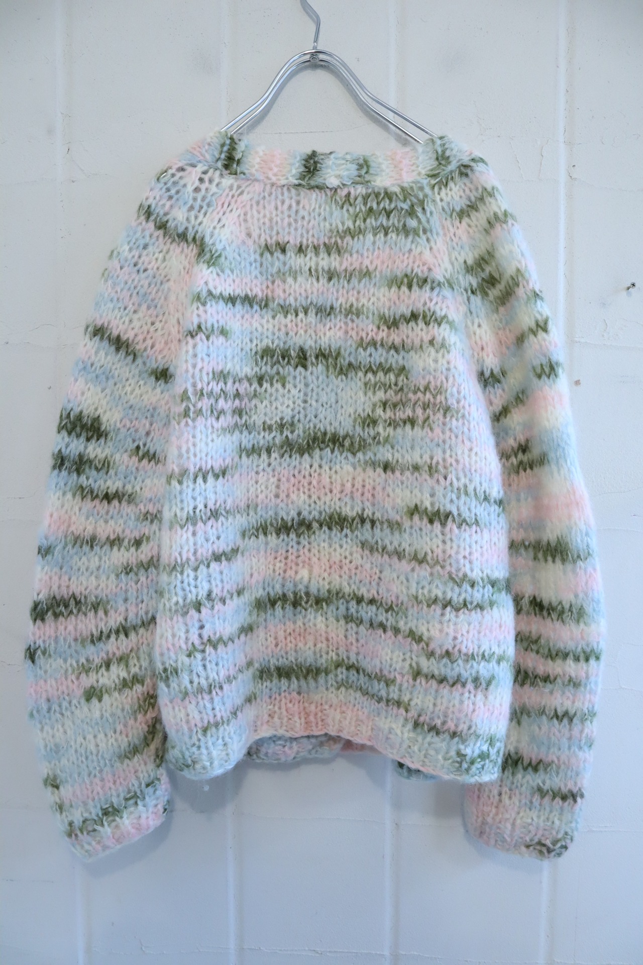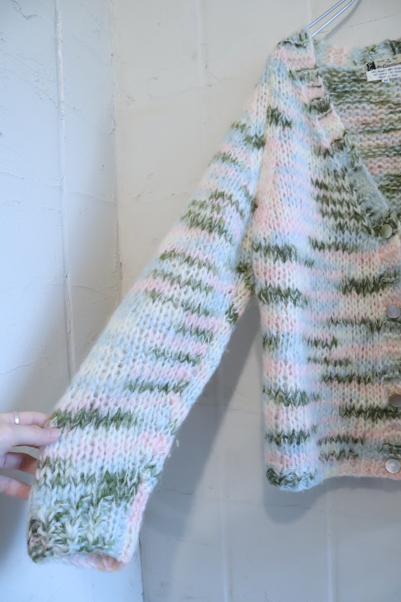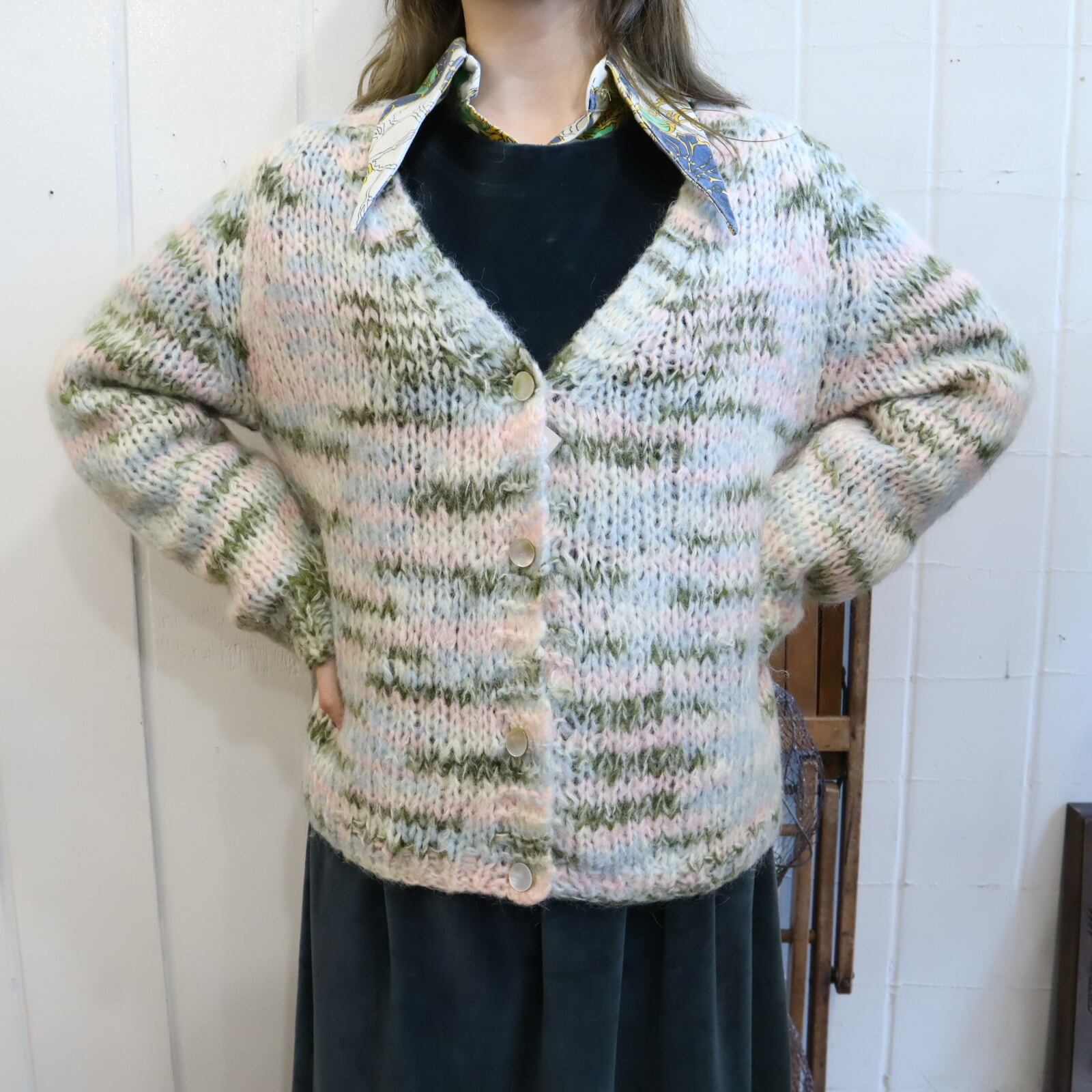 60s made in ITALY green×colorful V-neck mohair knit cardigan [l-2019]