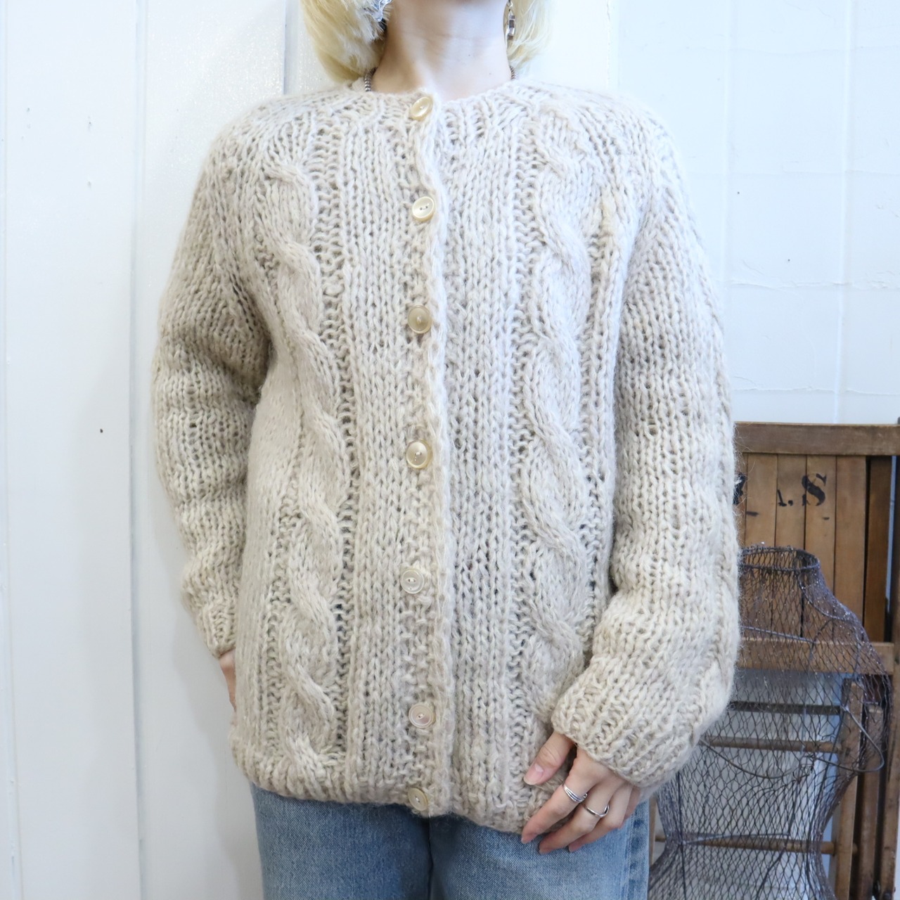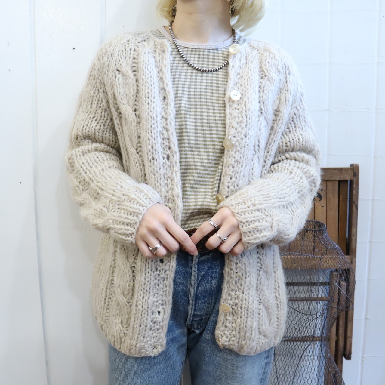made in ITALY beige crewneck mohair knit cardigan [l-2020]