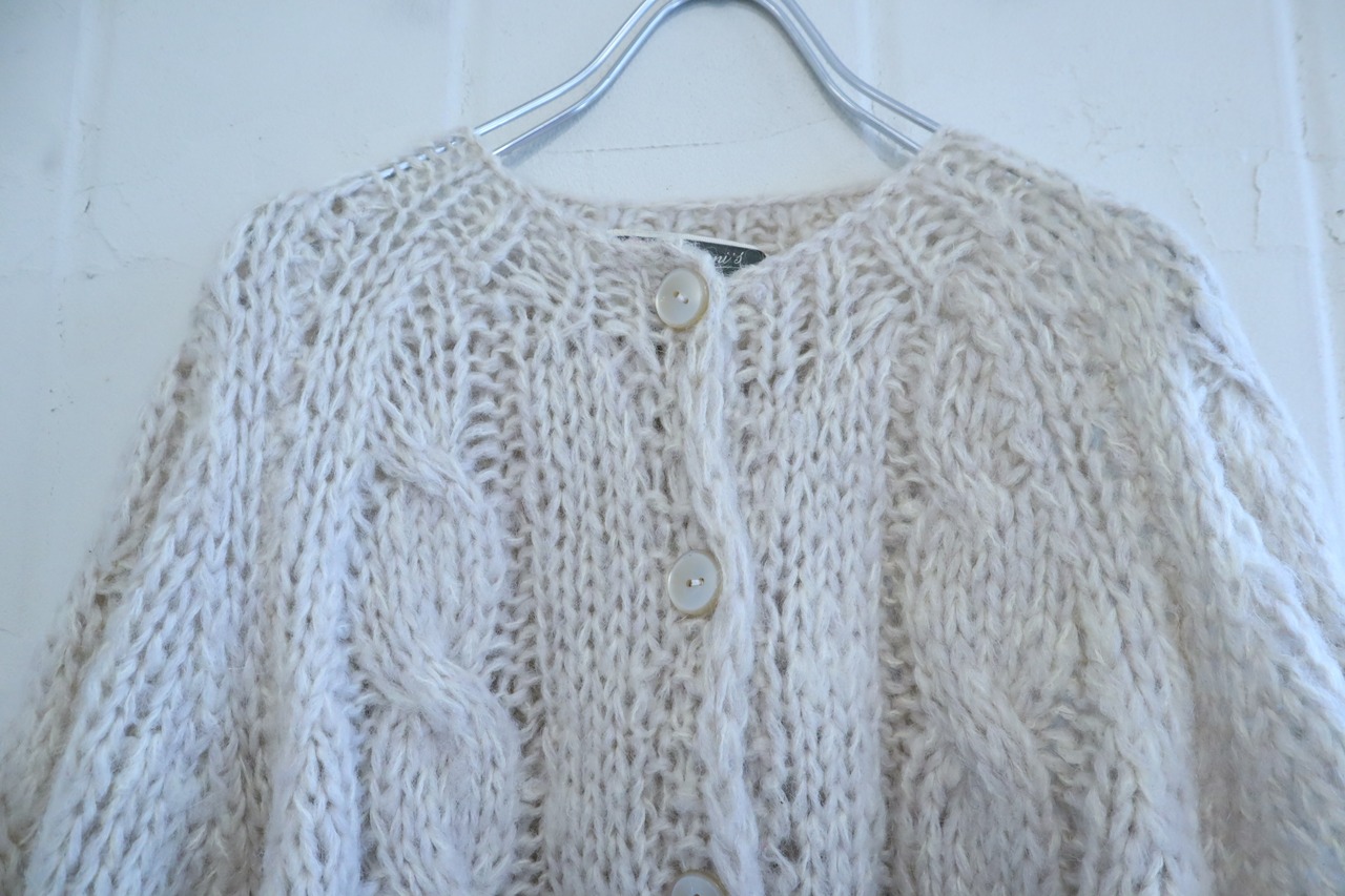 シンプルなつな編みが可愛いイタリア製のモヘアニットカーディガン。