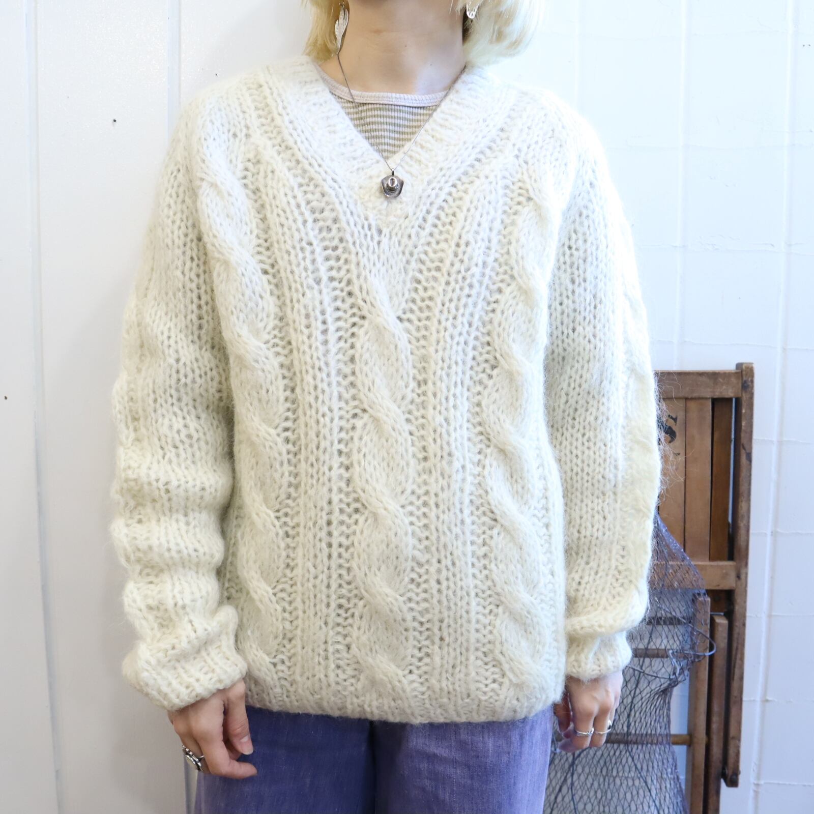 首元がすっきり見えるVネックのイタリア製プルオーバーモヘアニット。