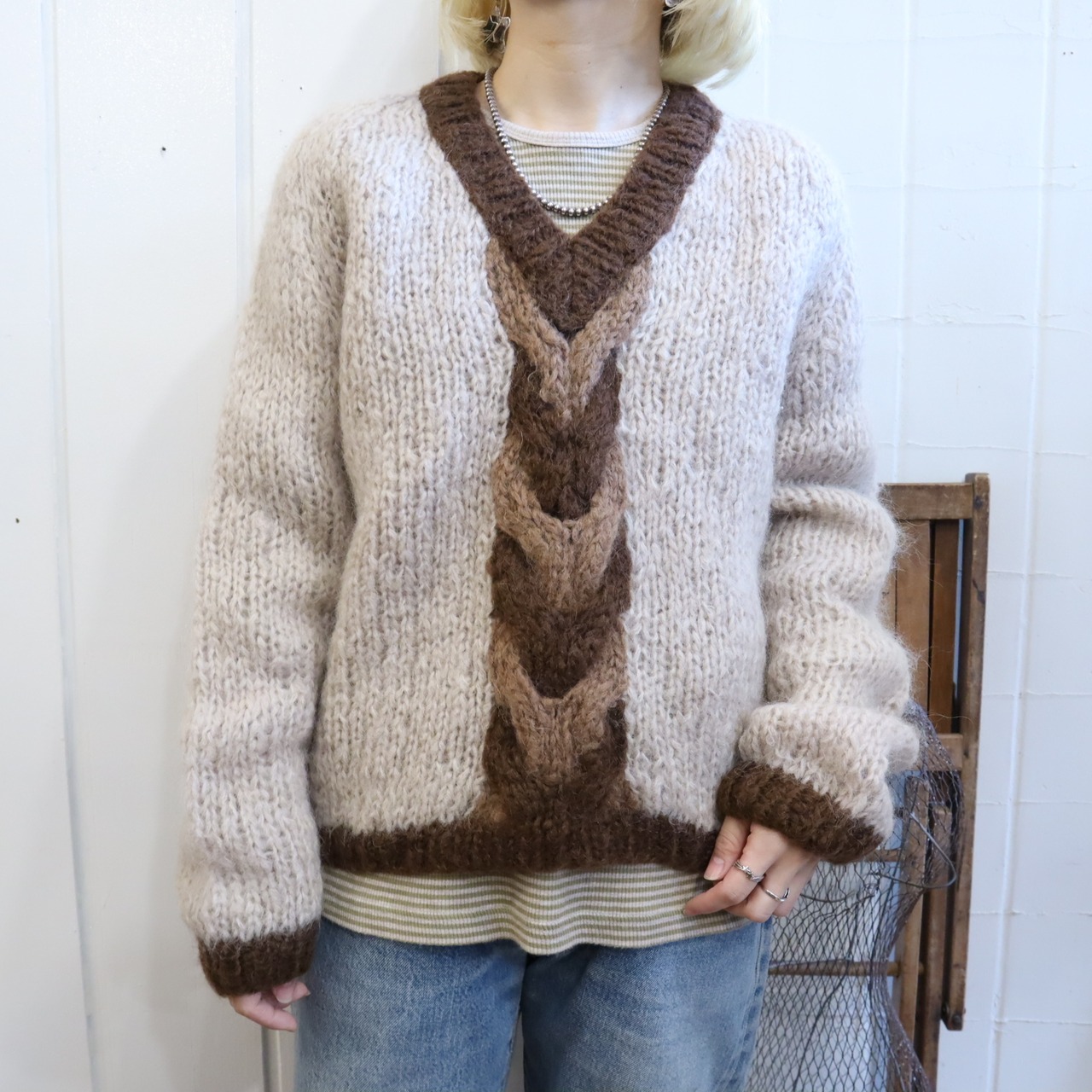made in ITALY beige×brown mohair knit pullover [l-2022]