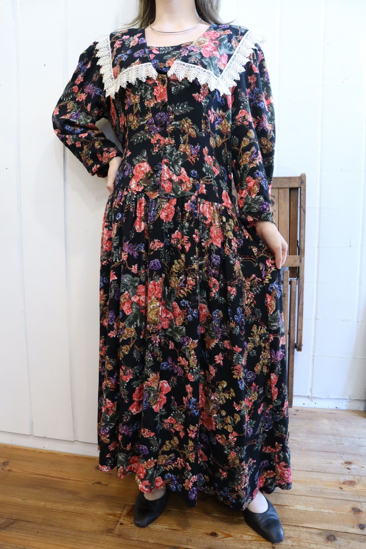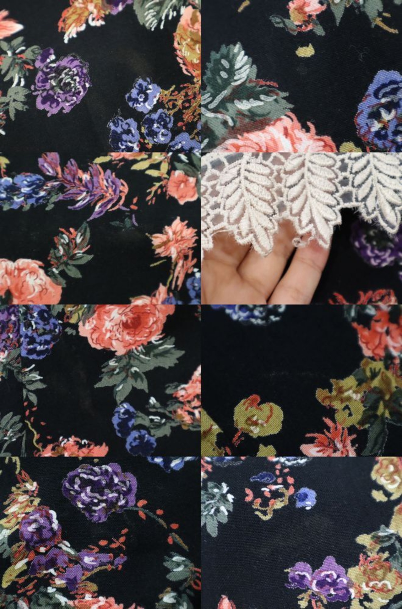 ブラックにピンクや紫の花柄が映えたデザインが素敵なインドレーヨンドレスです♡