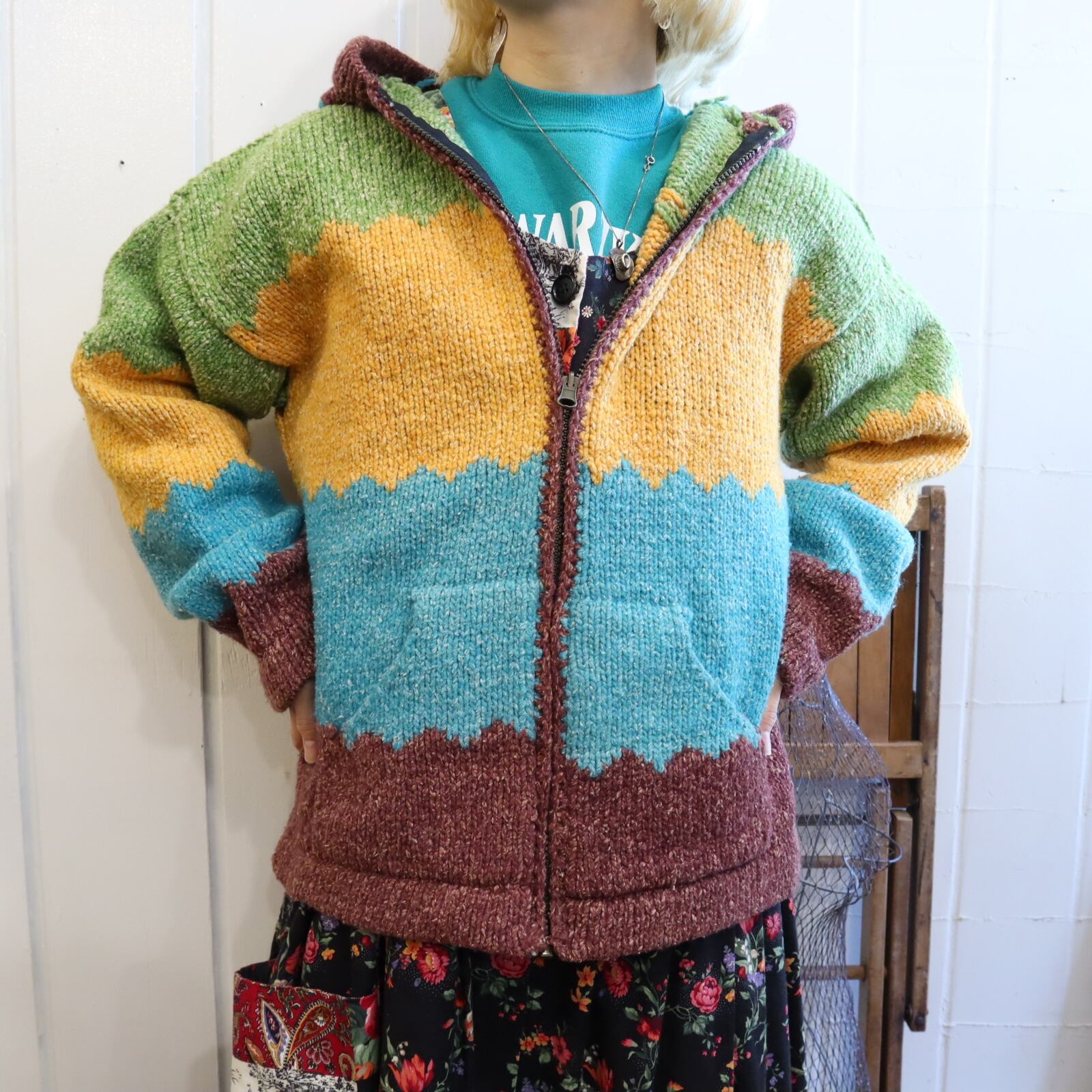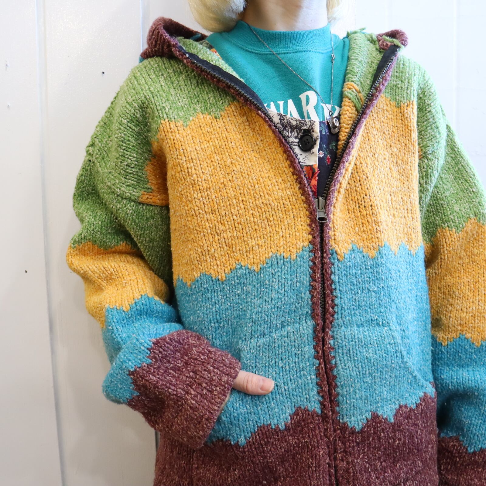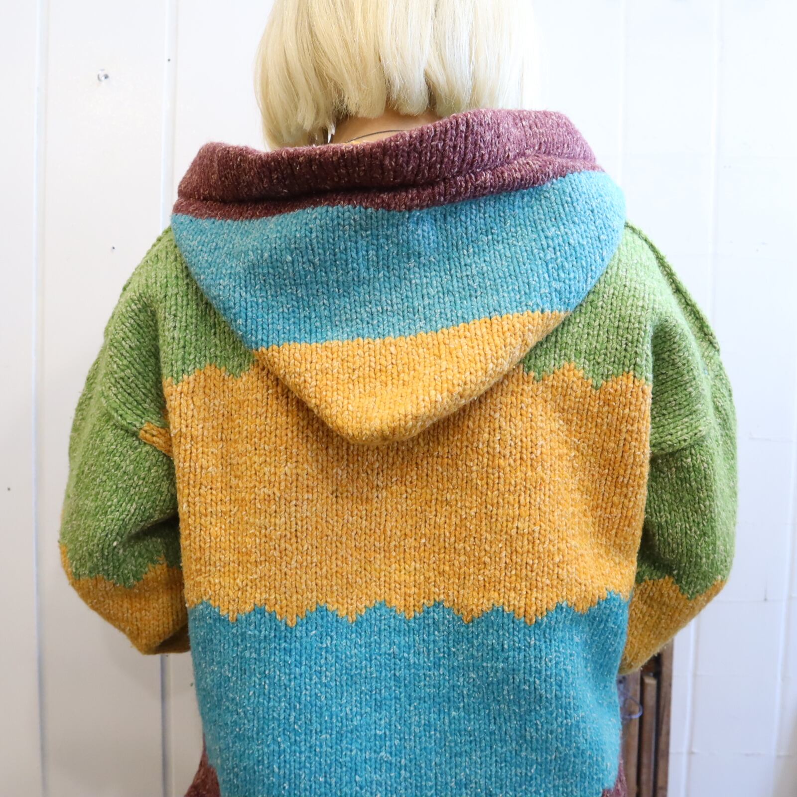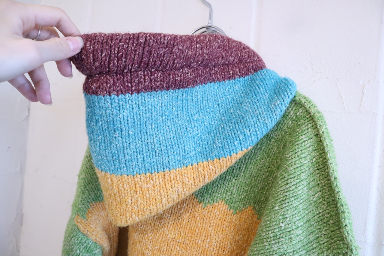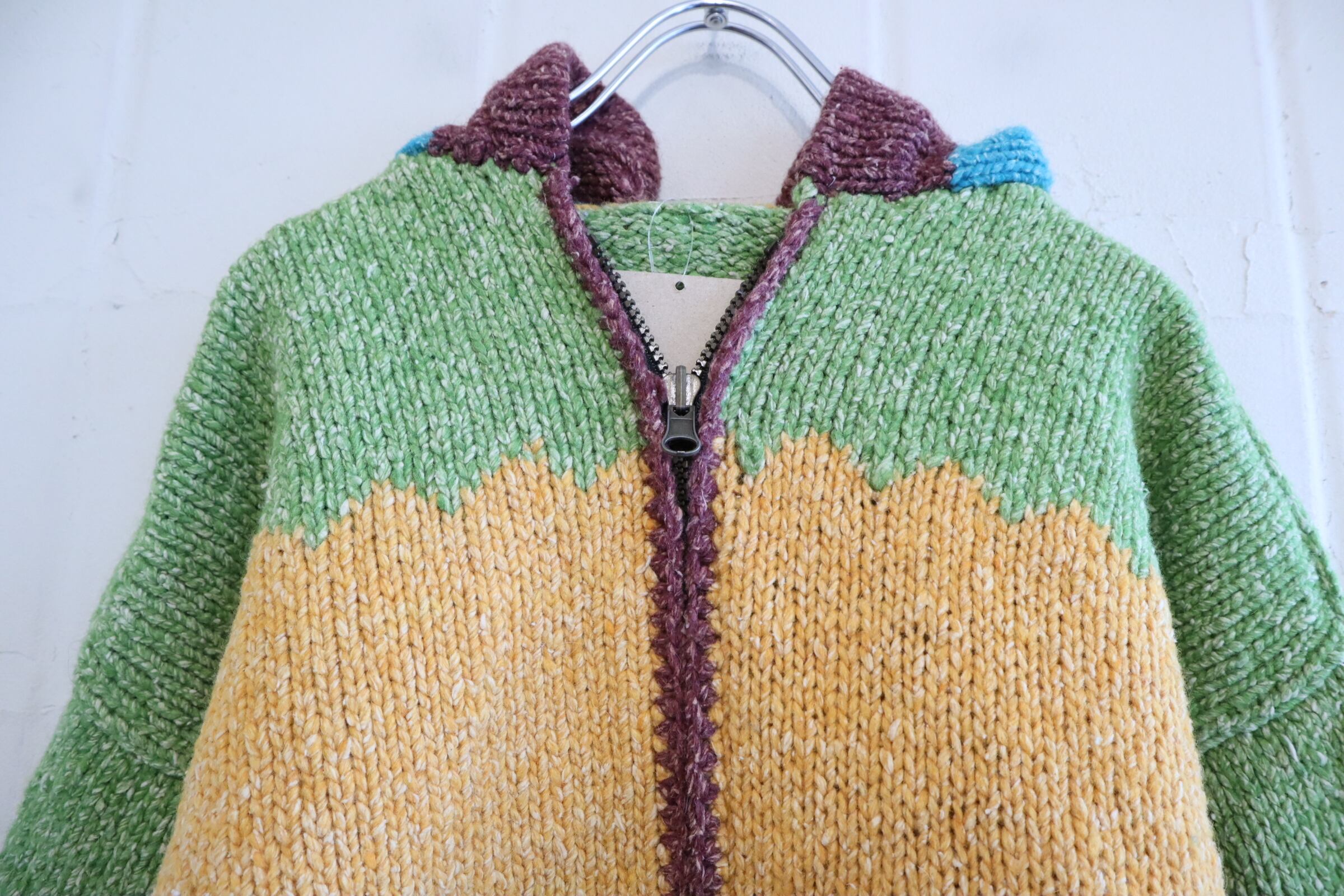 yellow×lightblue×lightgreen hoodie knit cardigan [l-2027]