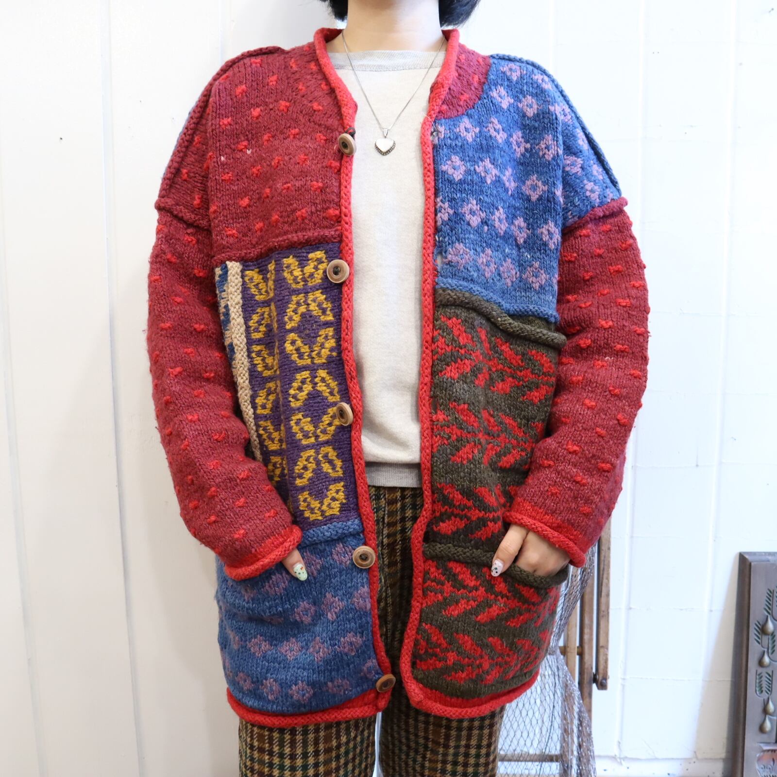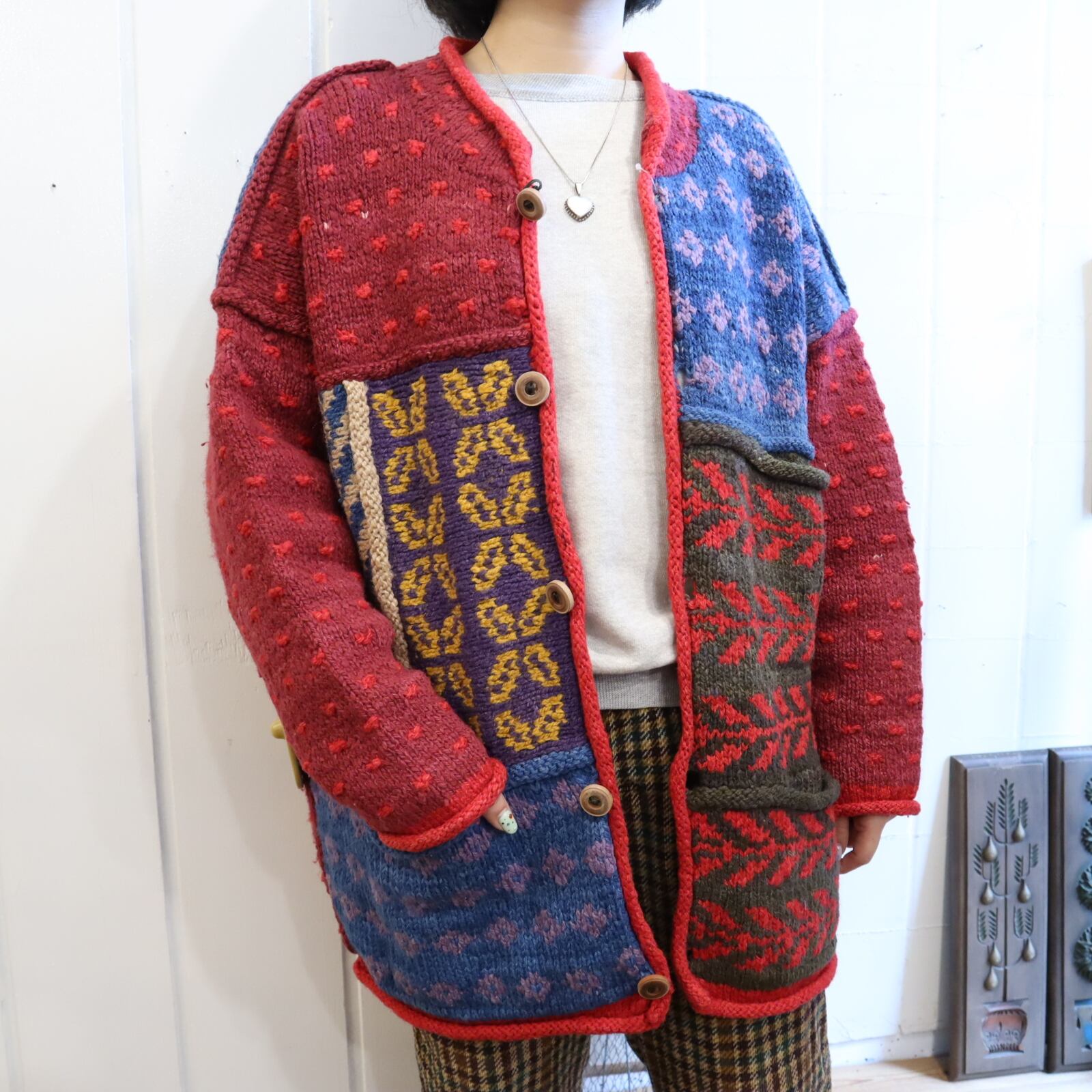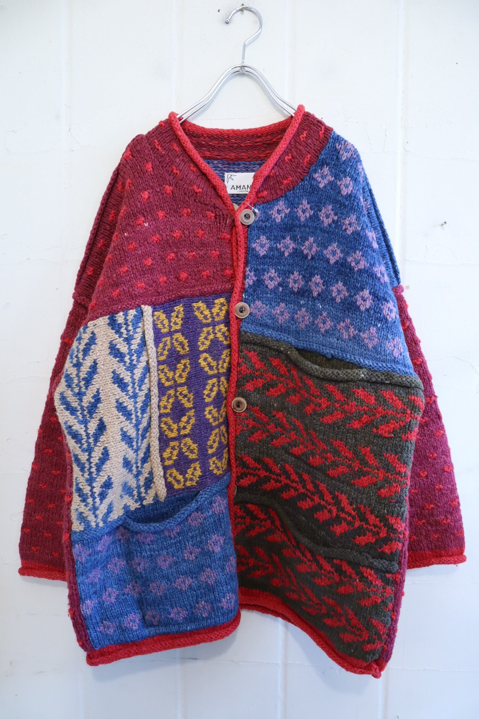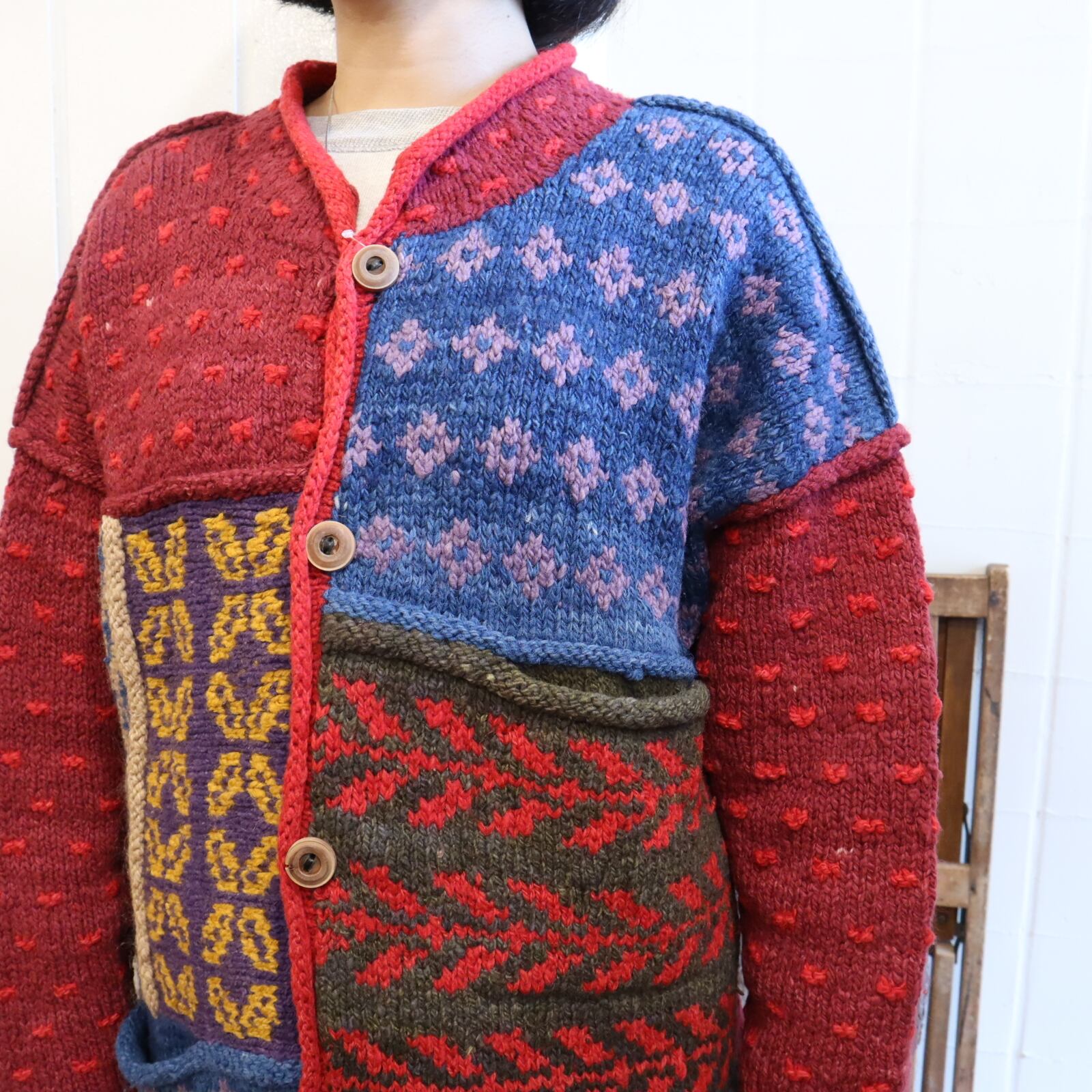 "AMANO" red×blue×colorful standcollar knit cardigan [l-2031]