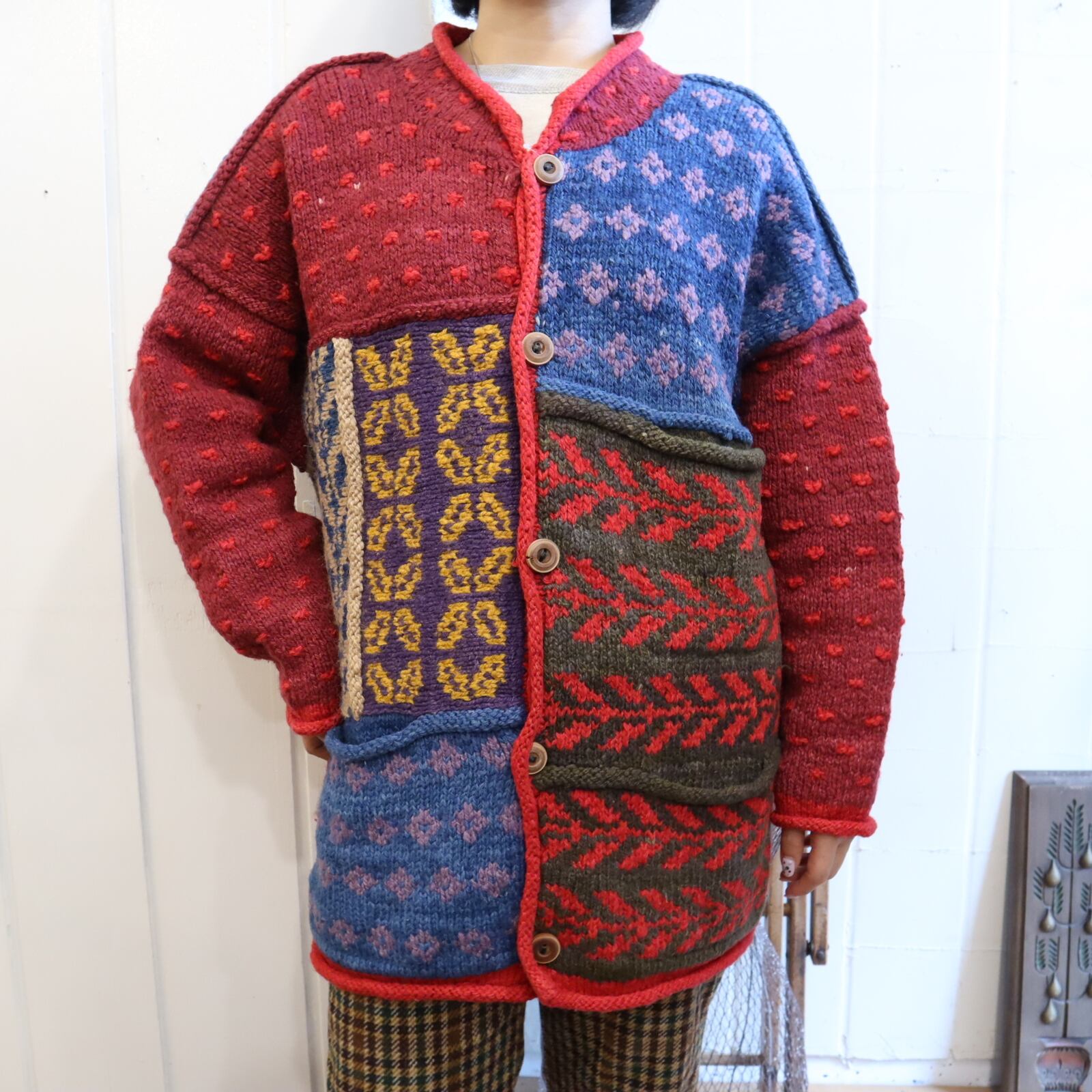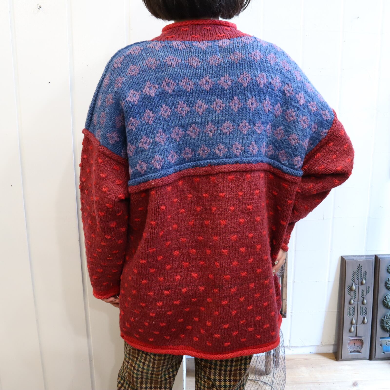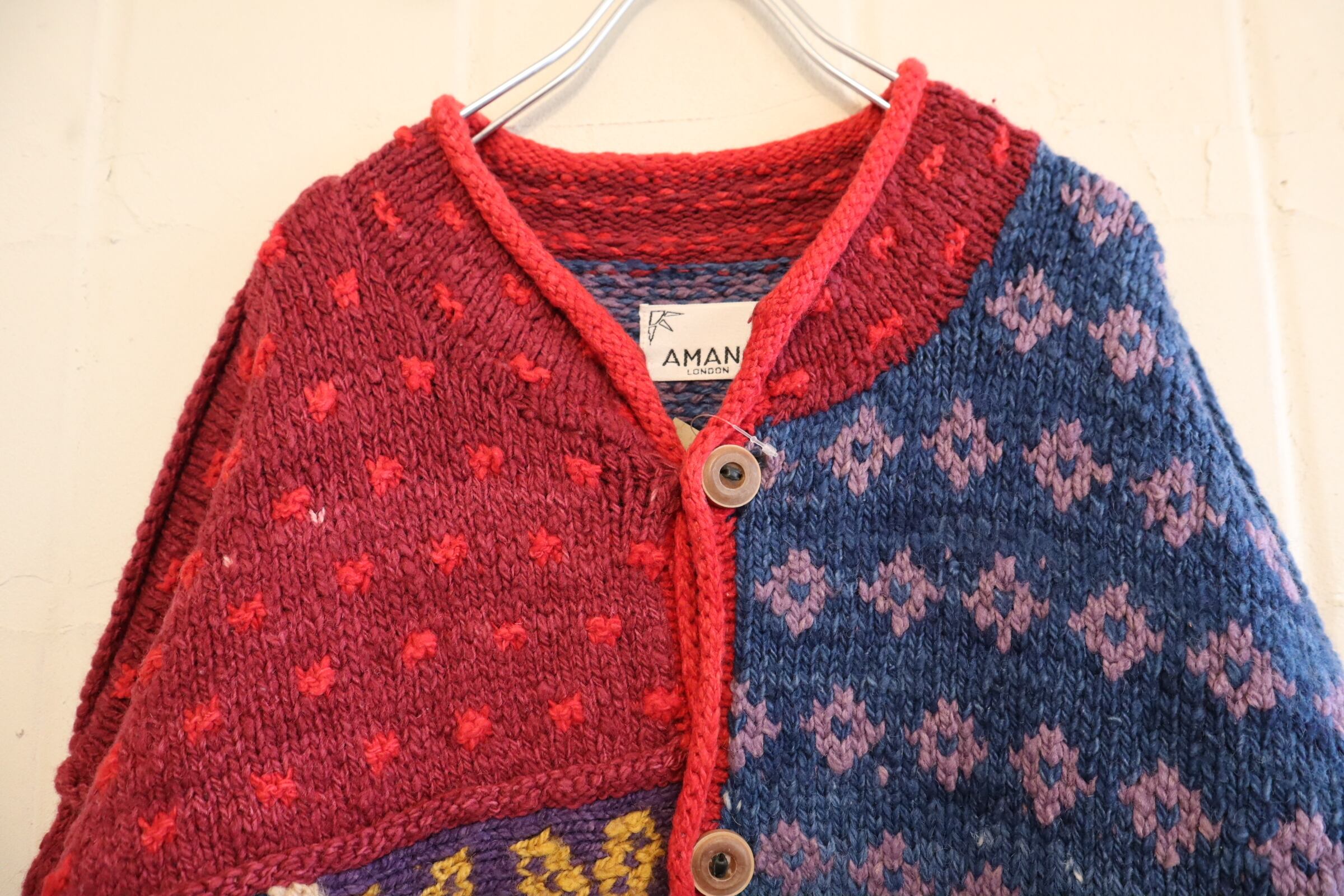 "AMANO" red×blue×colorful standcollar knit cardigan [l-2031]