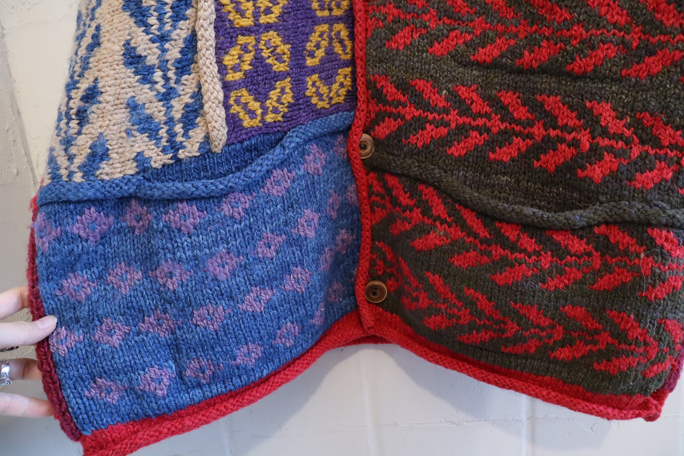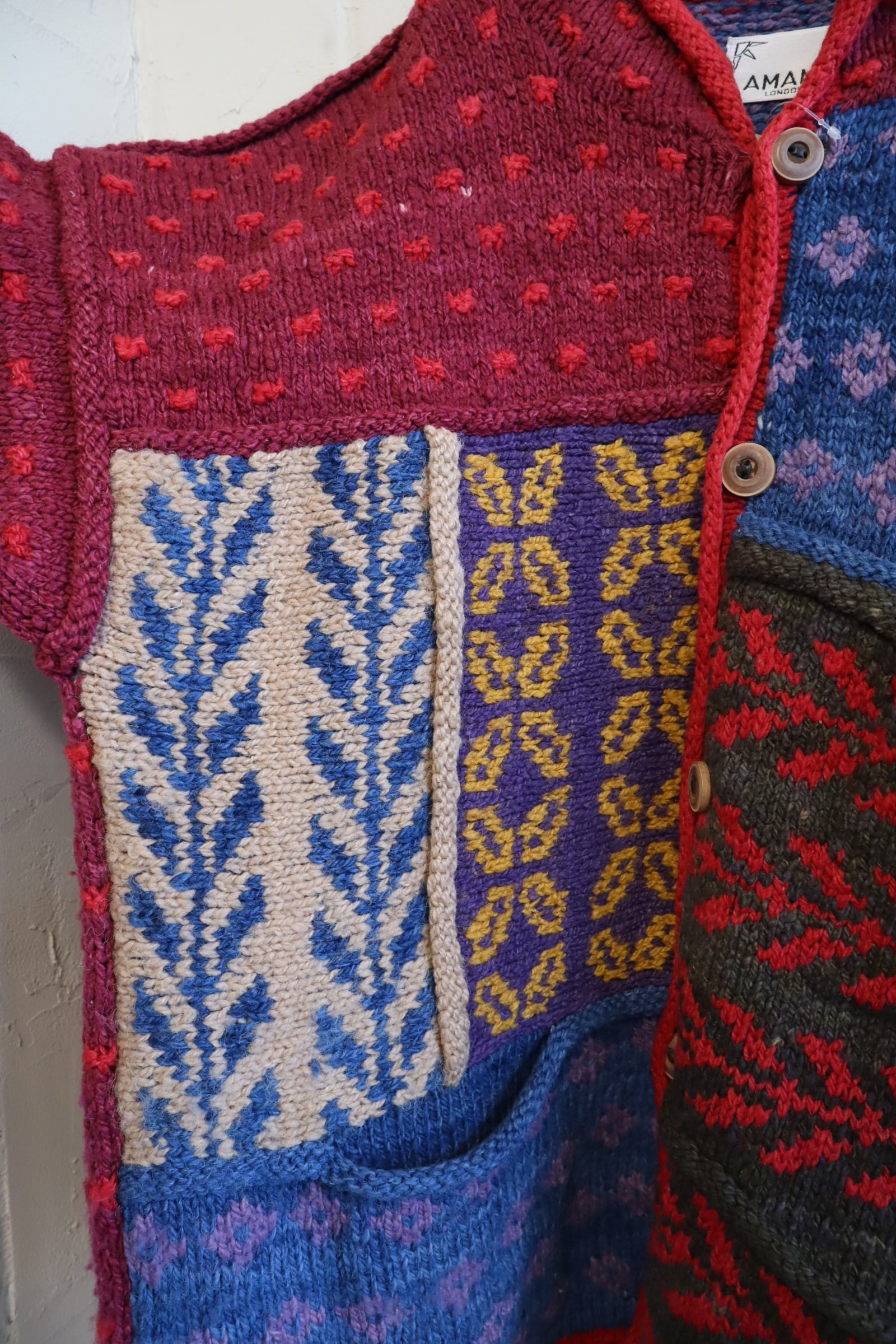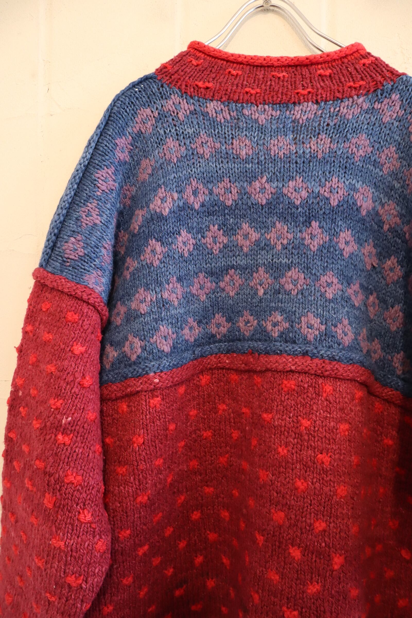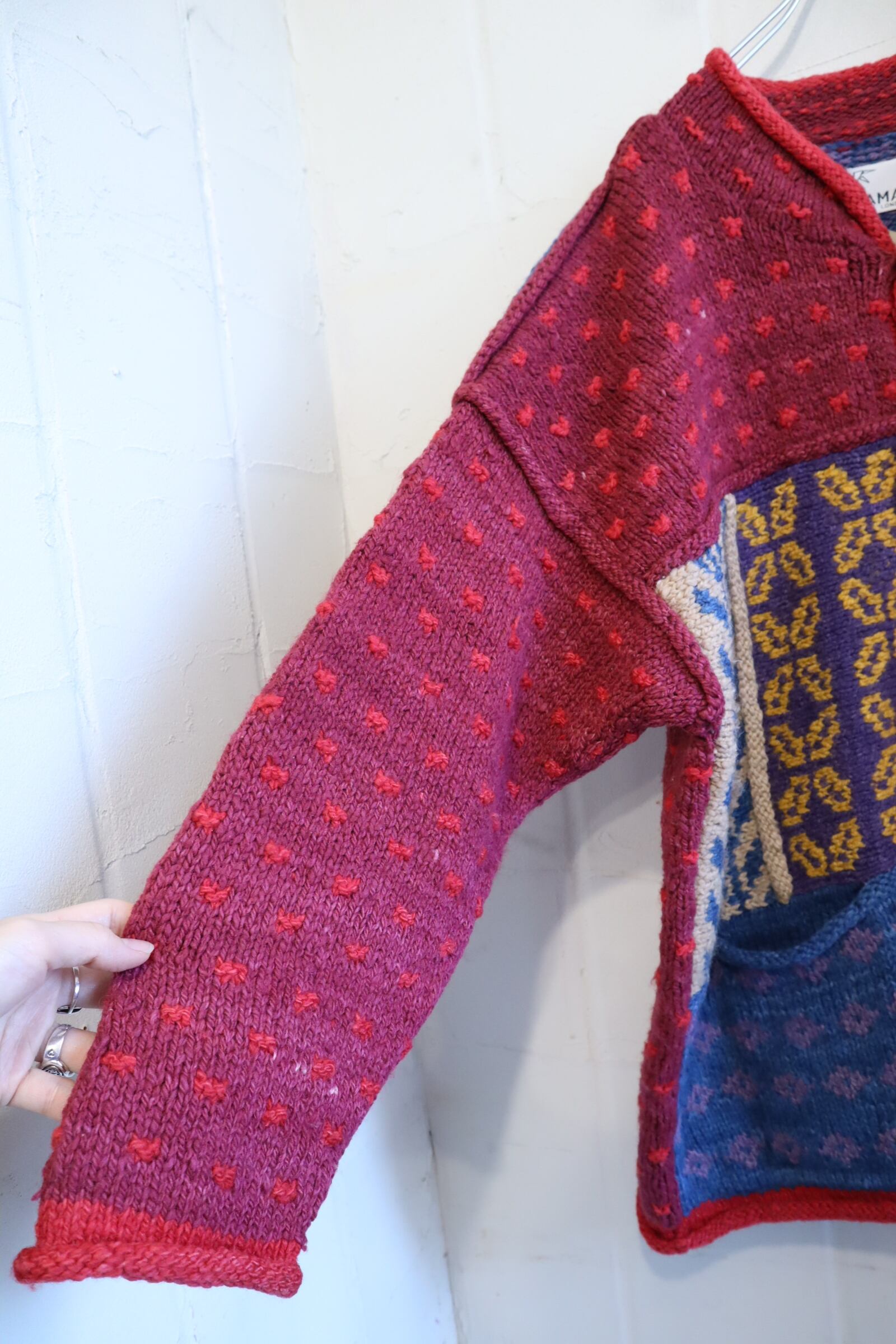 "AMANO" red×blue×colorful standcollar knit cardigan [l-2031]