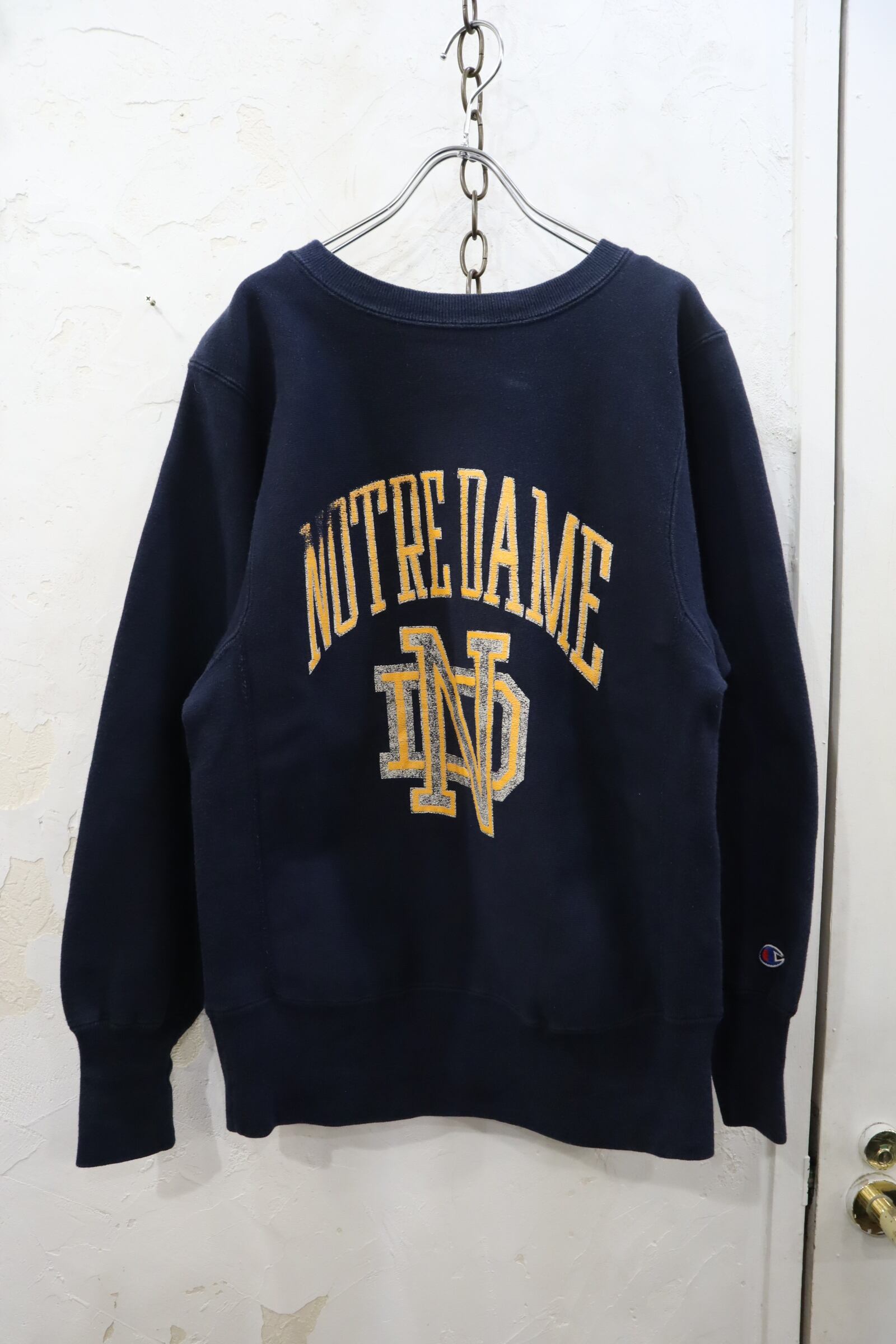 made in USA 80s"champion" navy×yellow rubber print reverse weave sweat [l-2036]