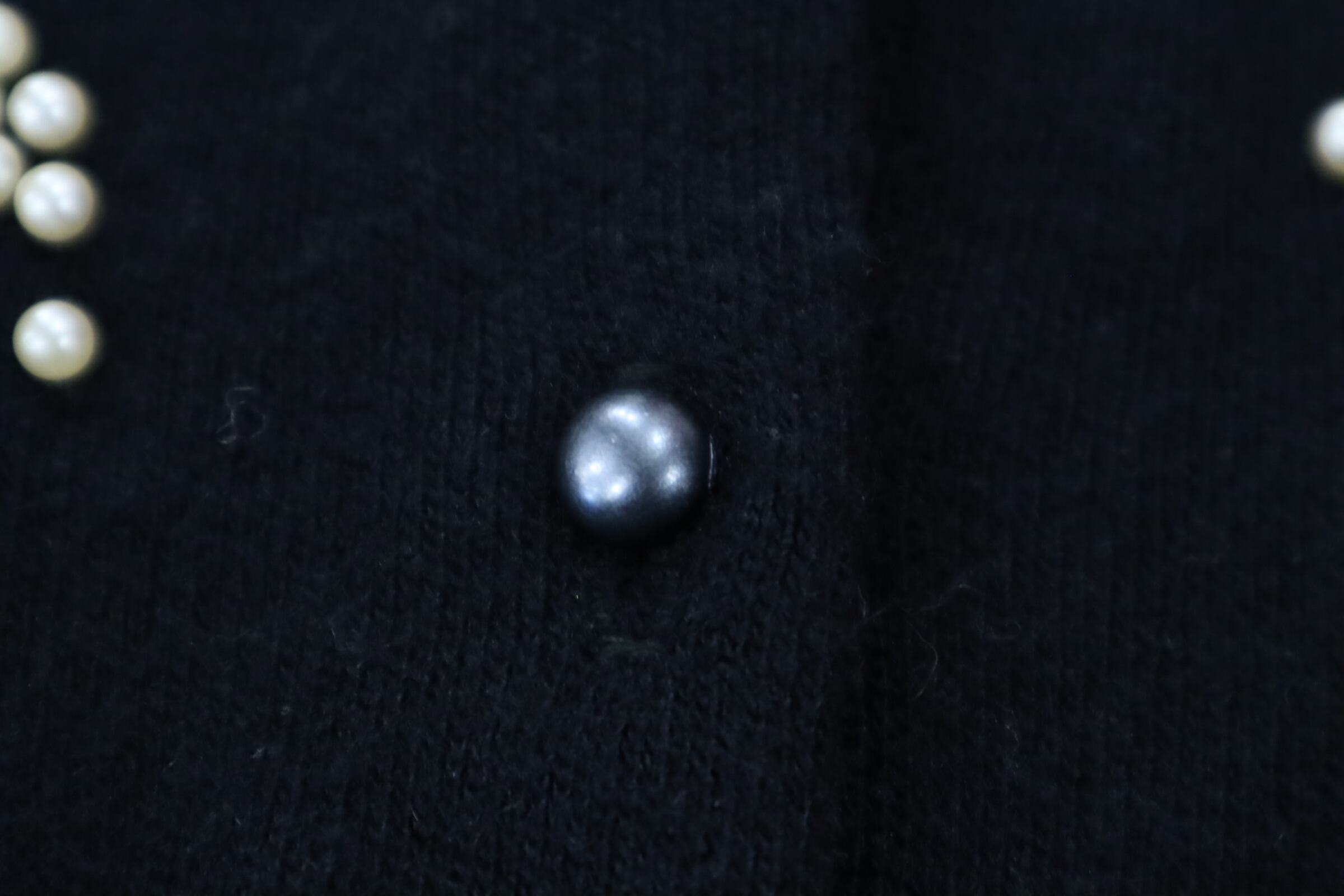 ブラック無地のボディに、ゴールドの刺繍やビーズが上品で素敵なニットカーディガン。