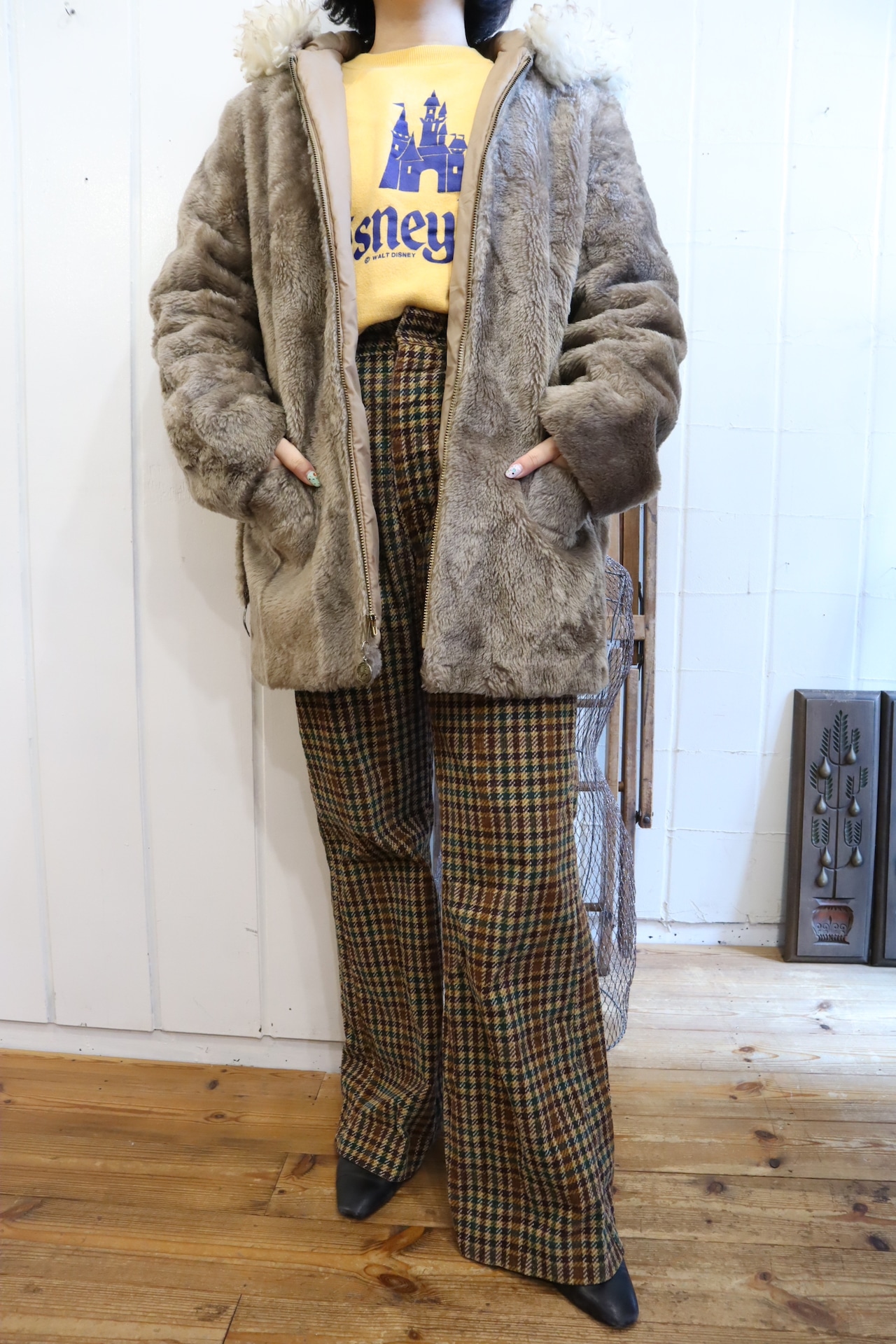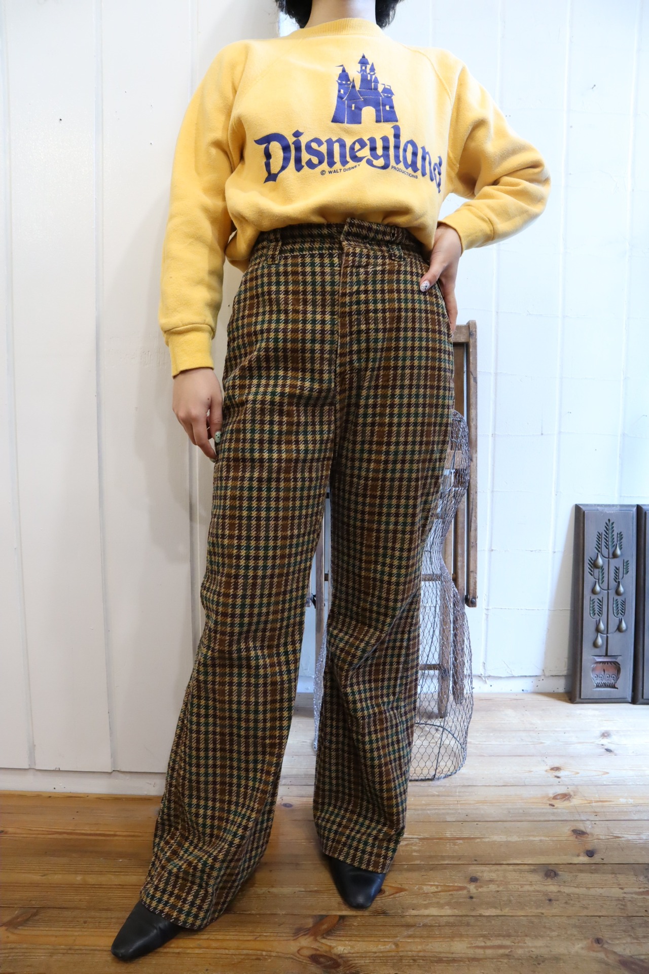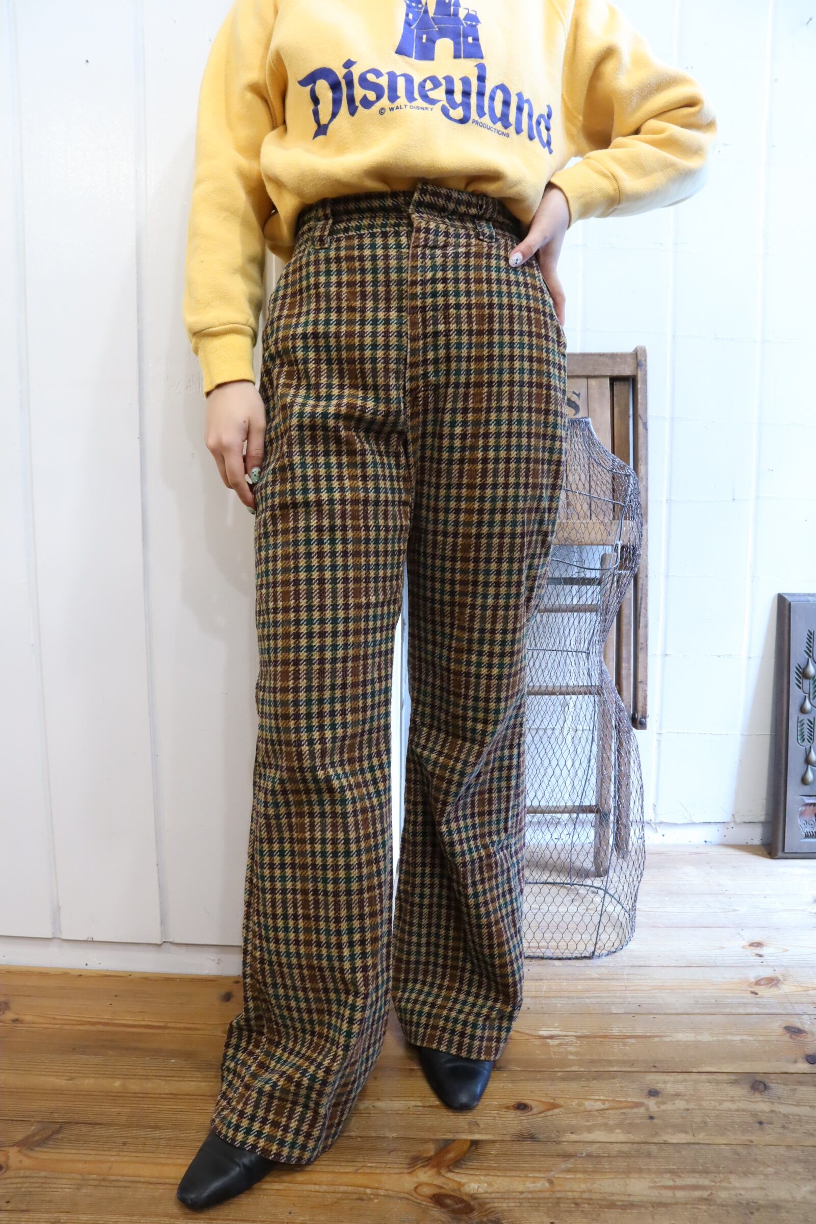 -70s brown×green plaid corduroy flare pants [l-2047]