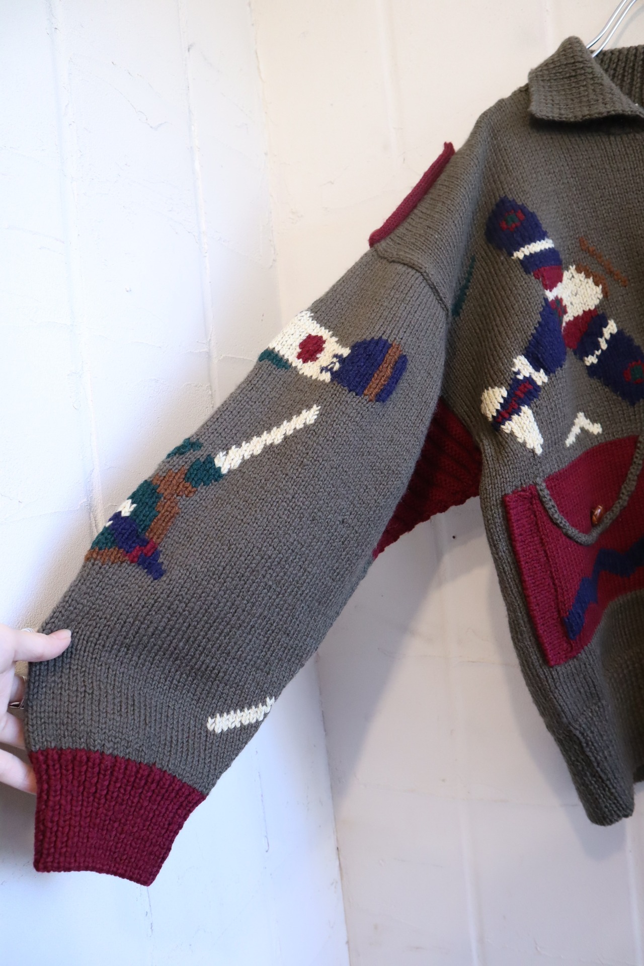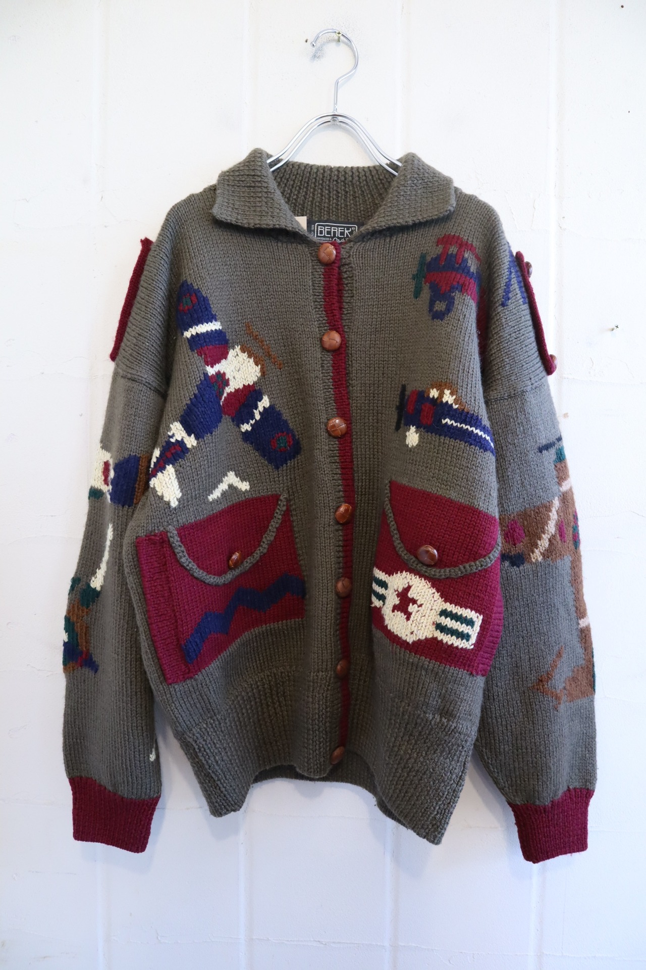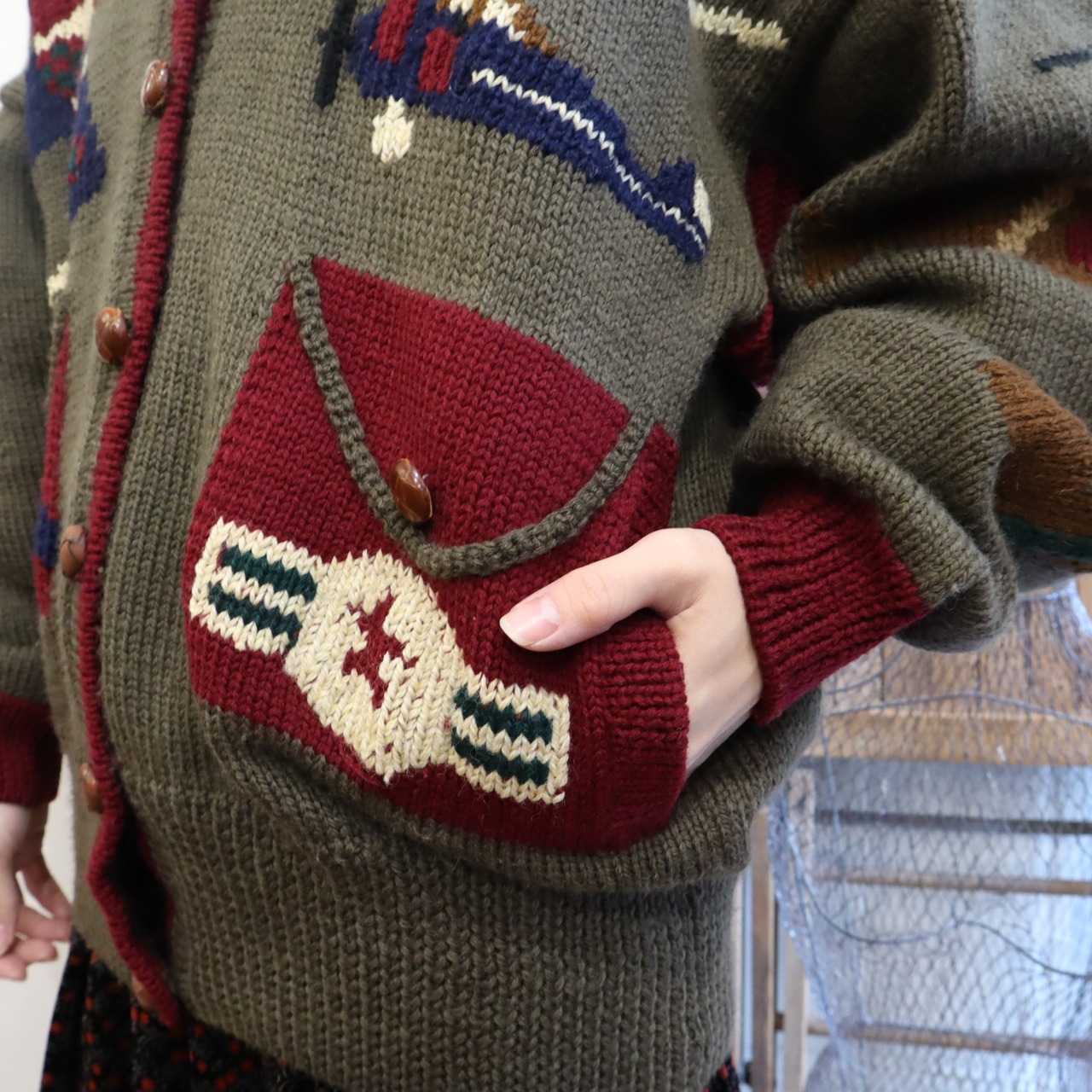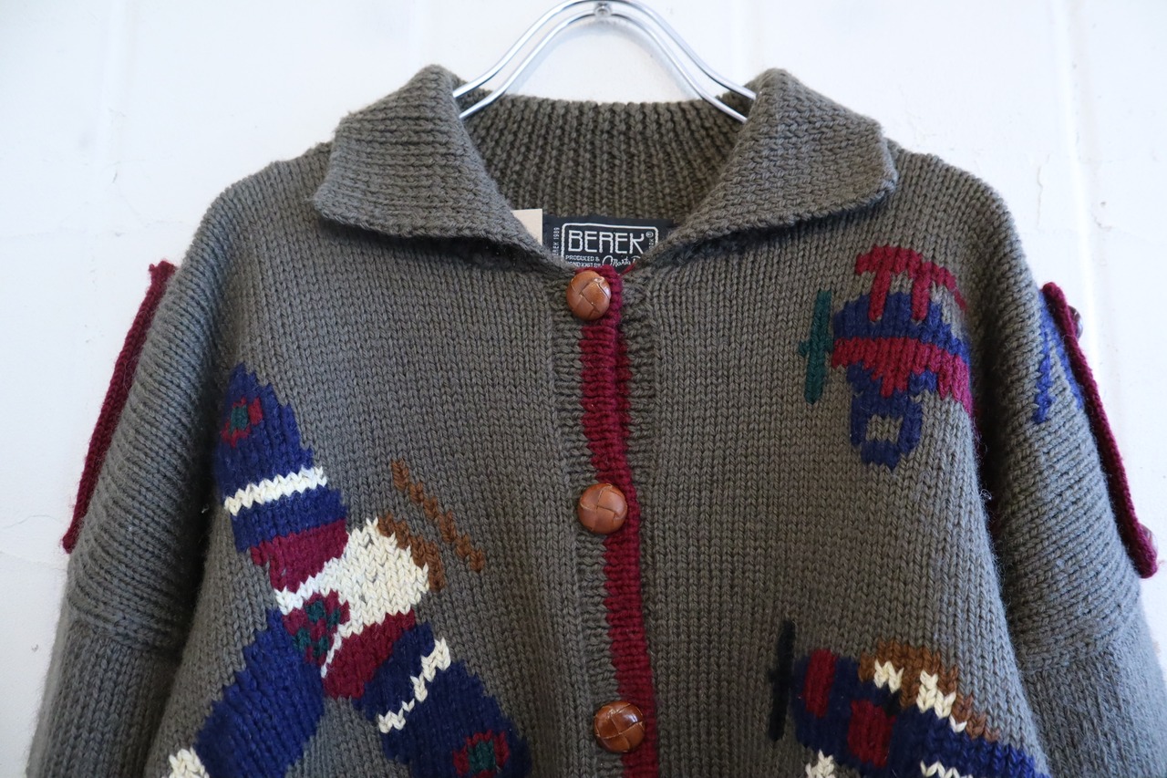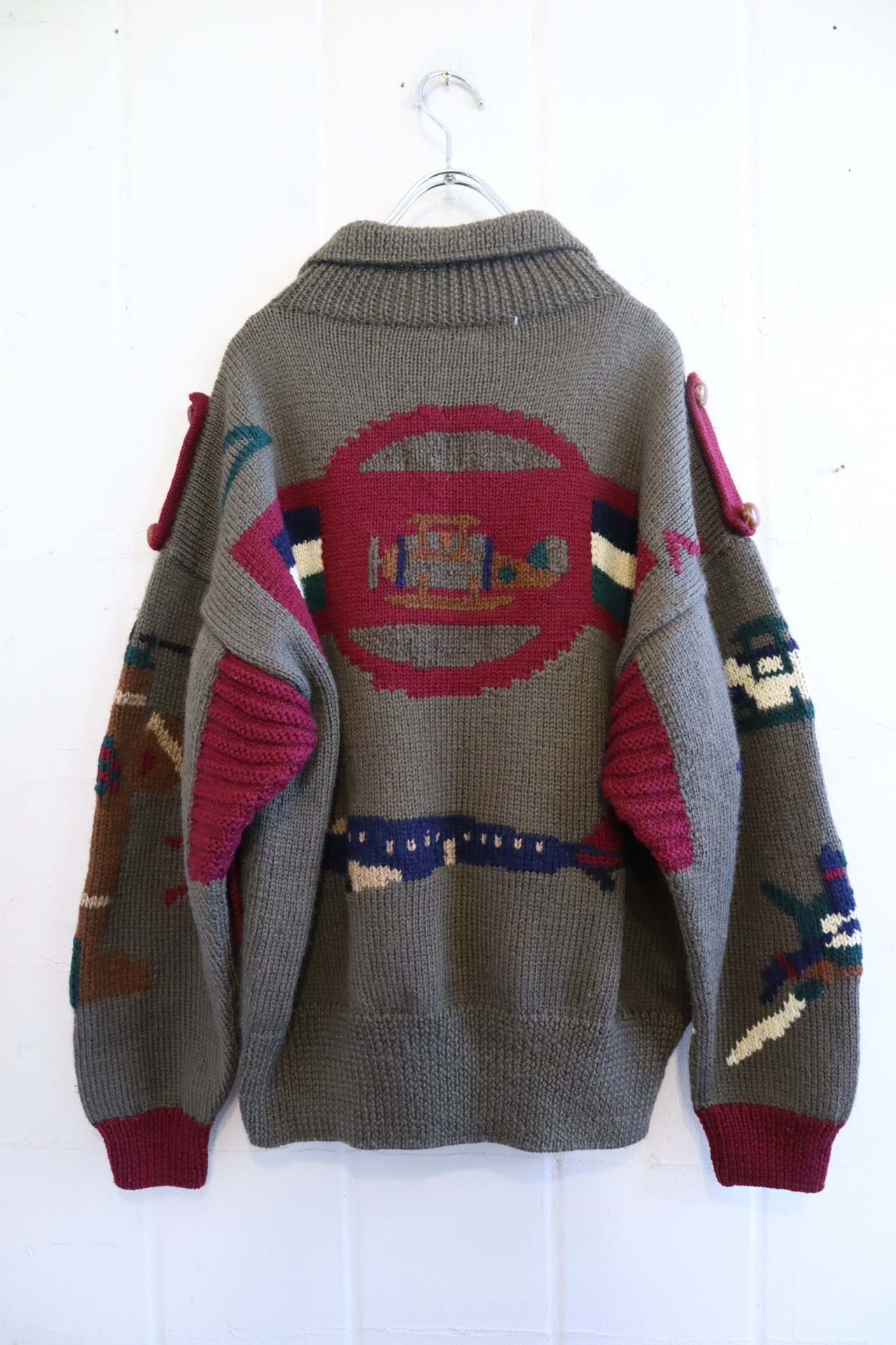 khaki×dullred helicopter wool knit cardigan [l-2055]