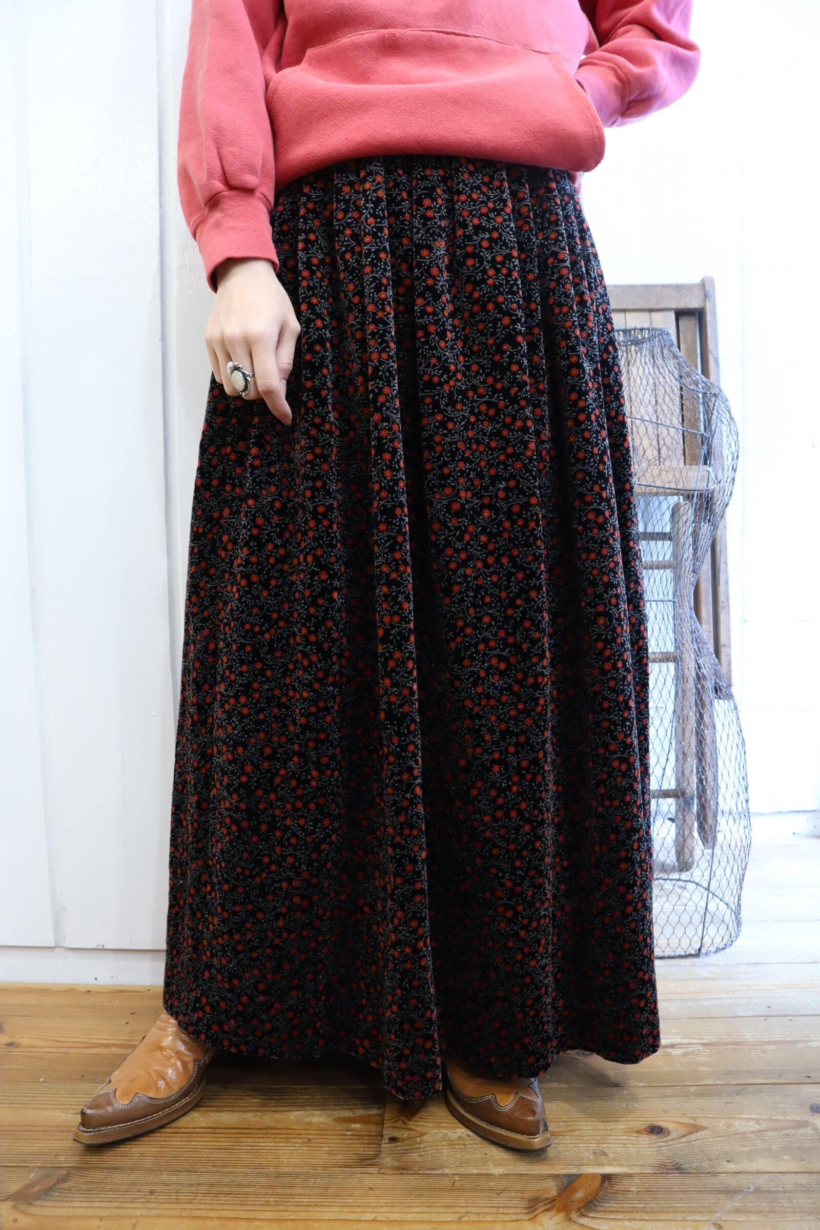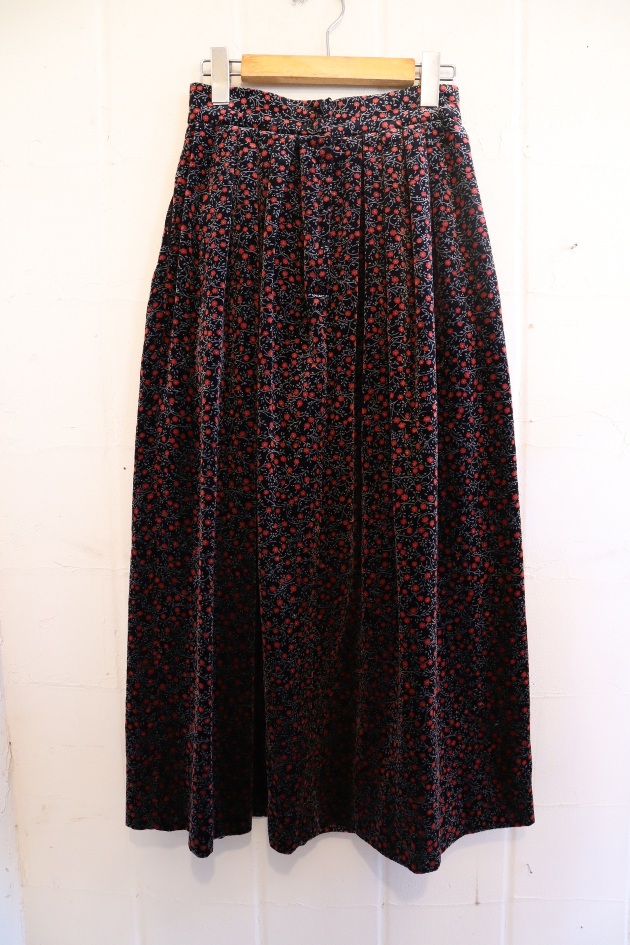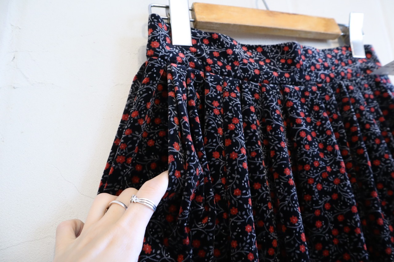 ブラック地に散りばめられた小花柄が可愛いベロアスカート♡