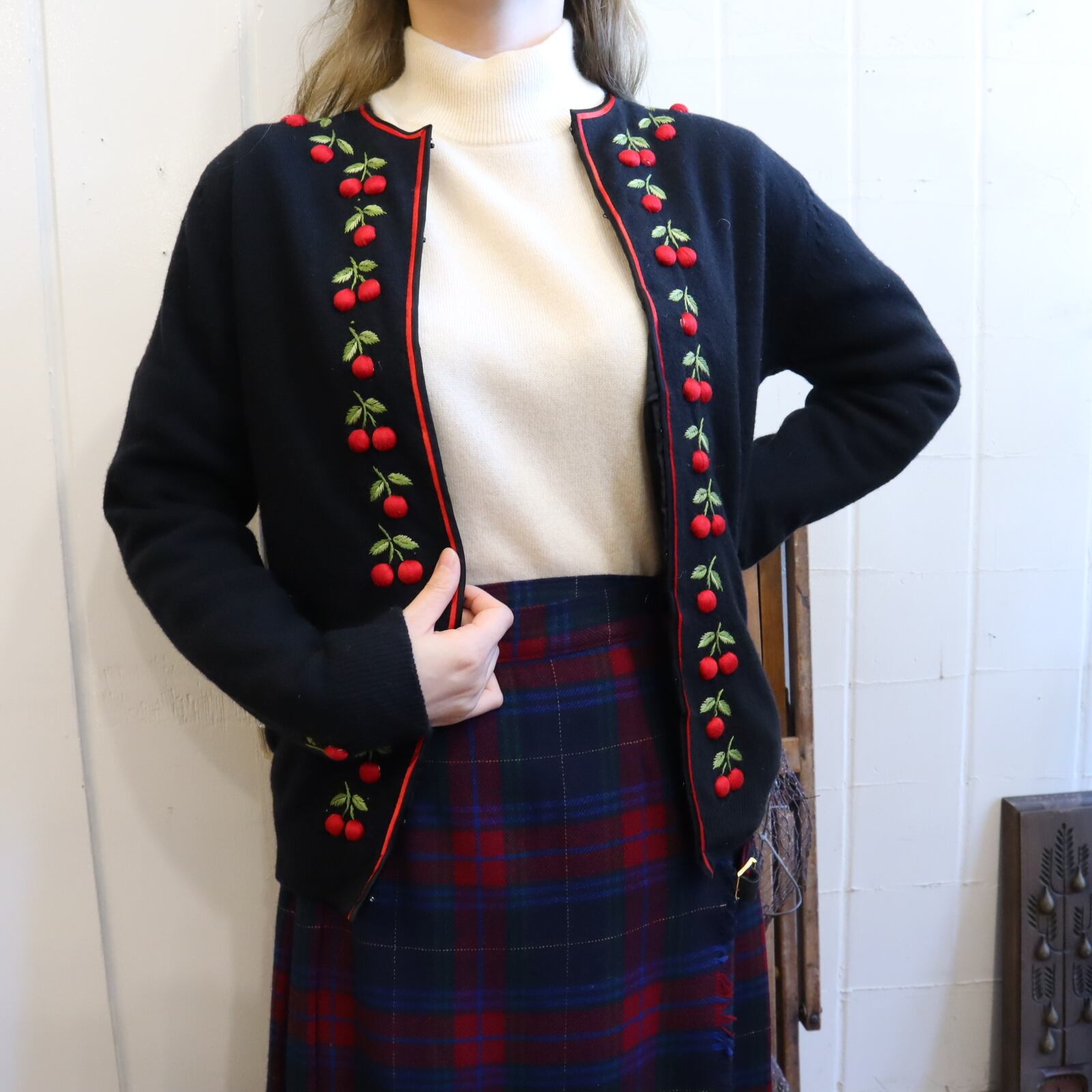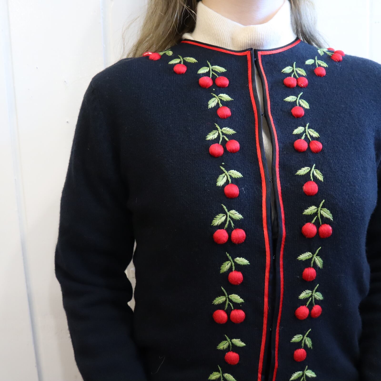 さくらんぼ刺繍が珍しいビンテージニットカーディガン。