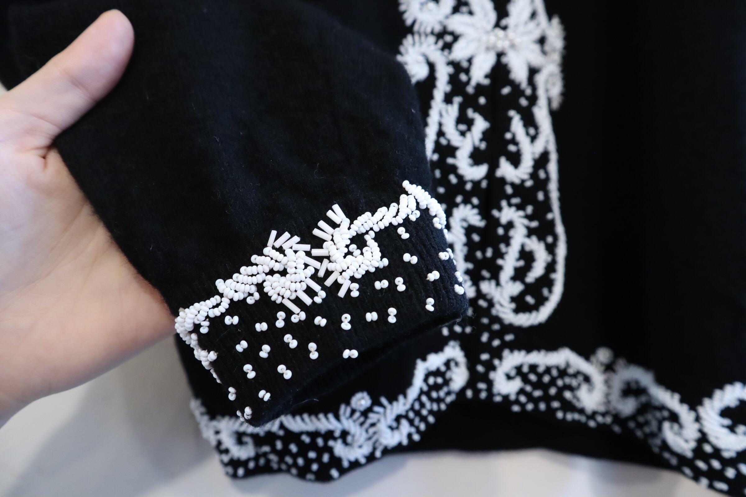 ブラックに映えるホワイト単色のビーズ刺繍が素敵です◎