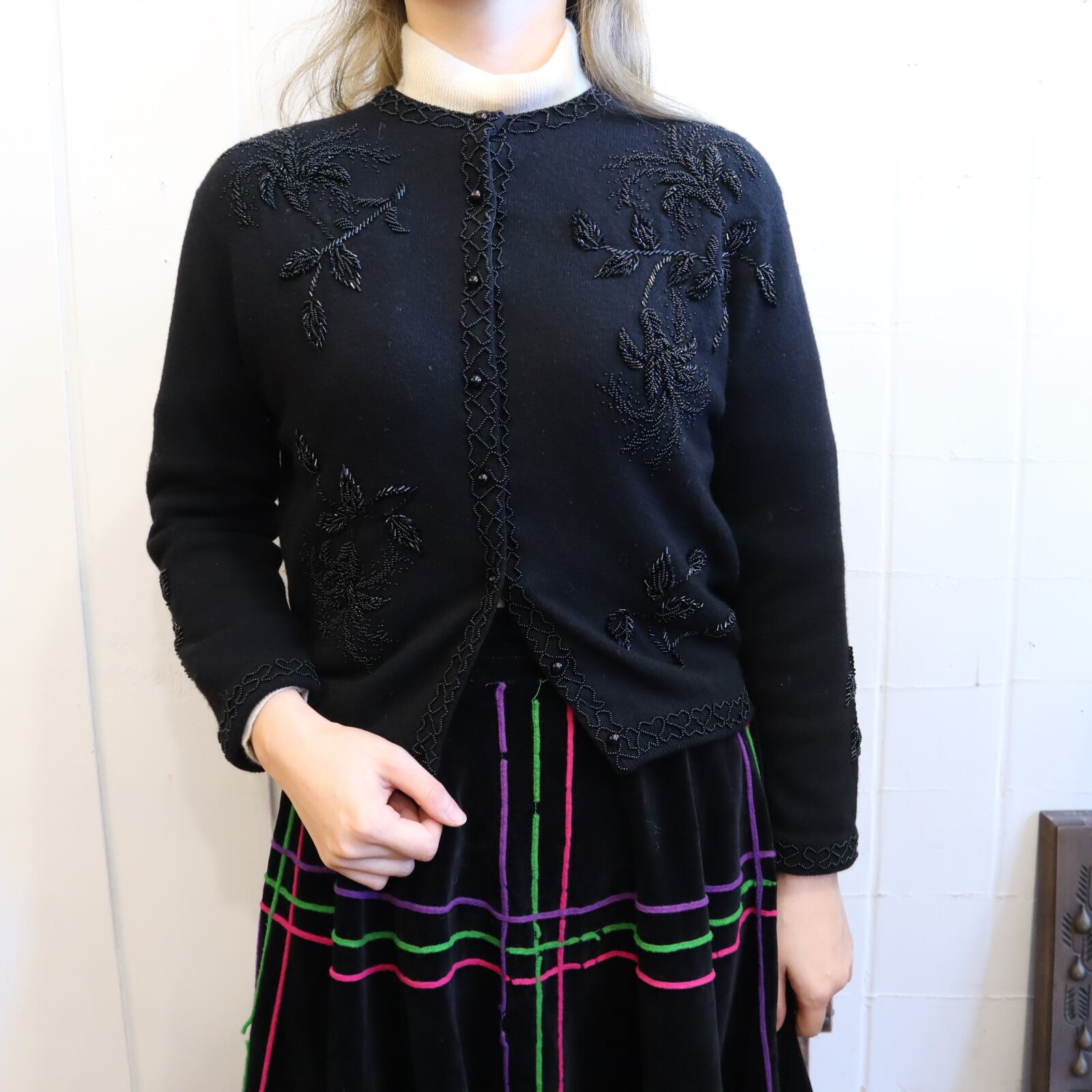 50‐60s black beads embroidery knit cardigan [l-2072]