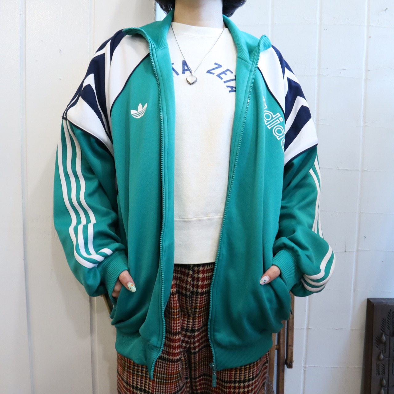 80-90s "adidas" green×white×navy track jacket [k-2076]