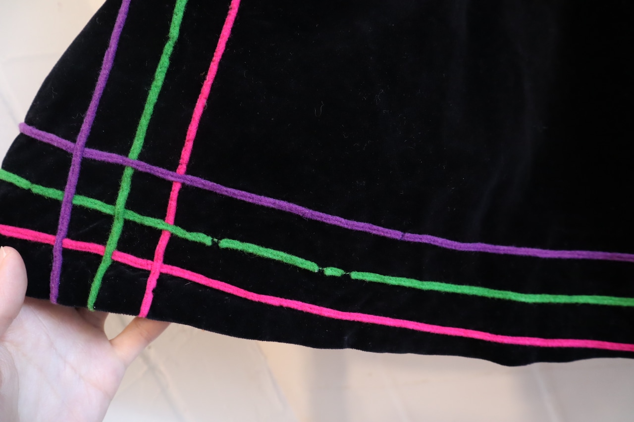 特有の擦れ、ウエスト部分に小穴や裾に小さな破れが見受けられます。