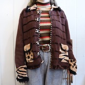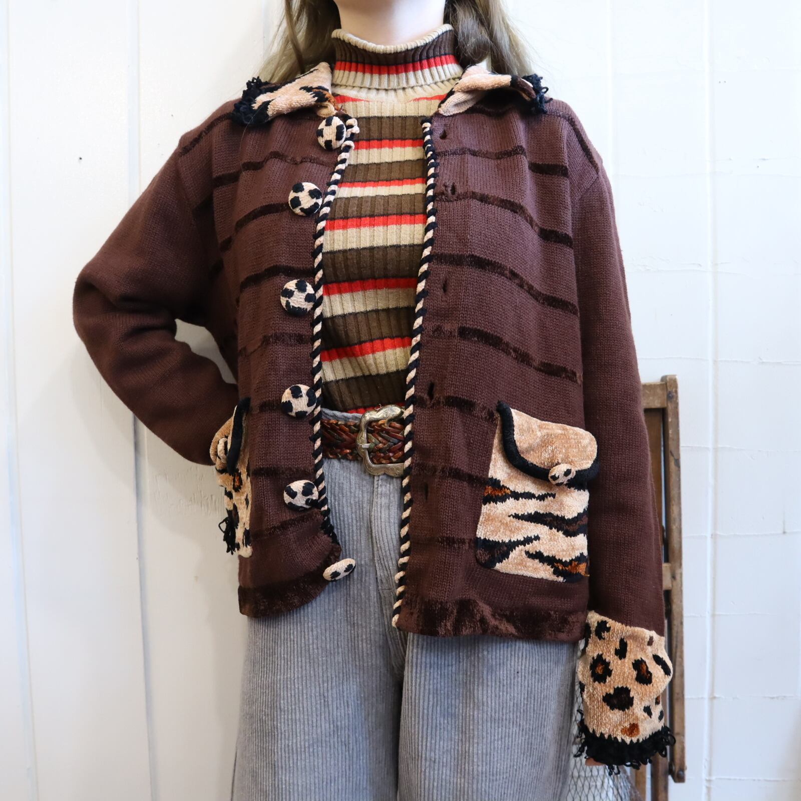 brown×beige×black animal pattern knit cardigan [l-2082]