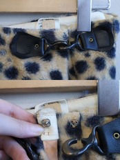 内側スナップボタンと表側は金具で引っ掛けるラップタイプとなります。