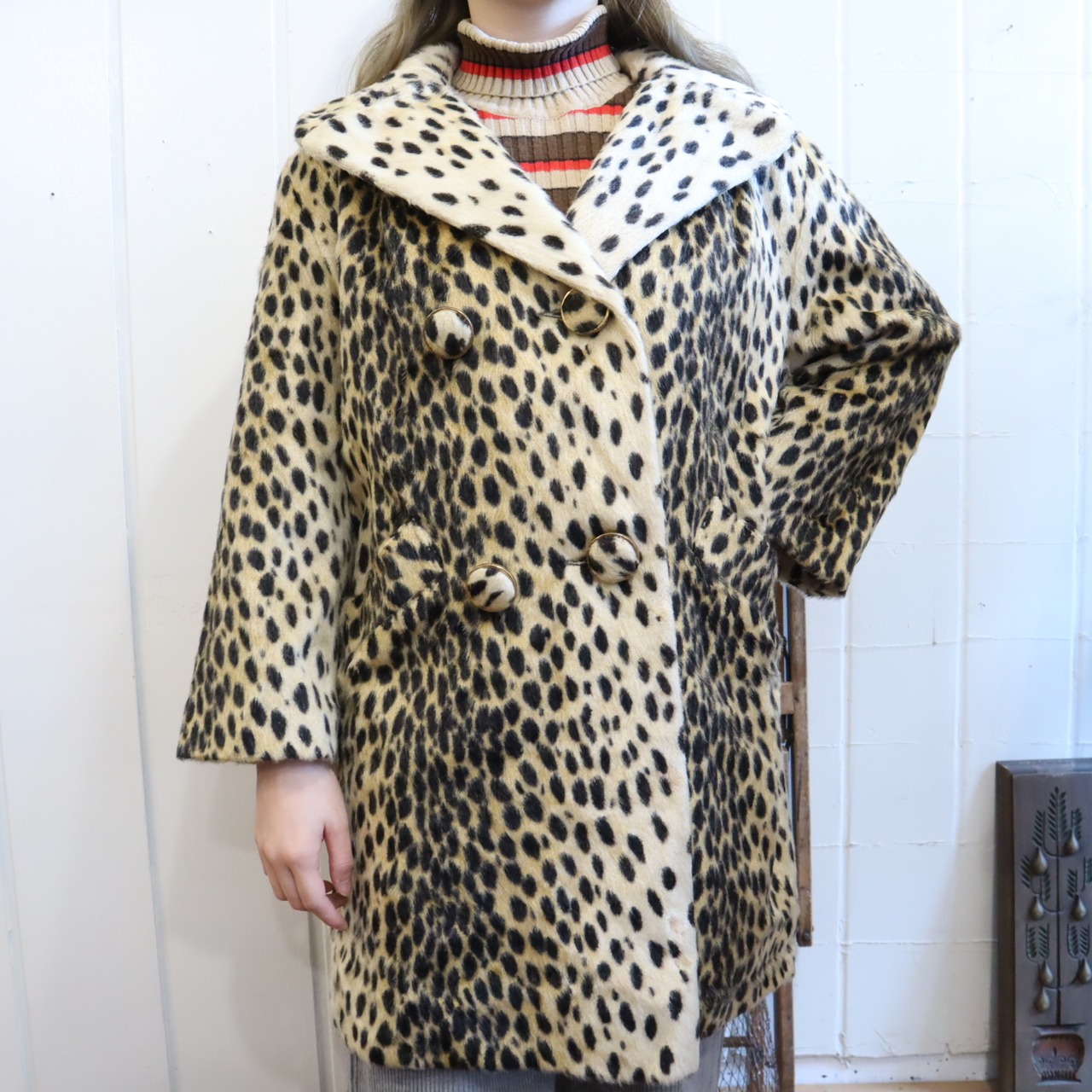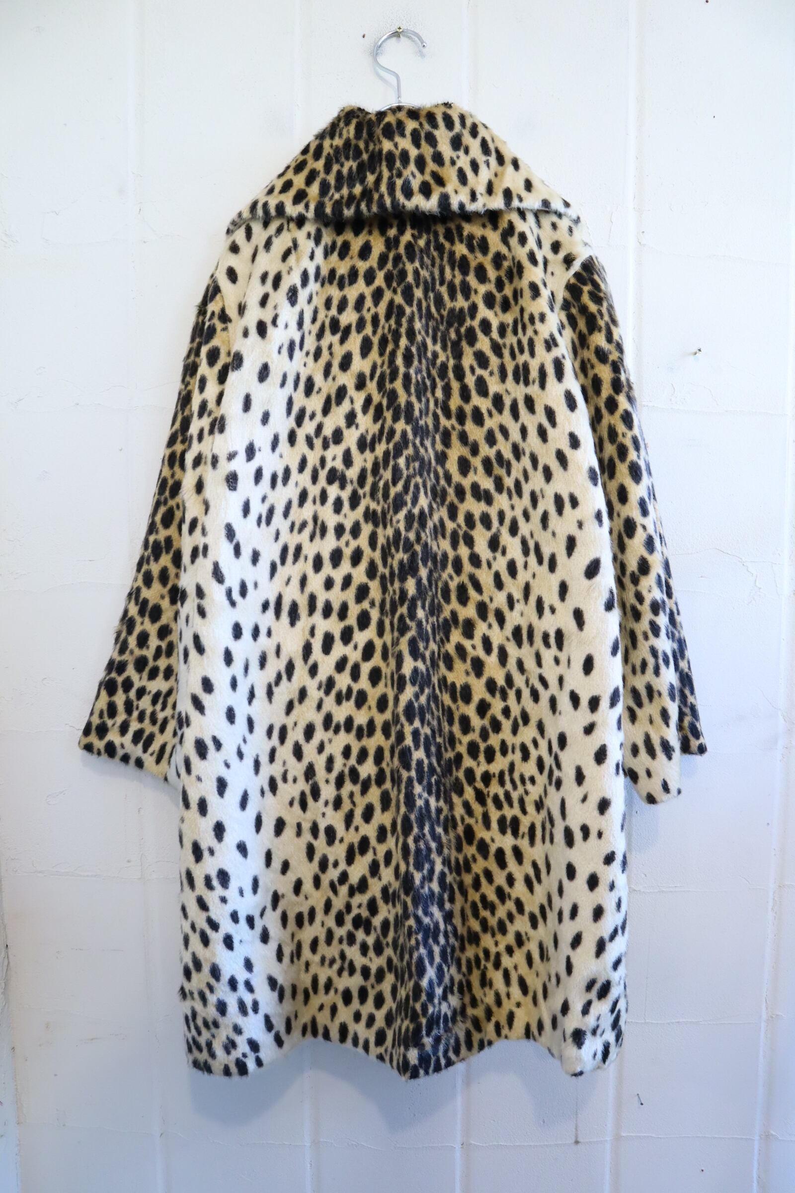 60s- whitebeige×black leopard fakefur coat [l-2093]