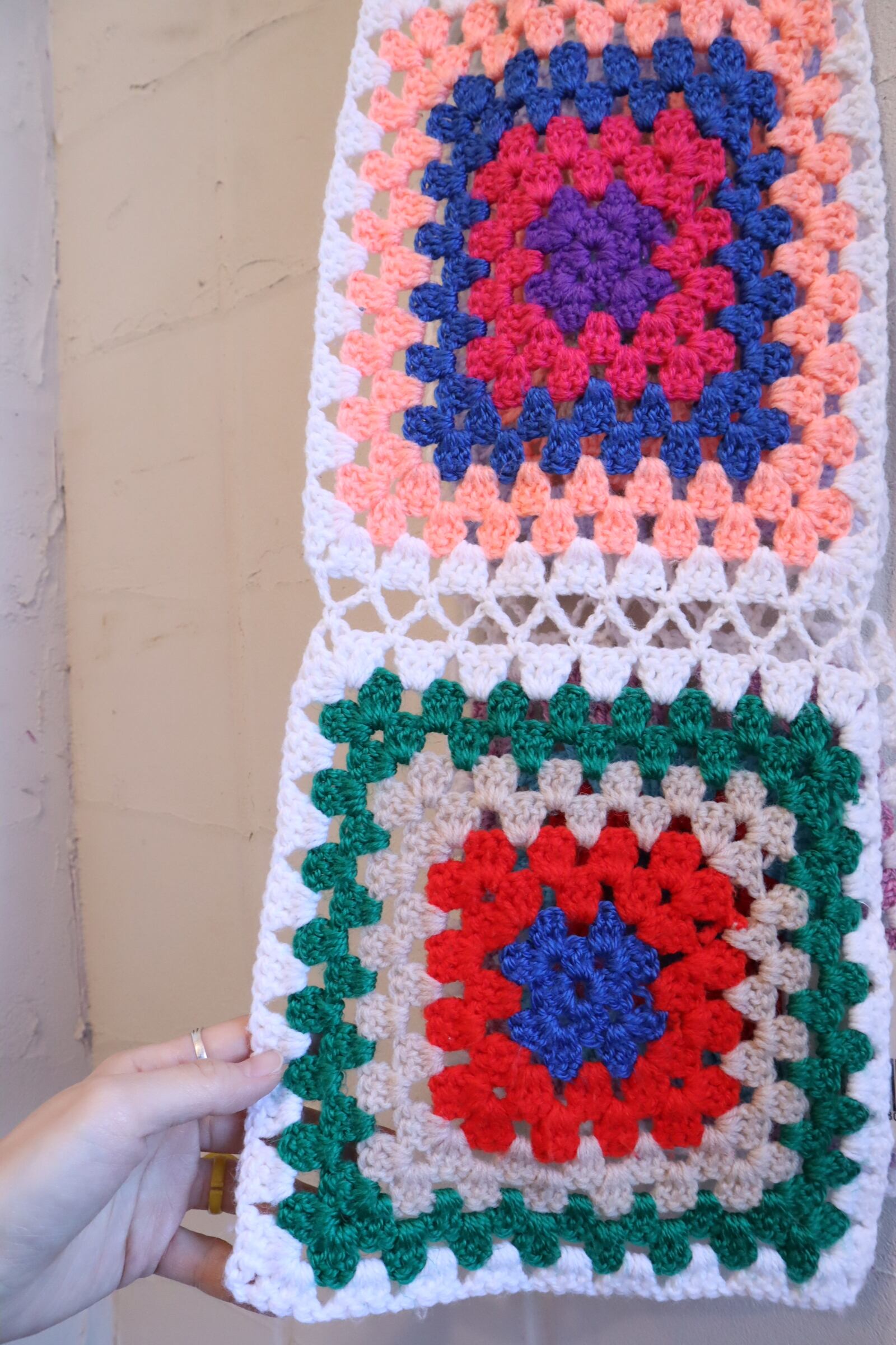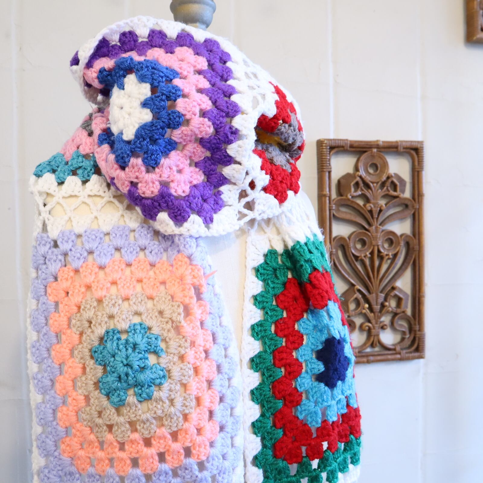 カラフルで可愛いグラニースクエアマフラー。