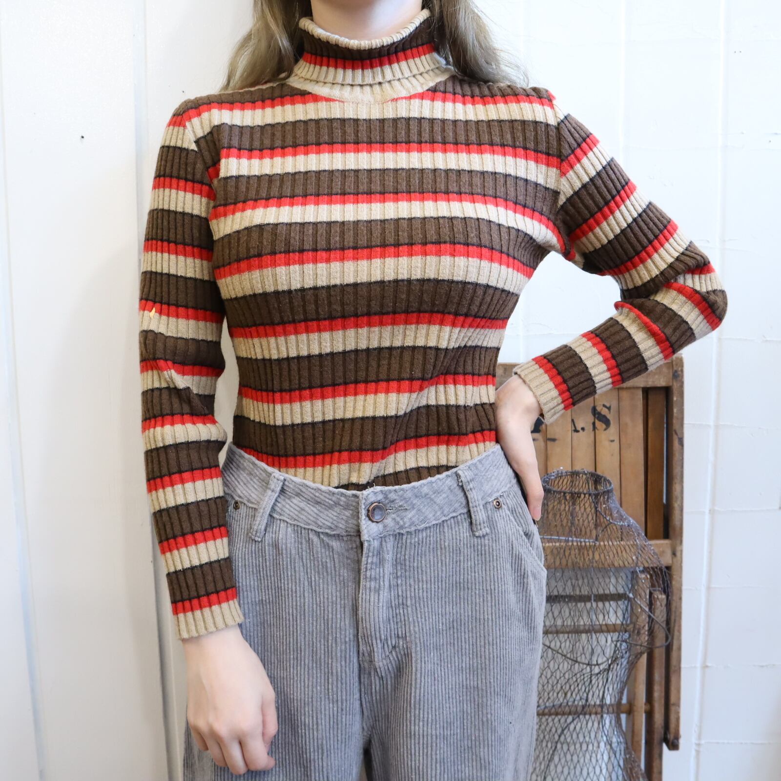 ボーダーのカラーリングが可愛いリブタートルネック。