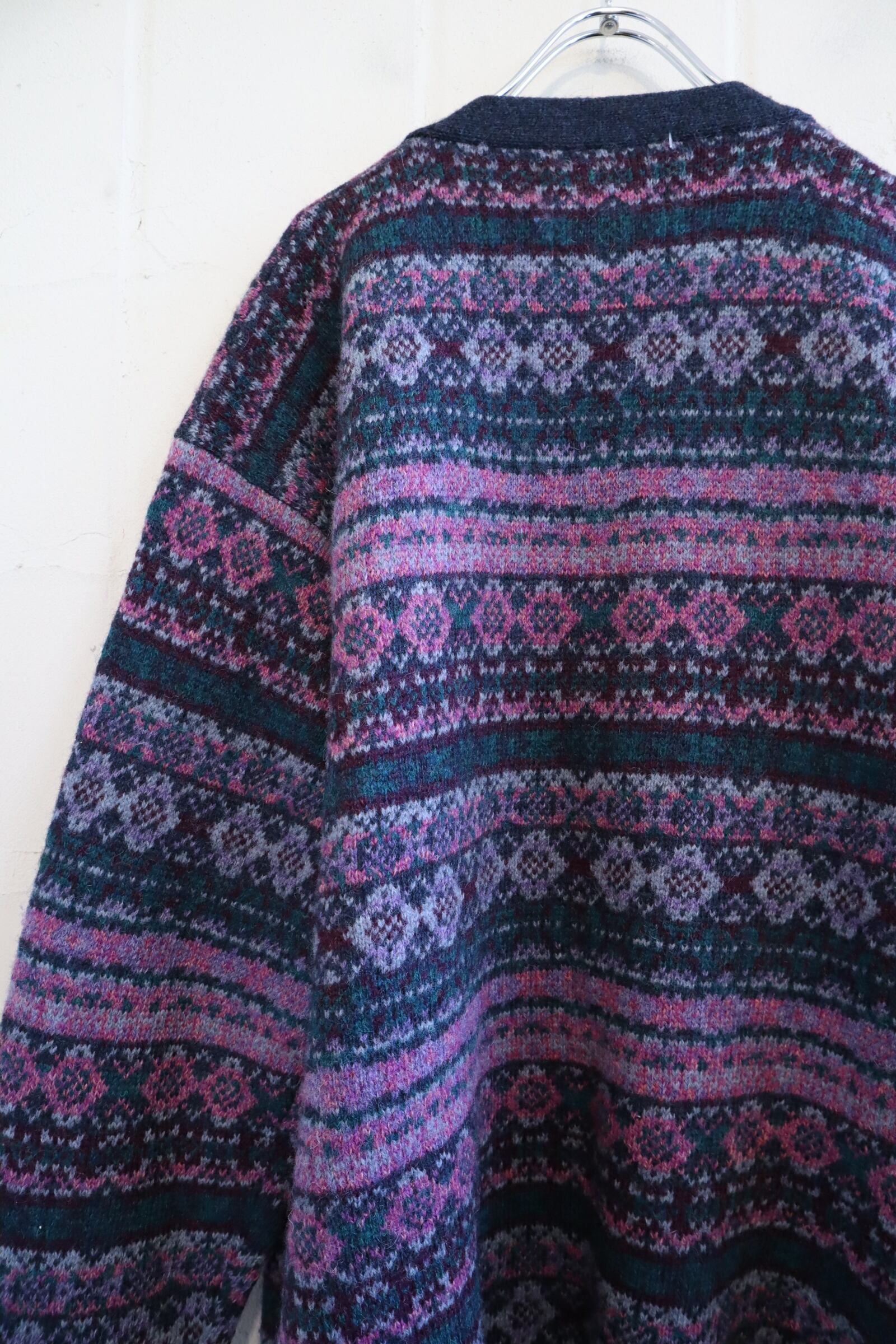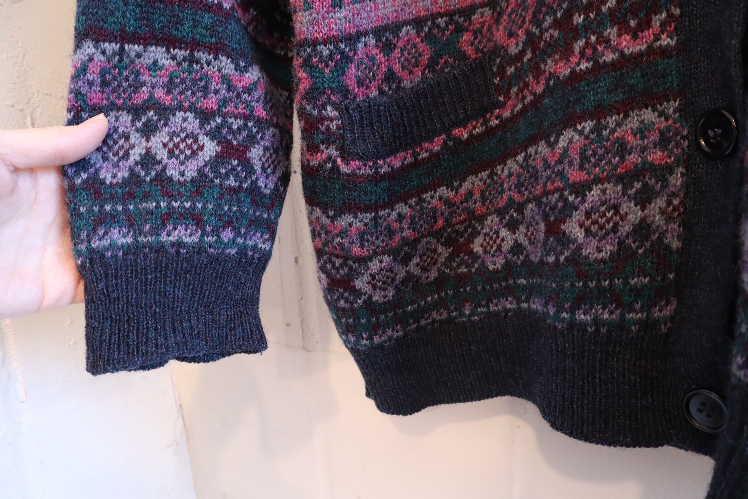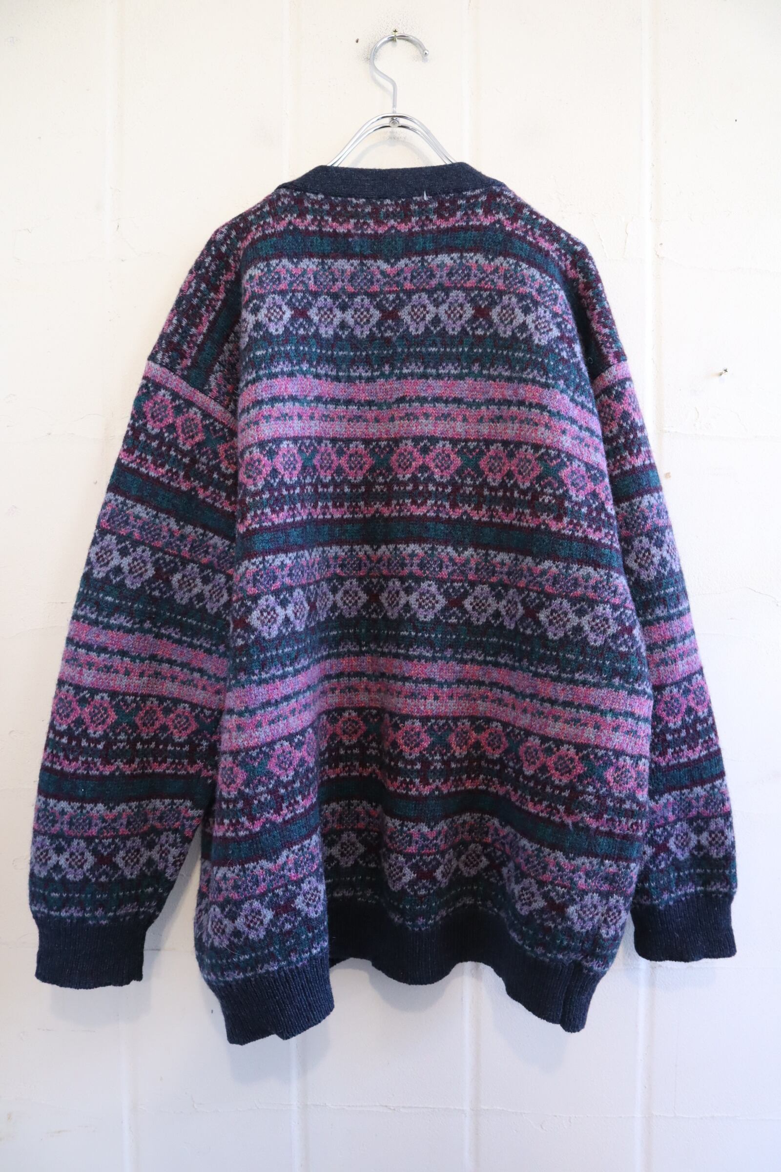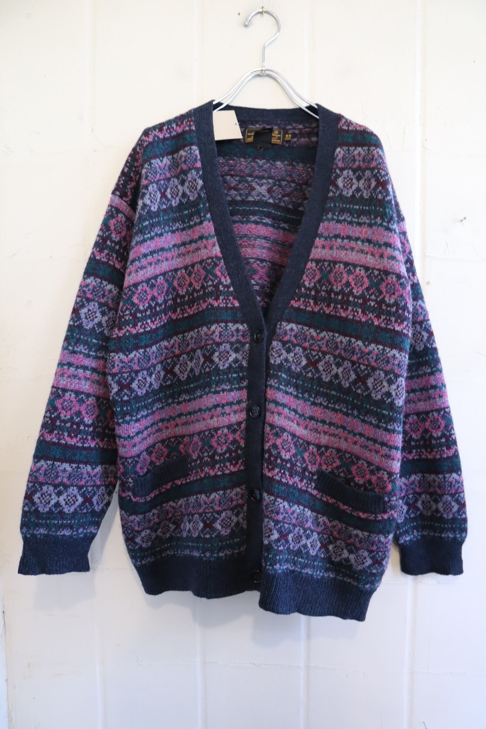 "Eddie Bauer" pink purple×dull green knit cardigan [l-2107]
