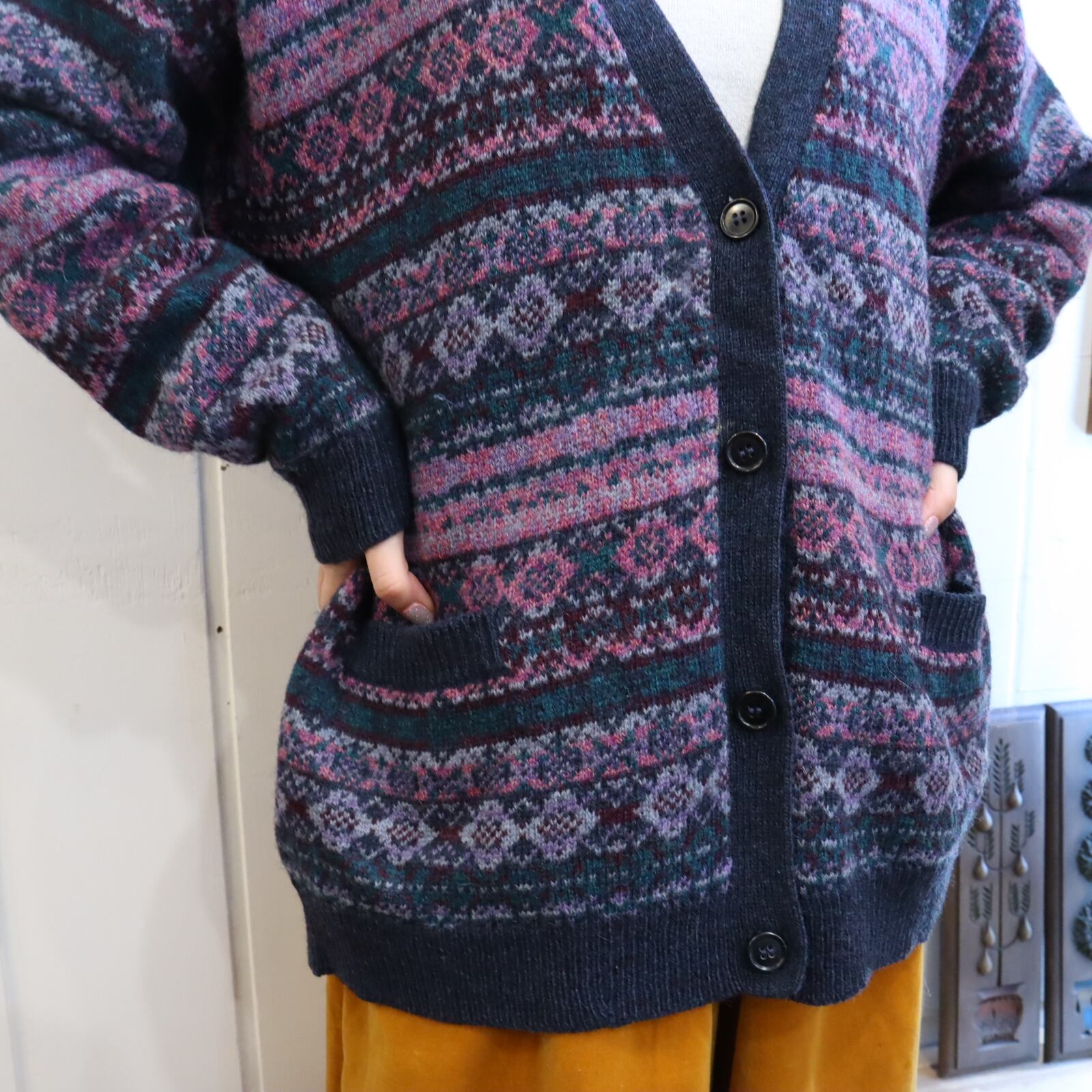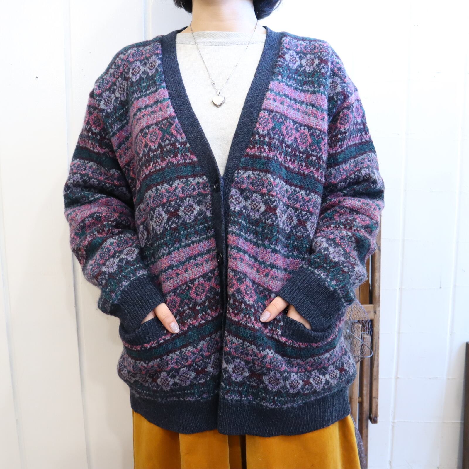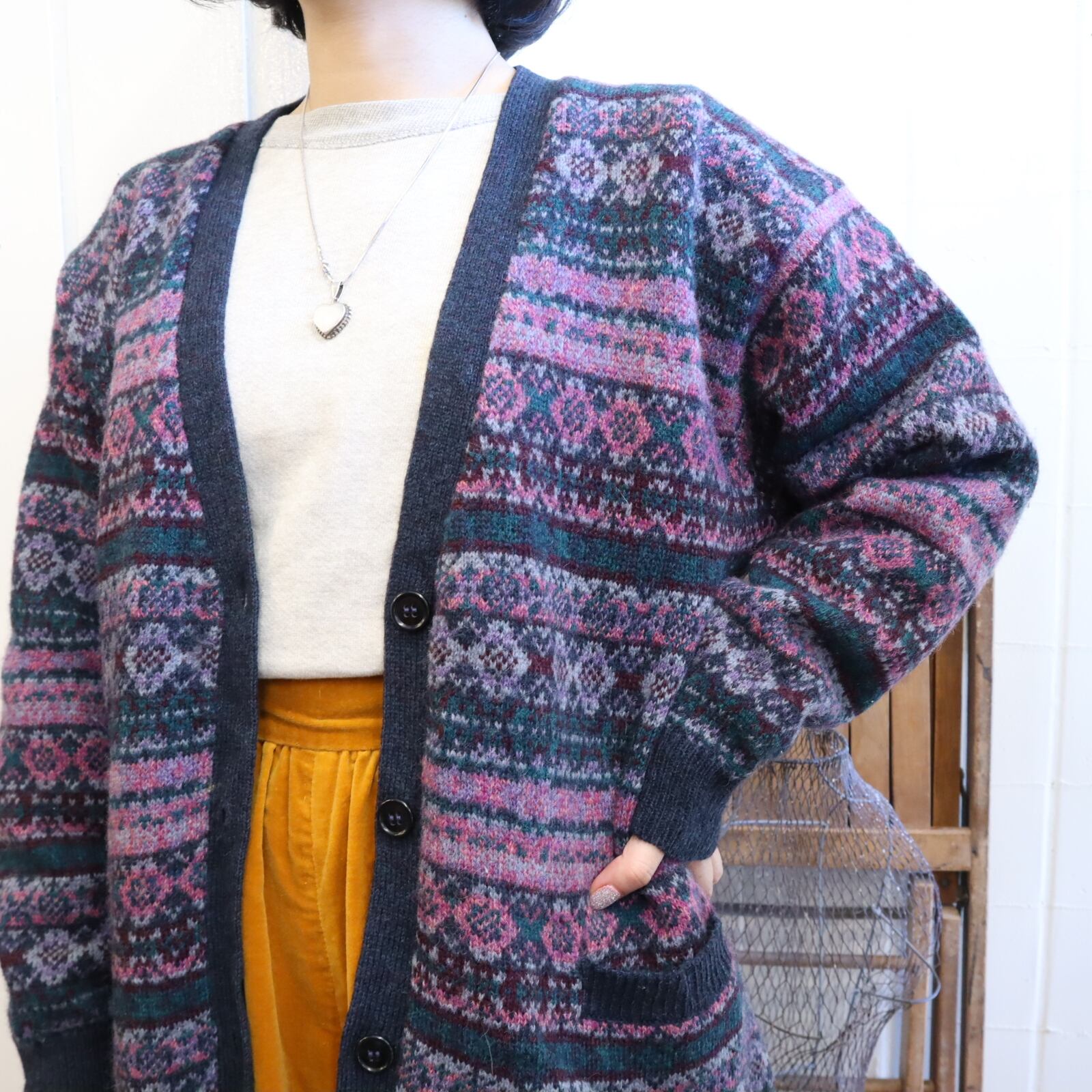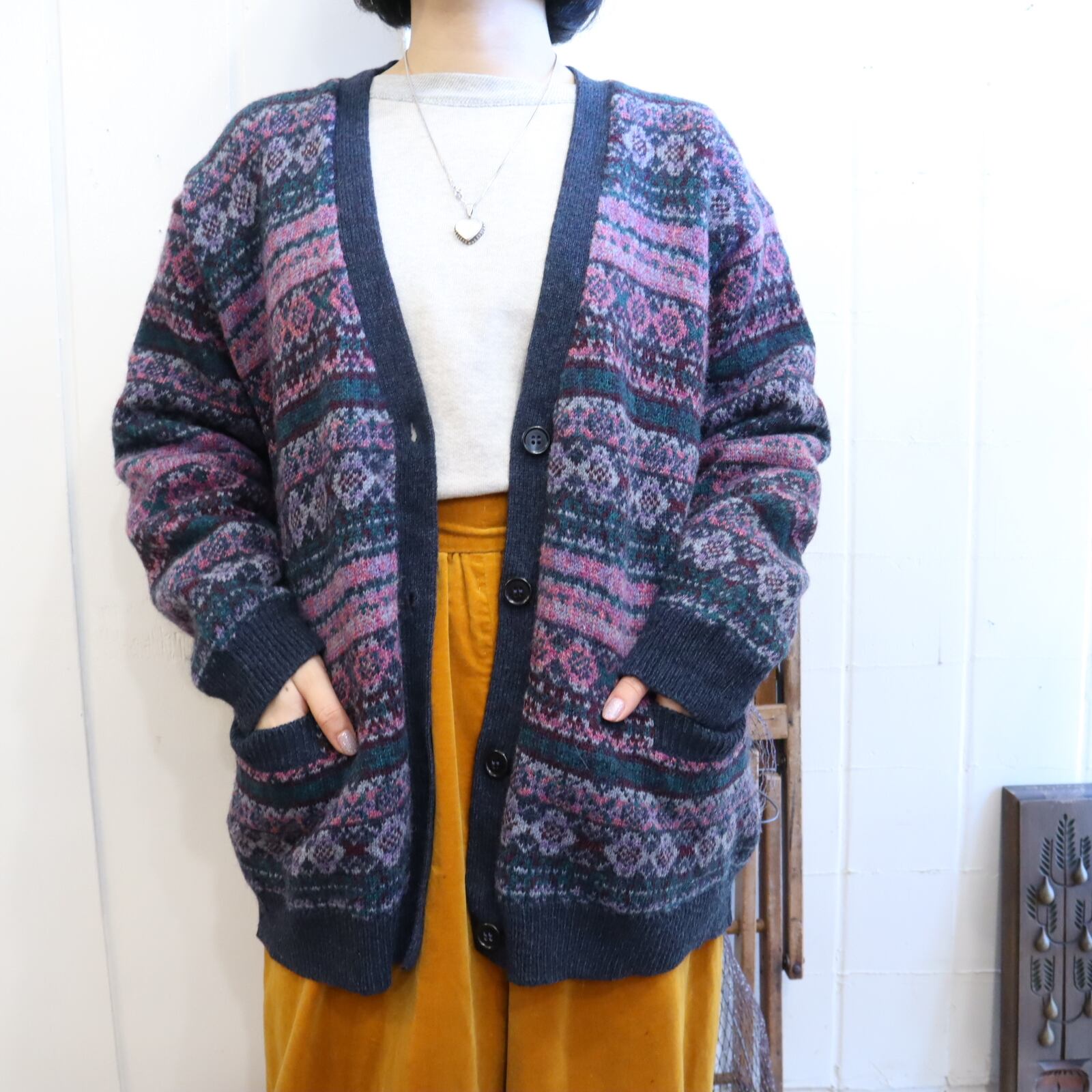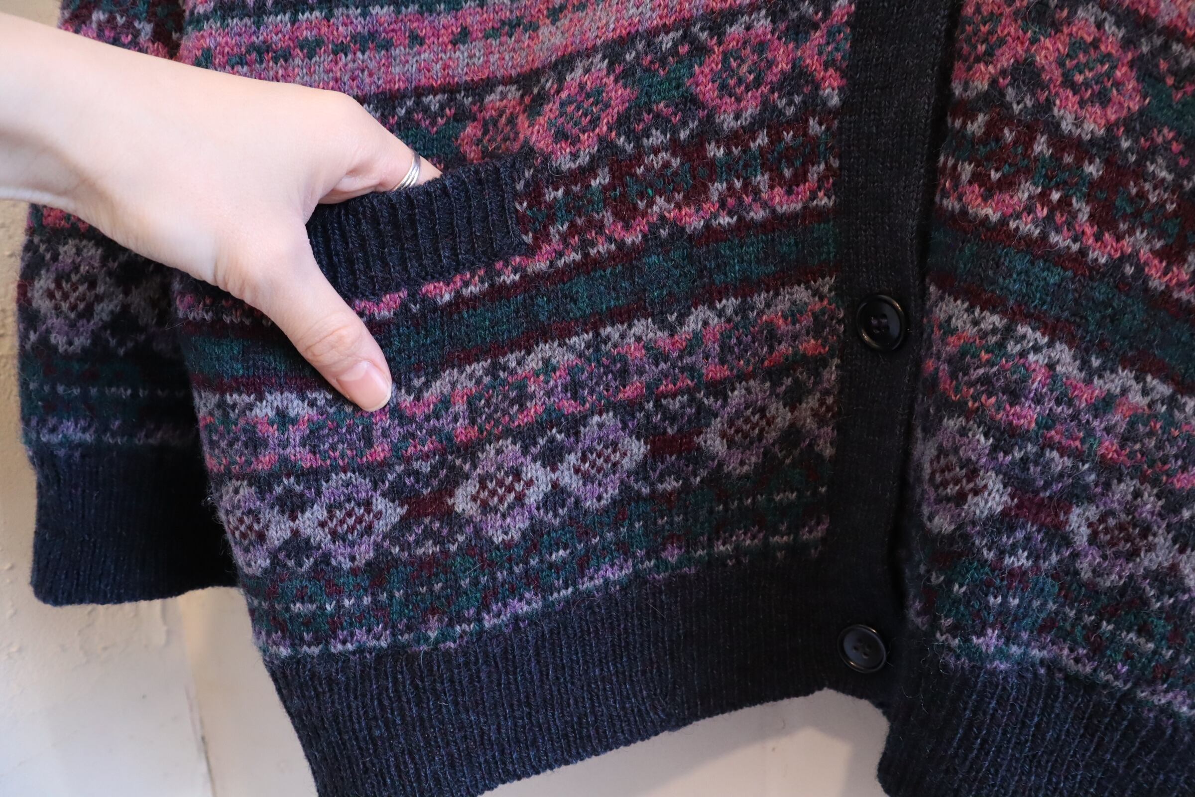 モチーフ柄が素敵なニットカーディガン。