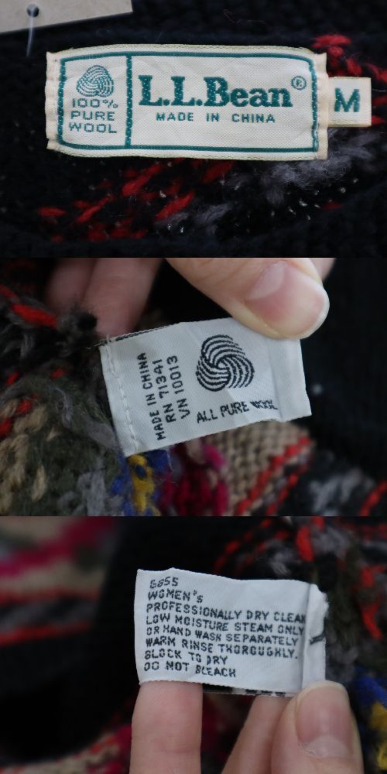 "L.L.Bean" black×pink diamond pocket knit cardigan [l-2108]