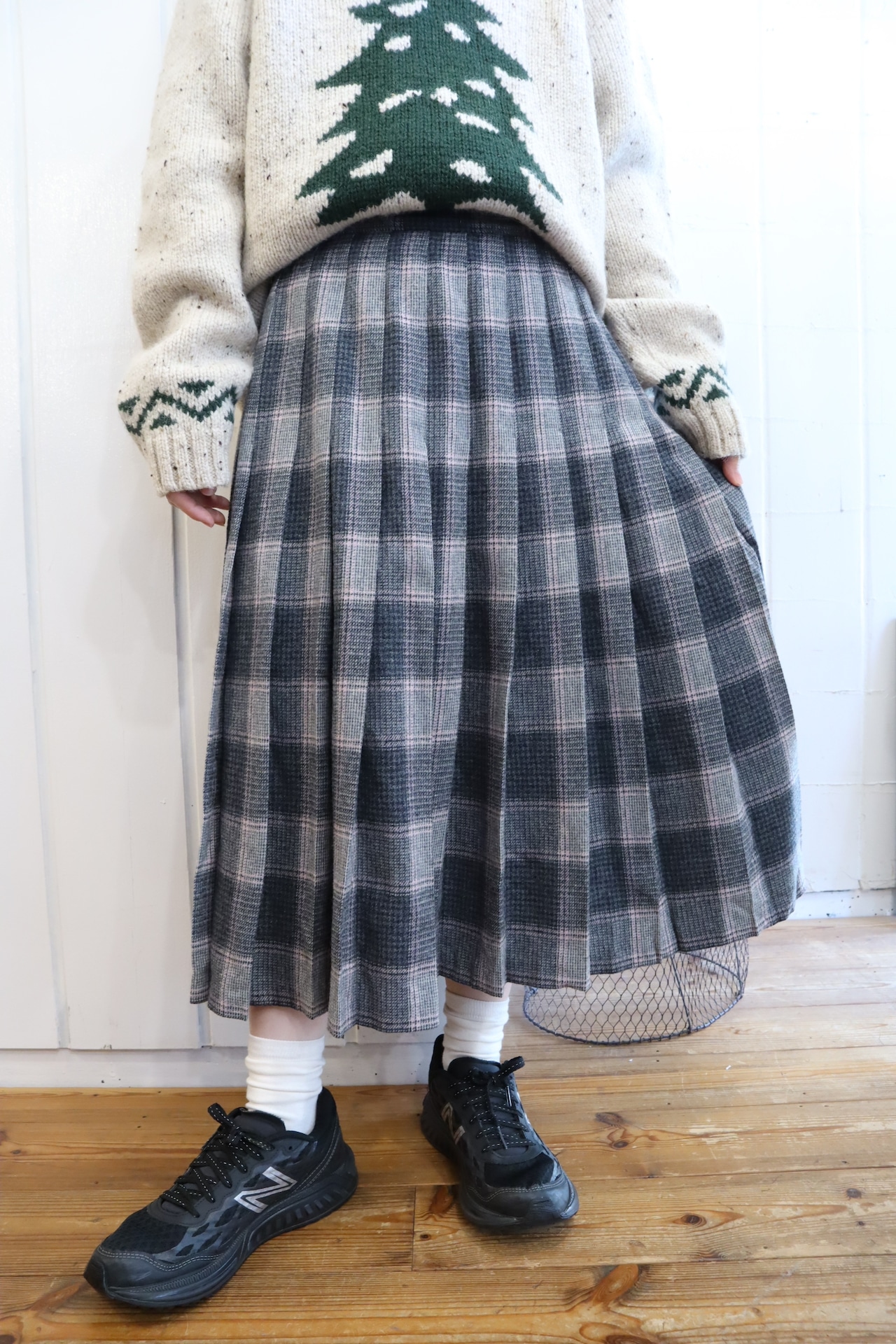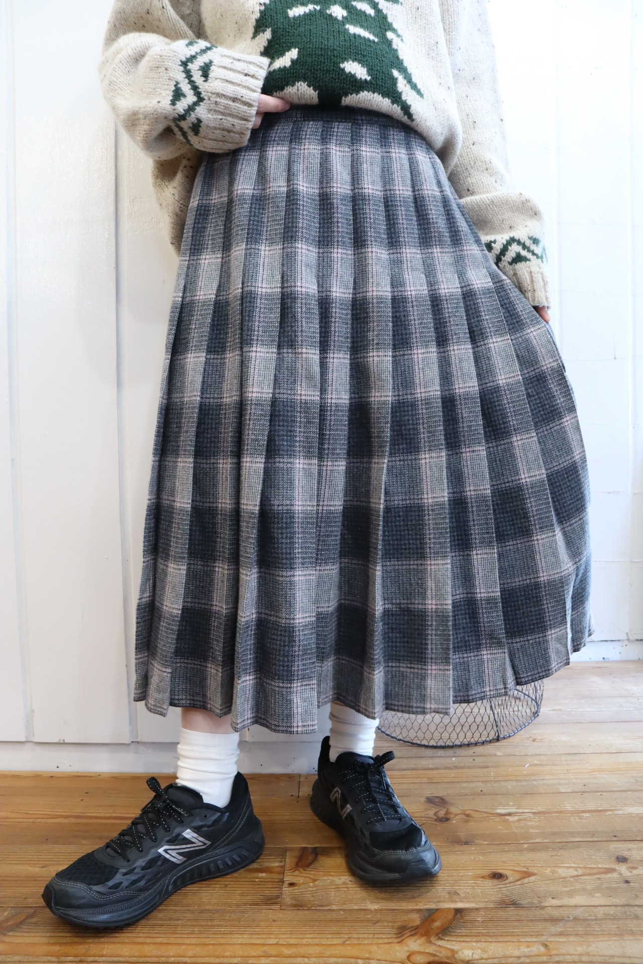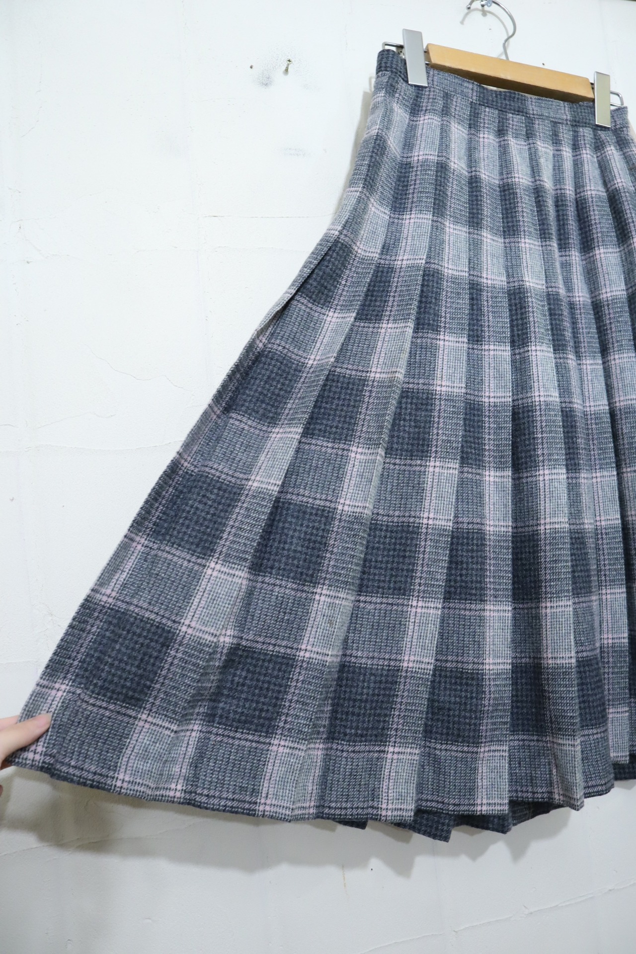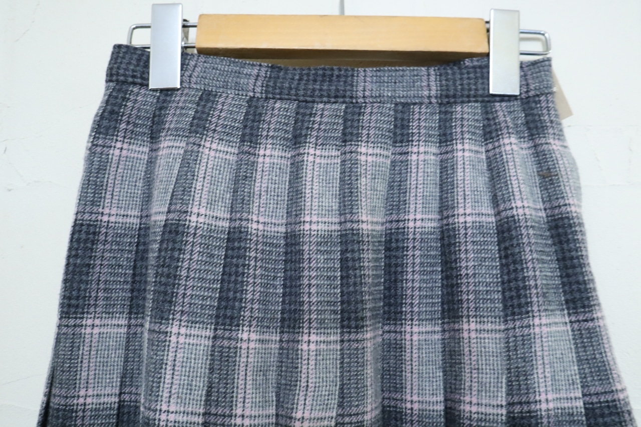 ”PENDLETON” gray×lightpink plaid pleats wool skirt [l-2112]