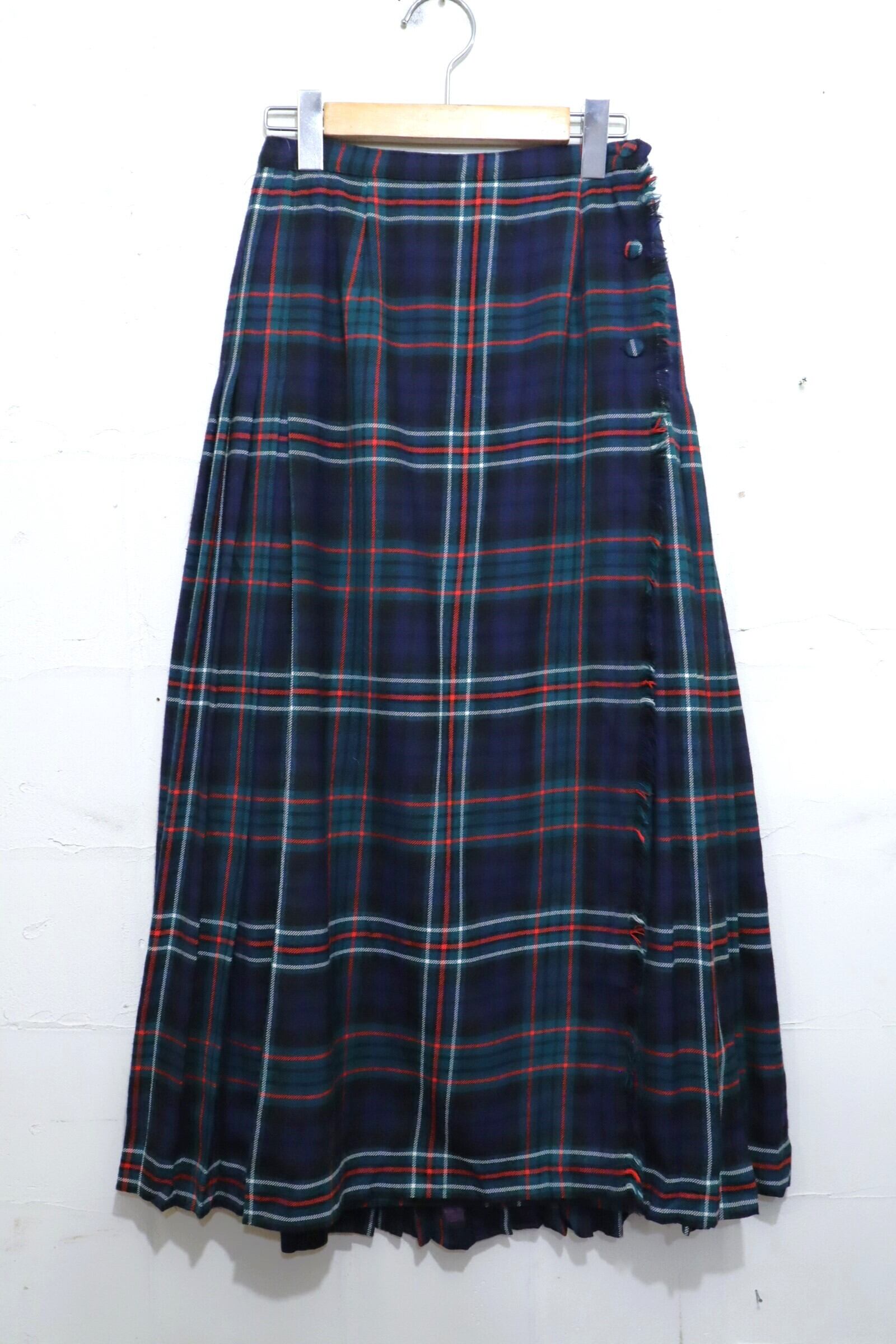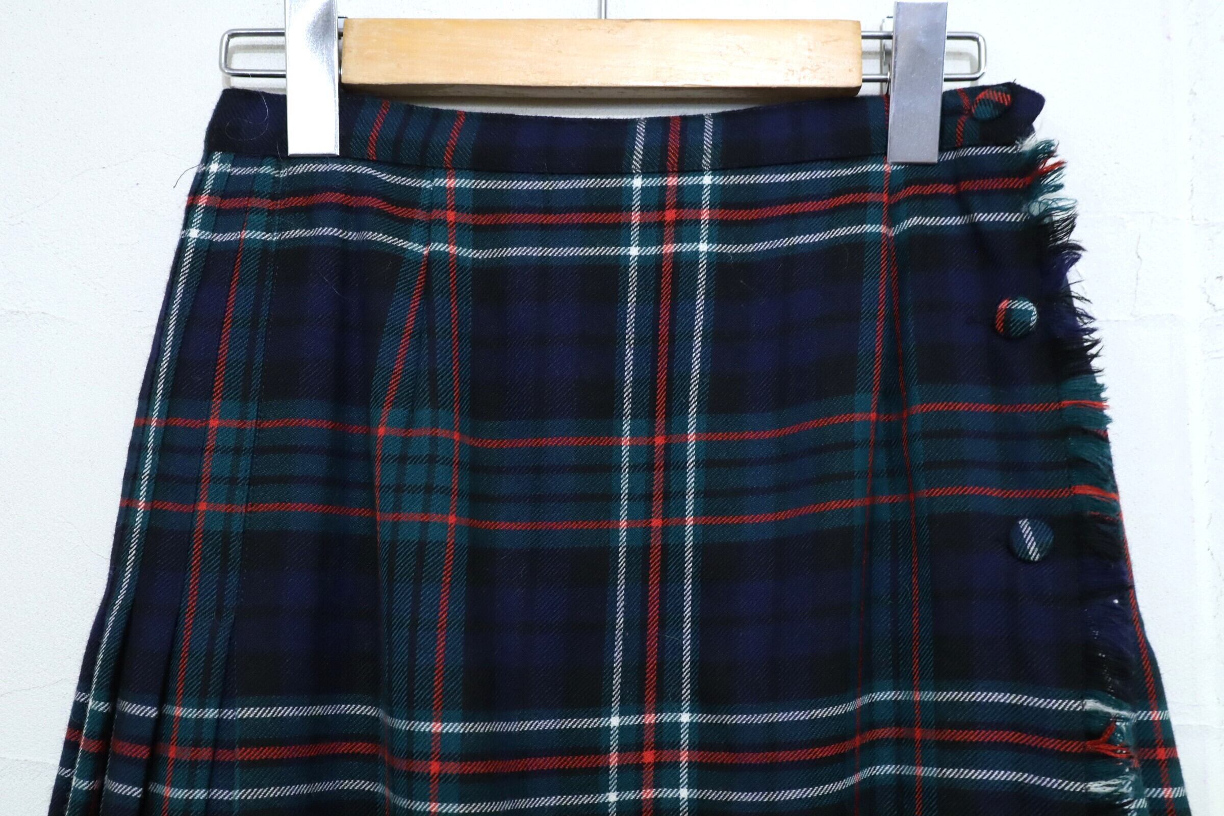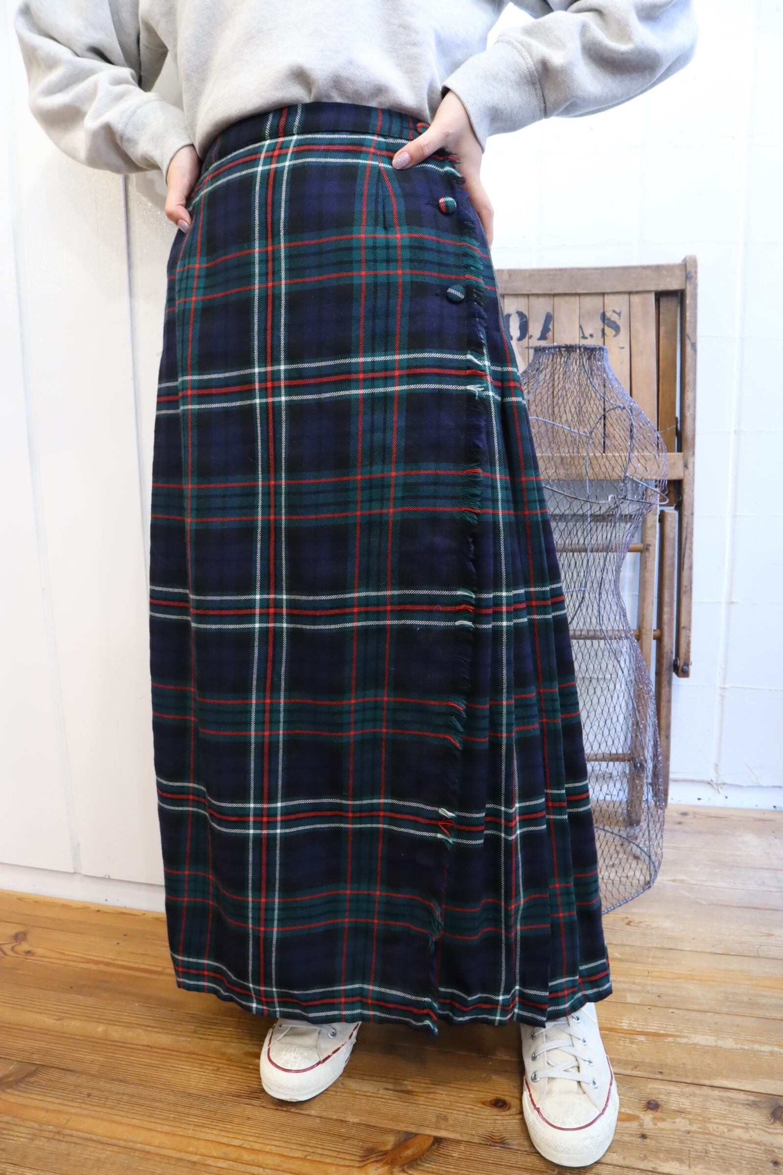 70s-80s green×red×white plaid wrap wool skirt [k-2113]