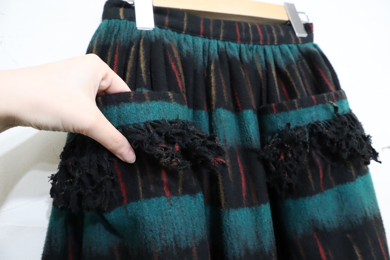 80s ”BIS” green×black front pocket & fringe design skirt [l-2114]