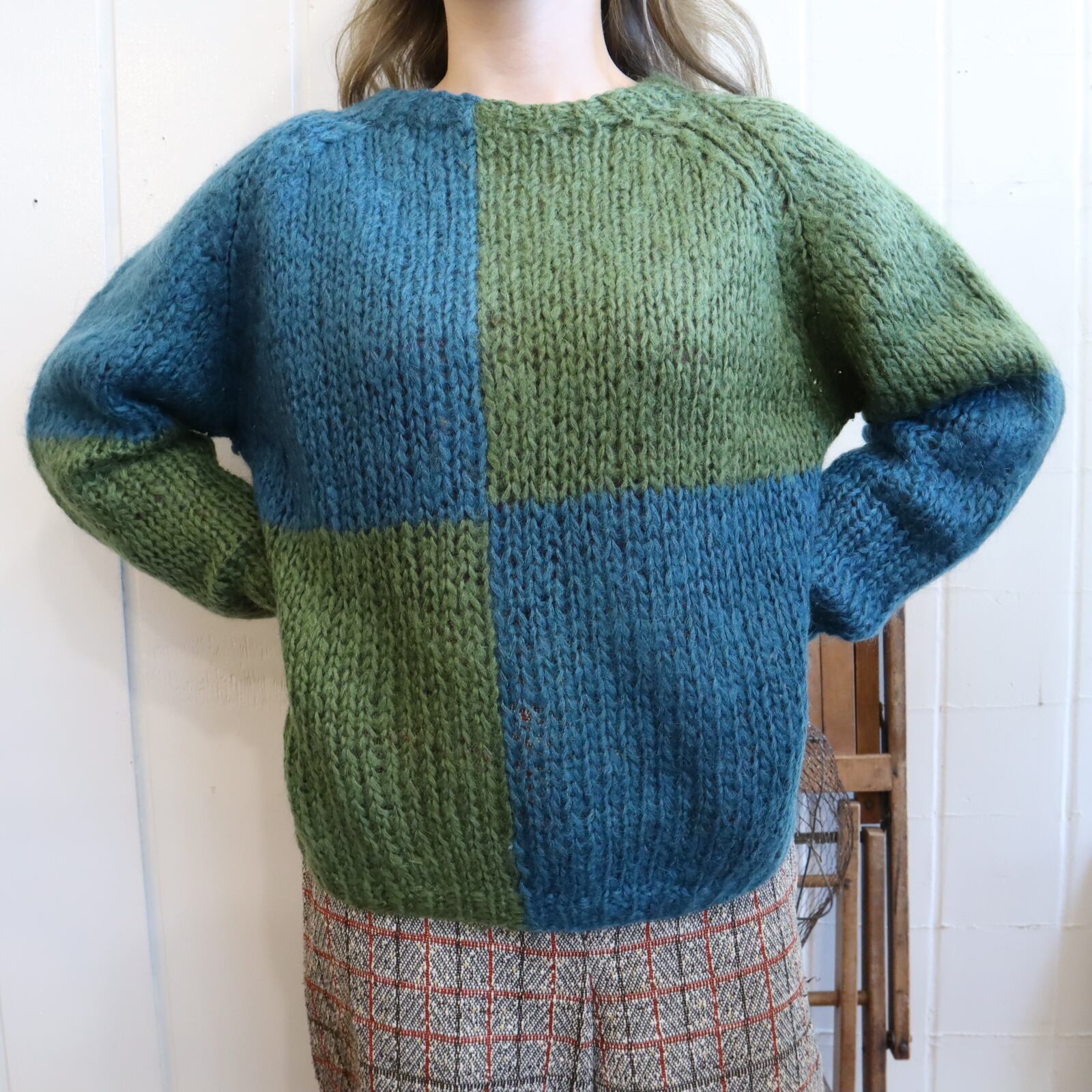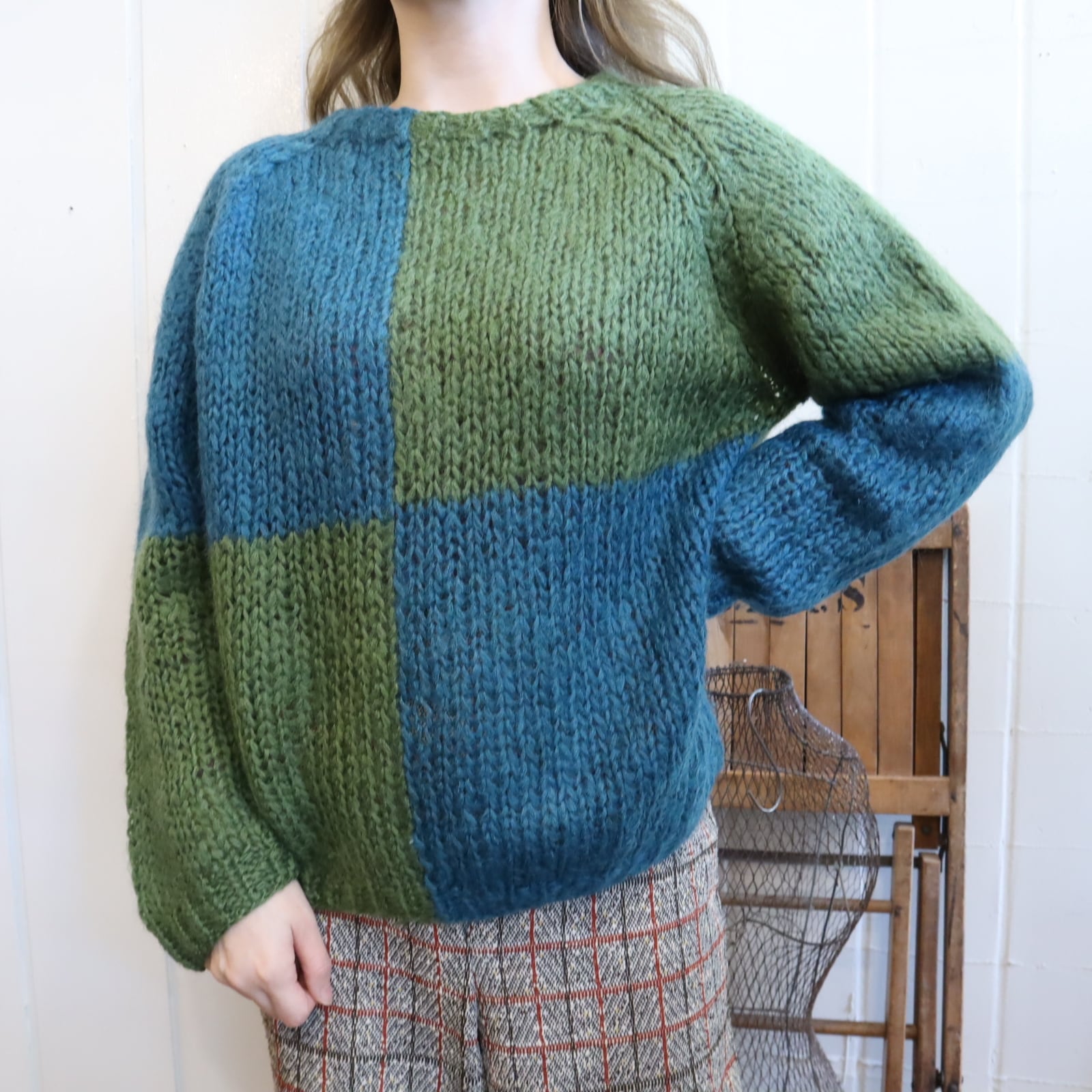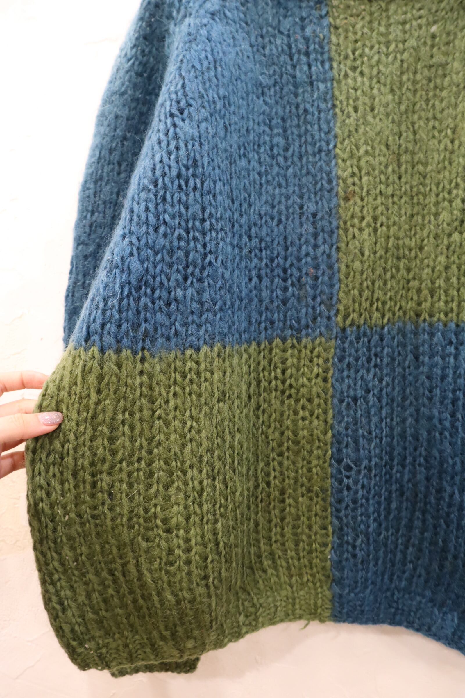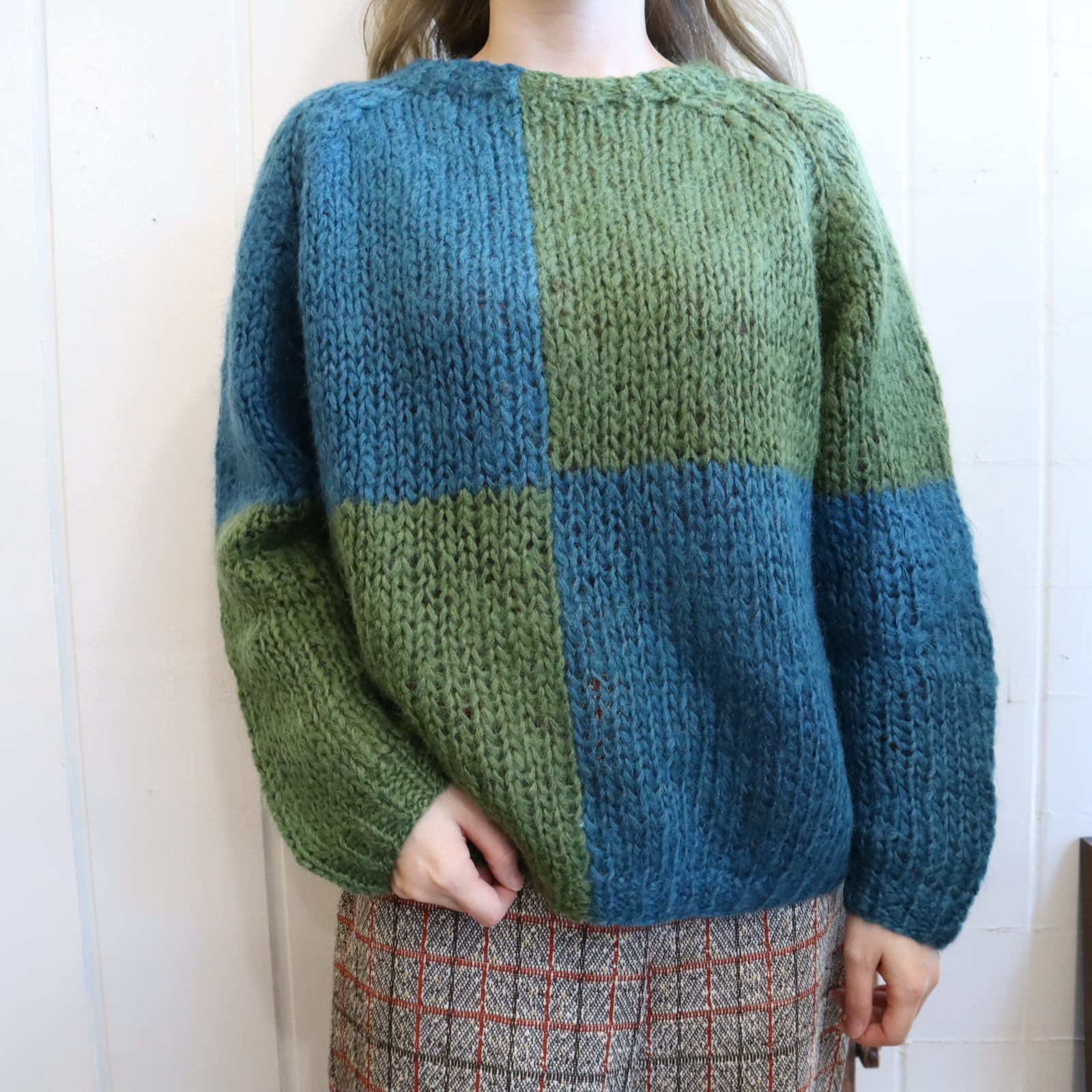 made in ITALY blue×green mohair knit pullover [l-2123]
