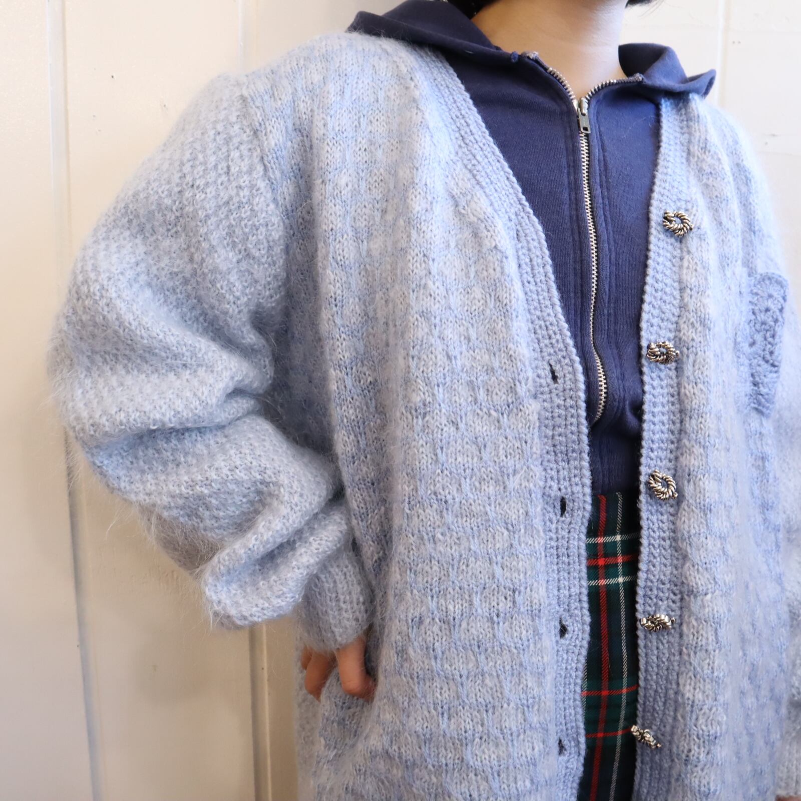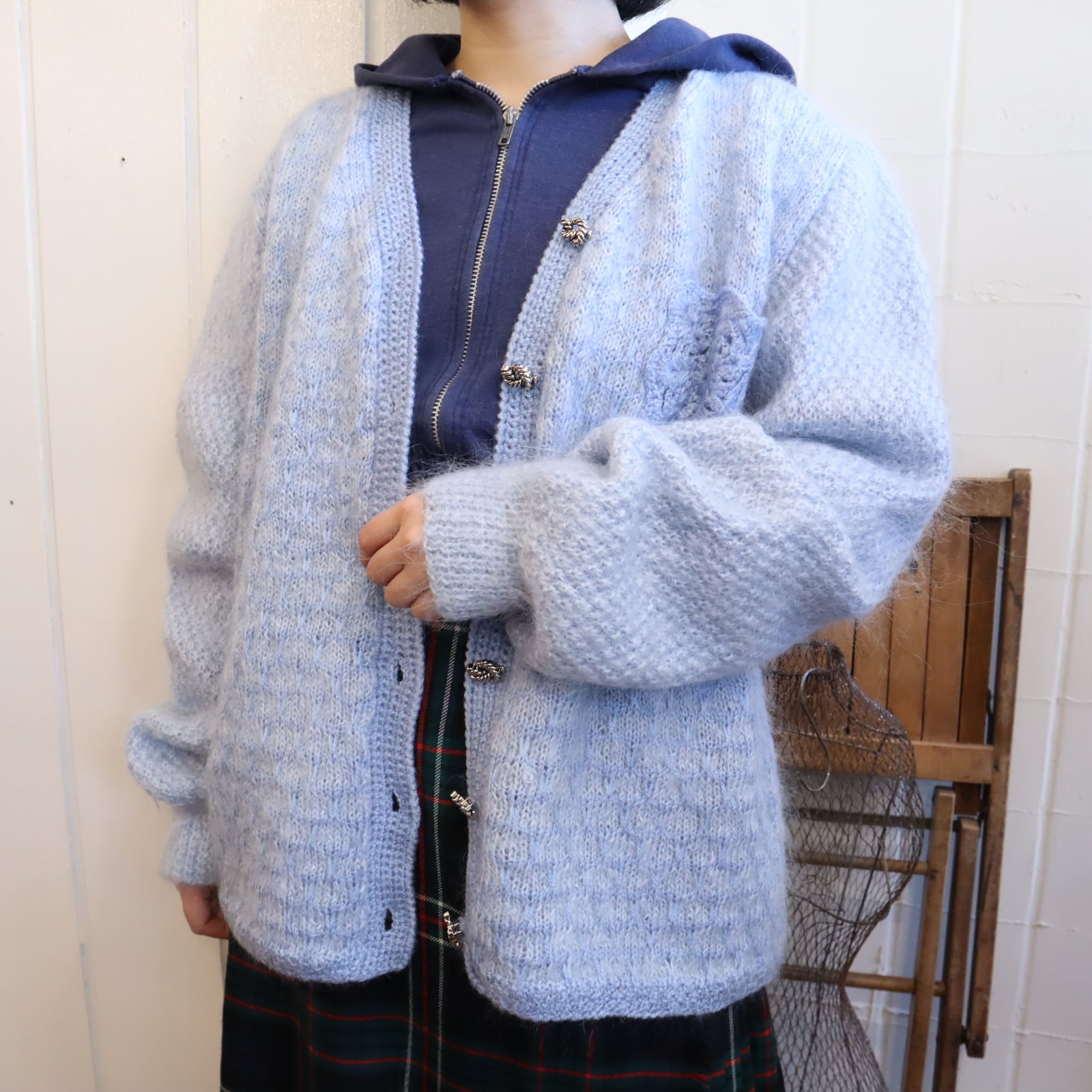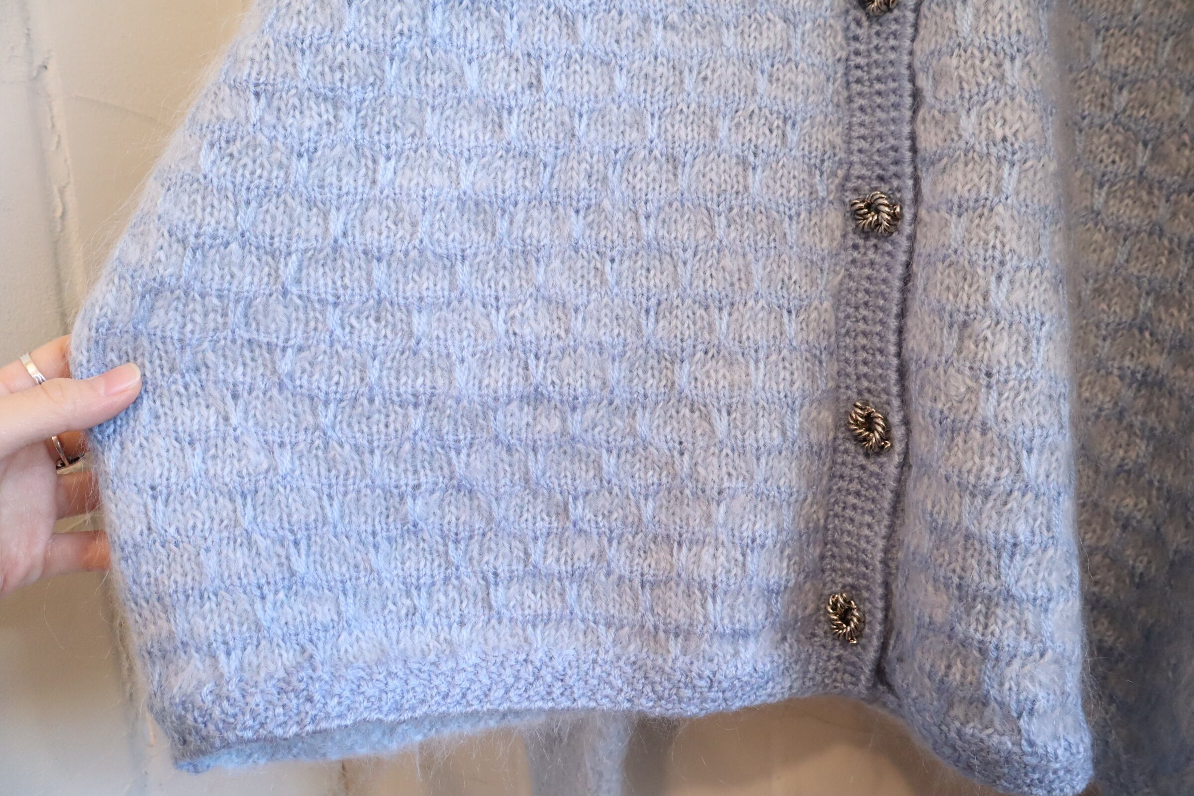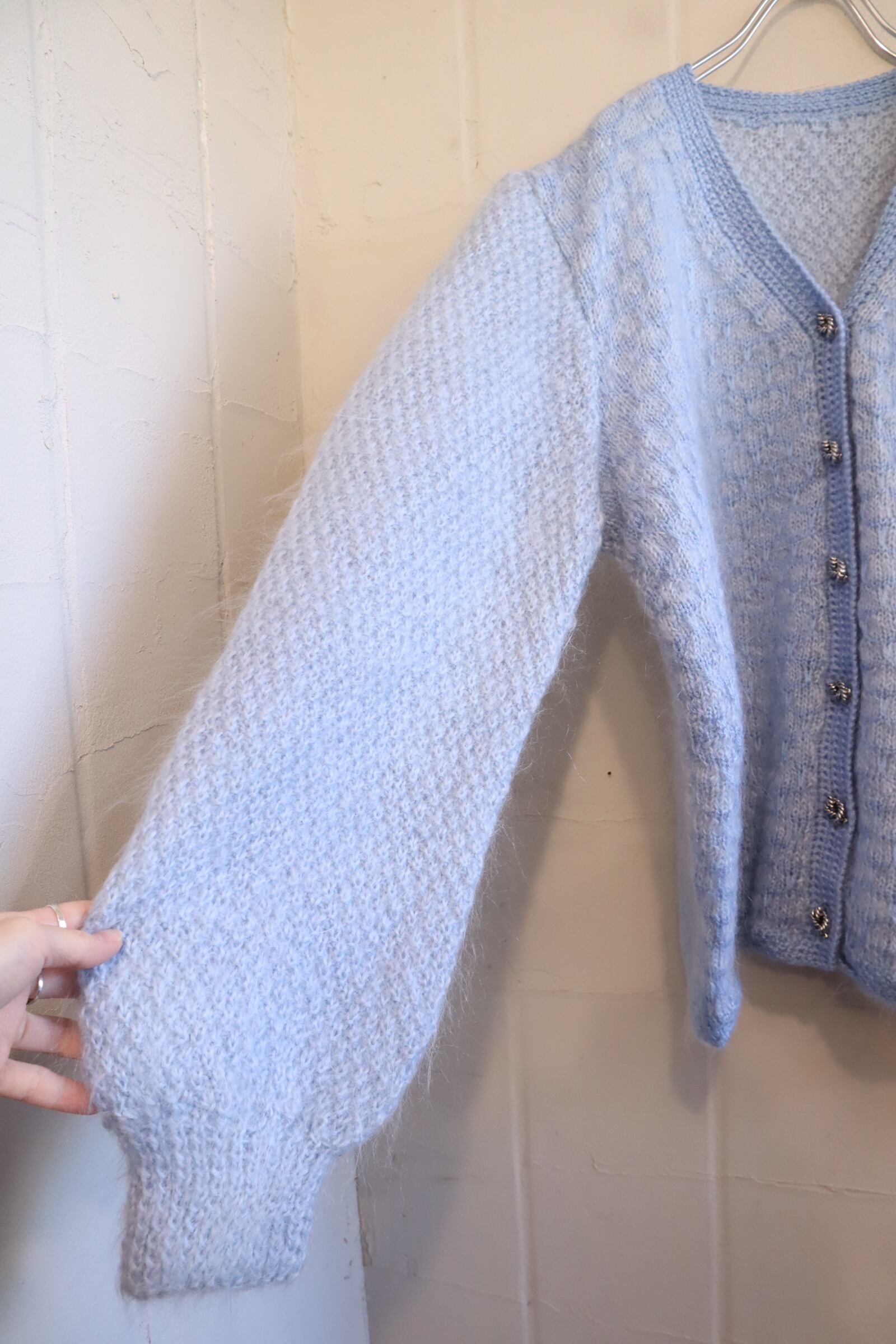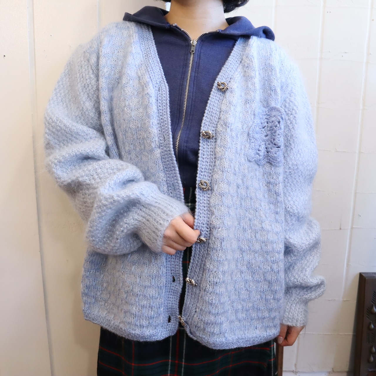 lightblue crochet mini pocket mohair knit cardigan [l-2128]
