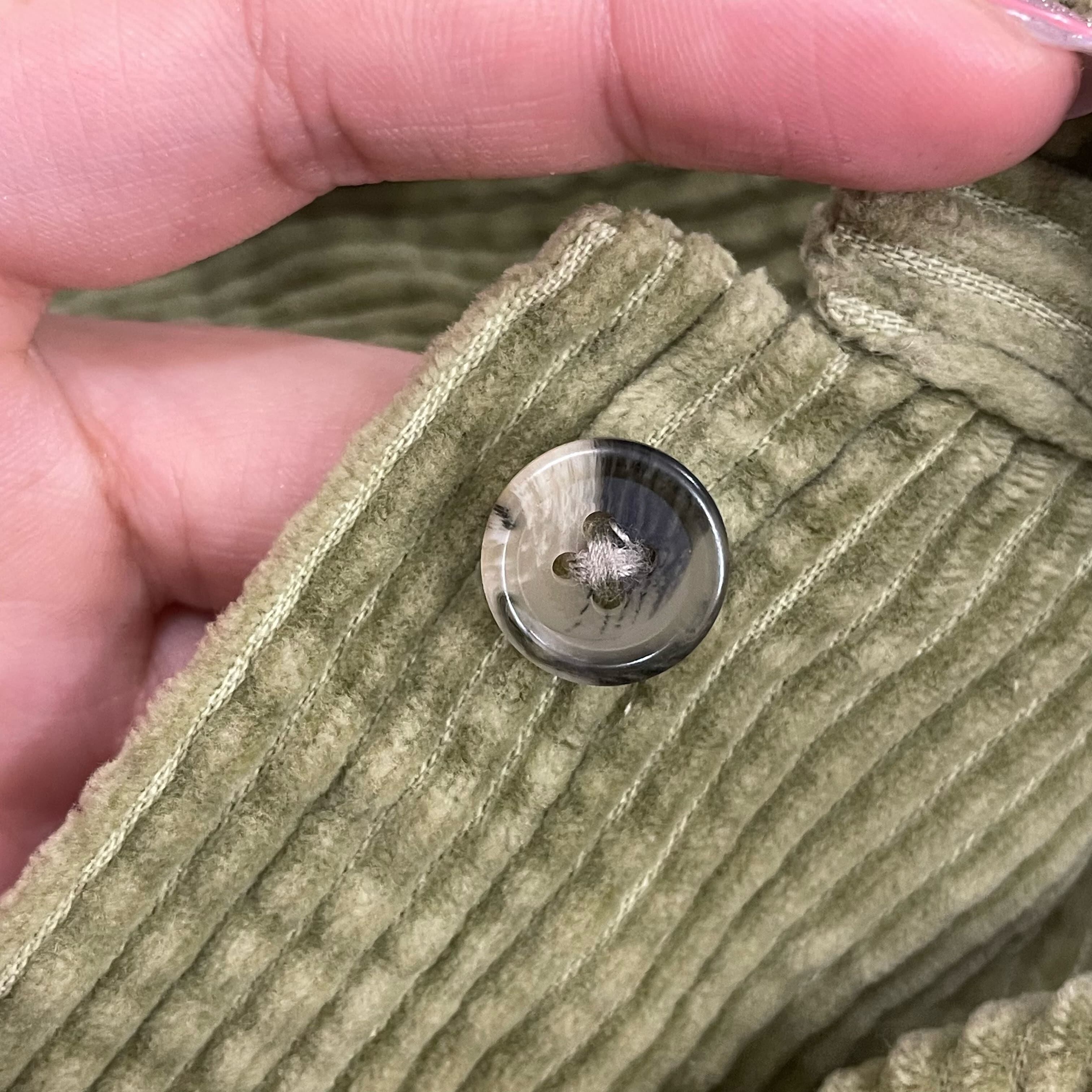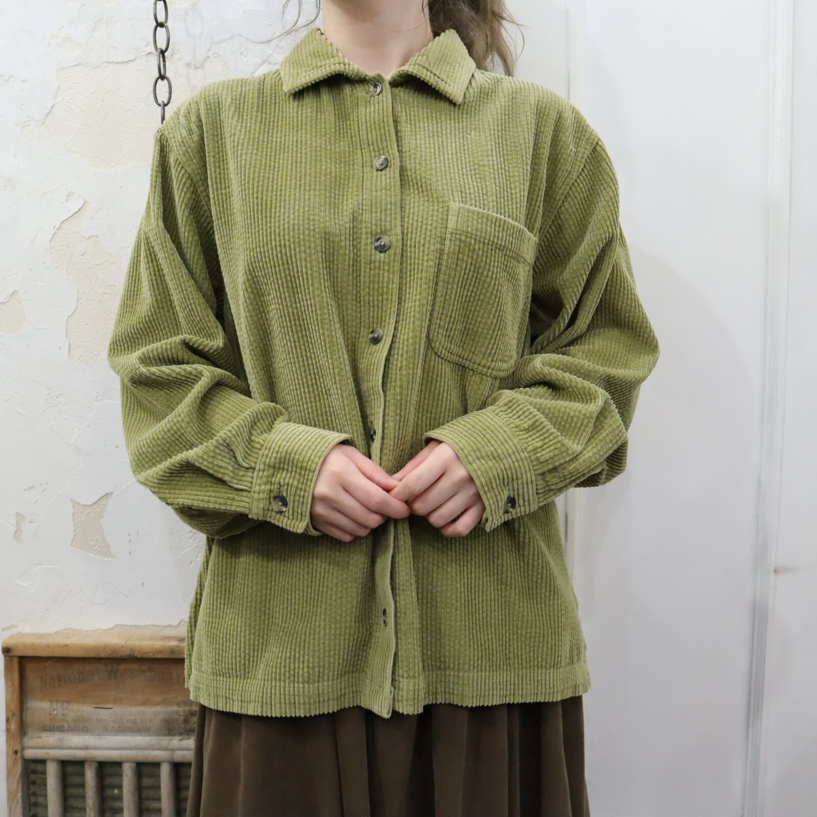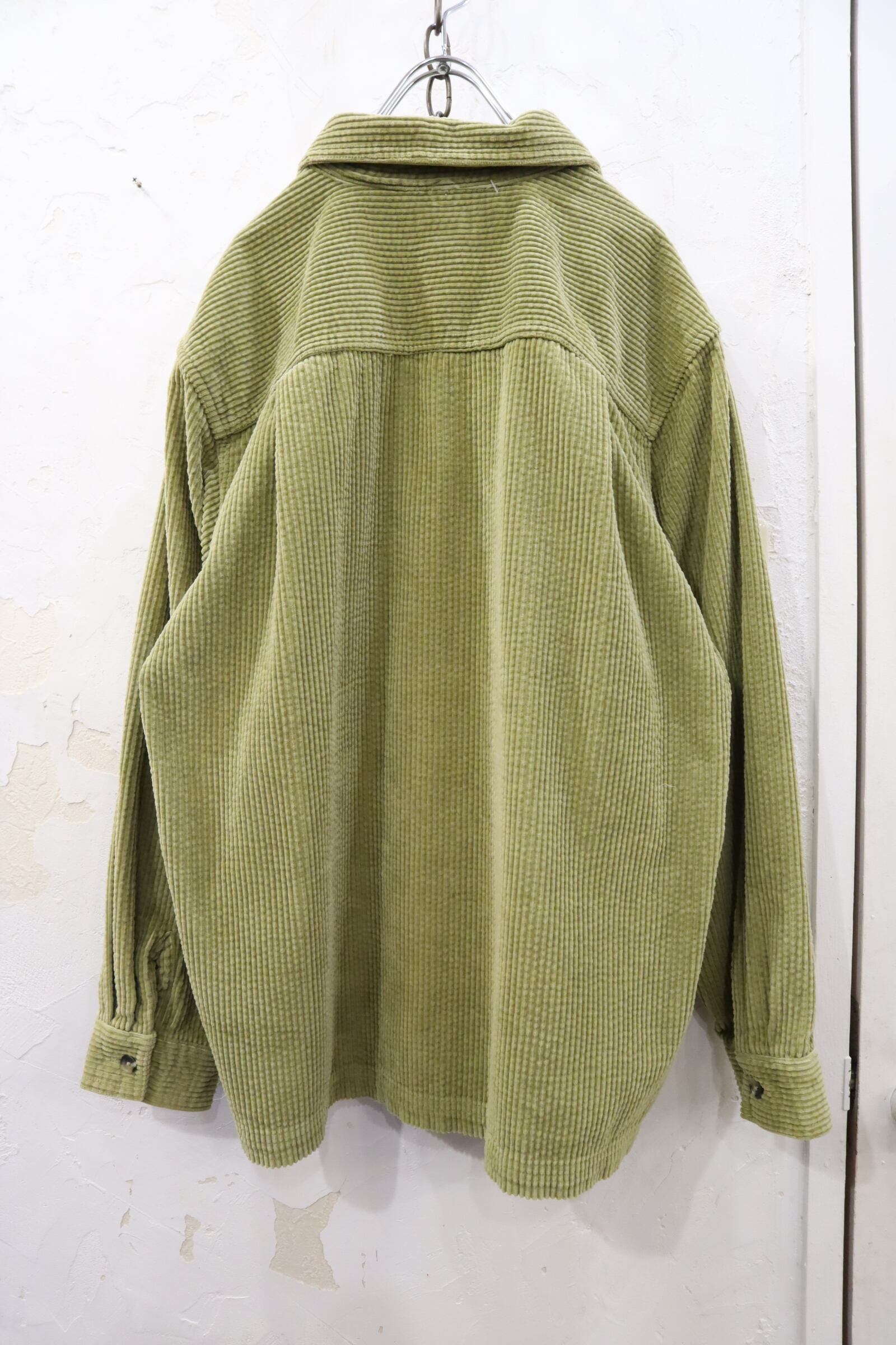 "L.L.Bean" lightgreen green plain corduroy shirt [l-2132]