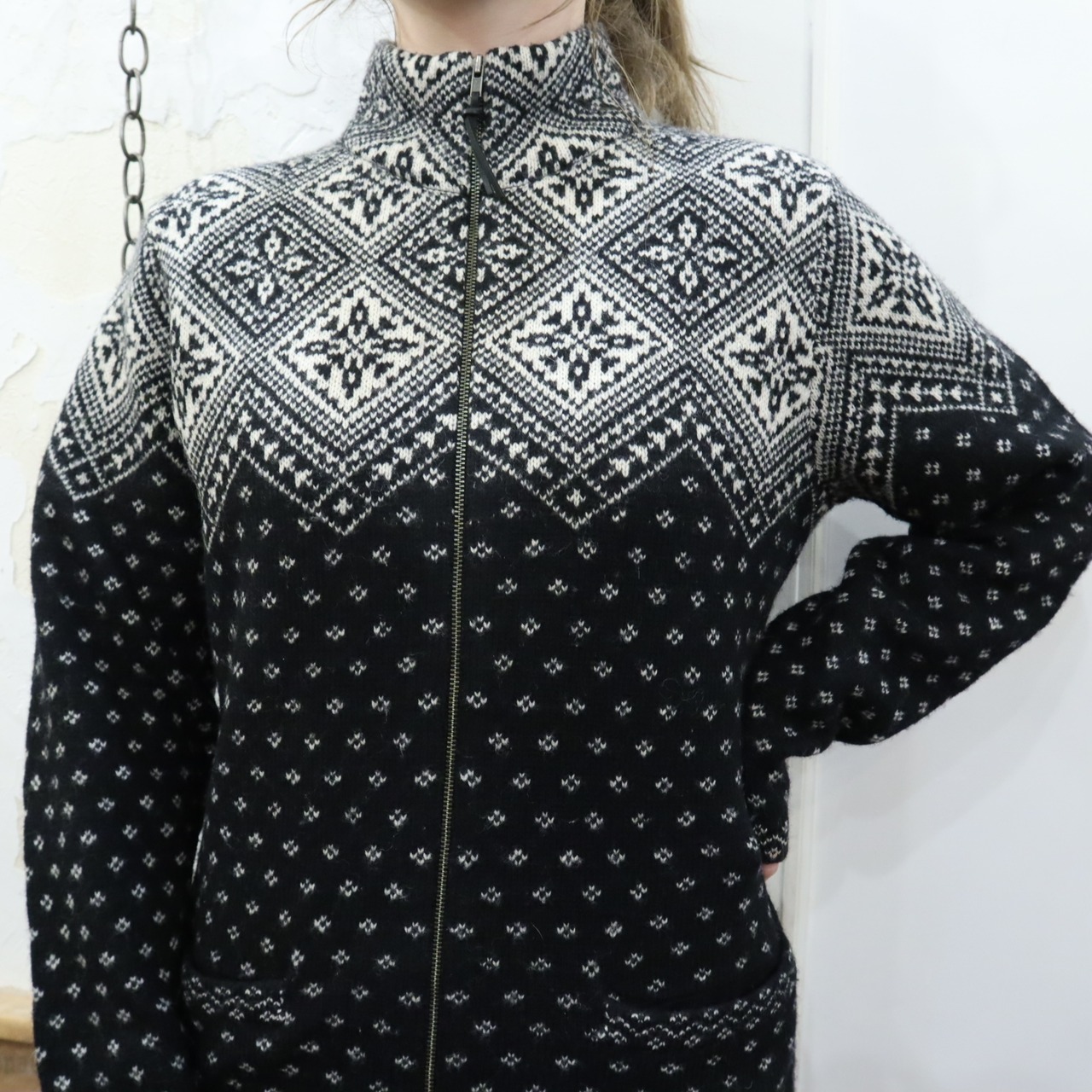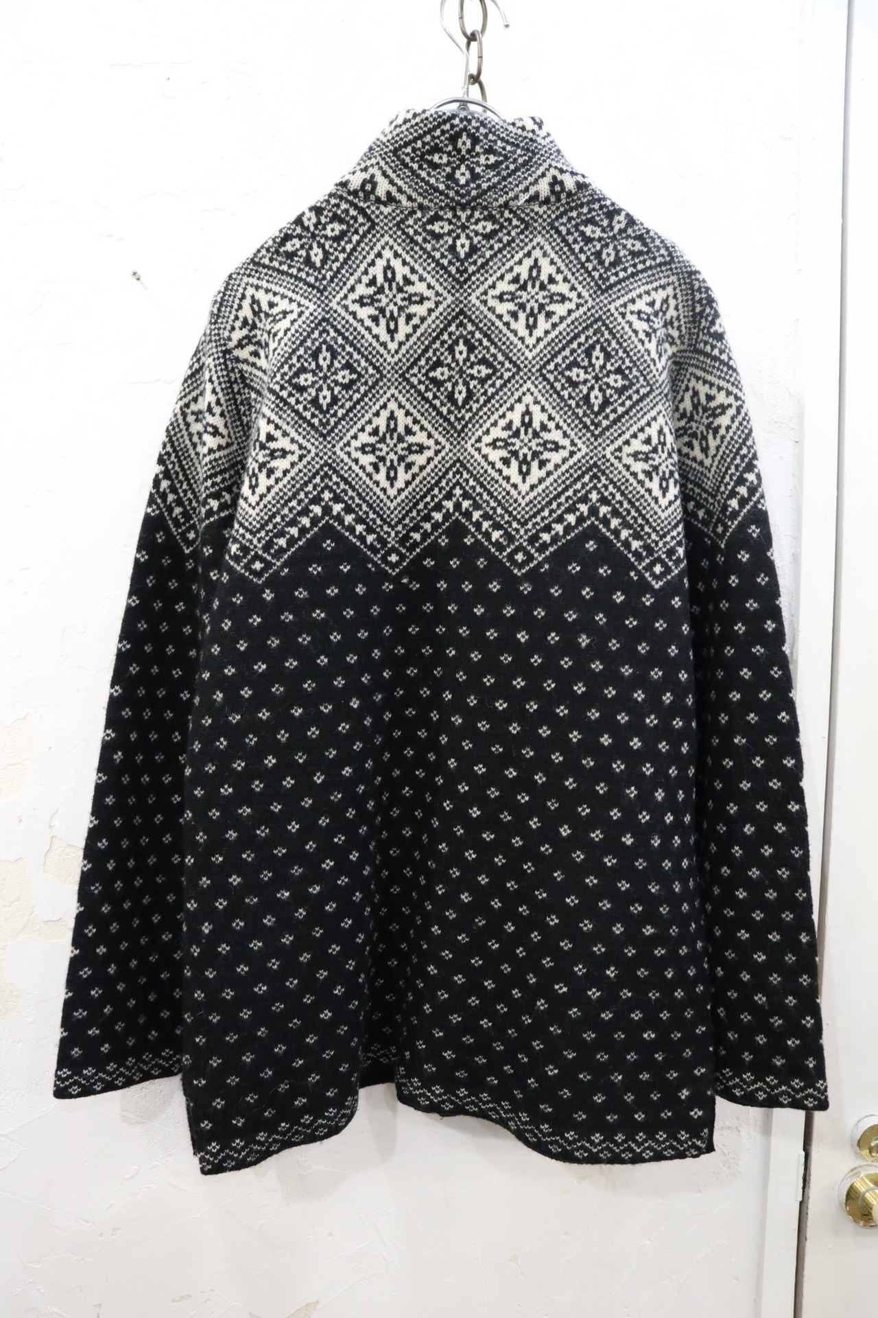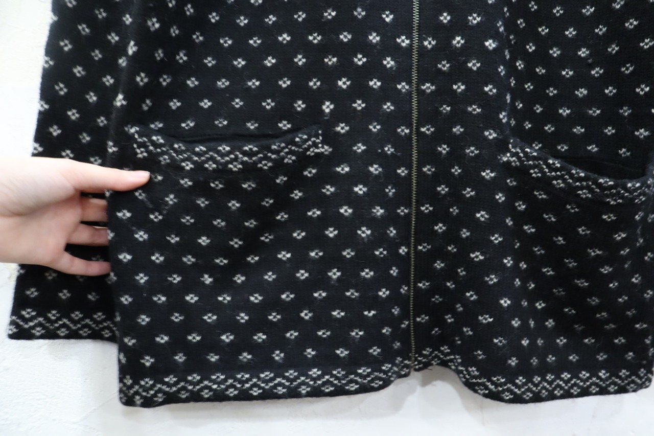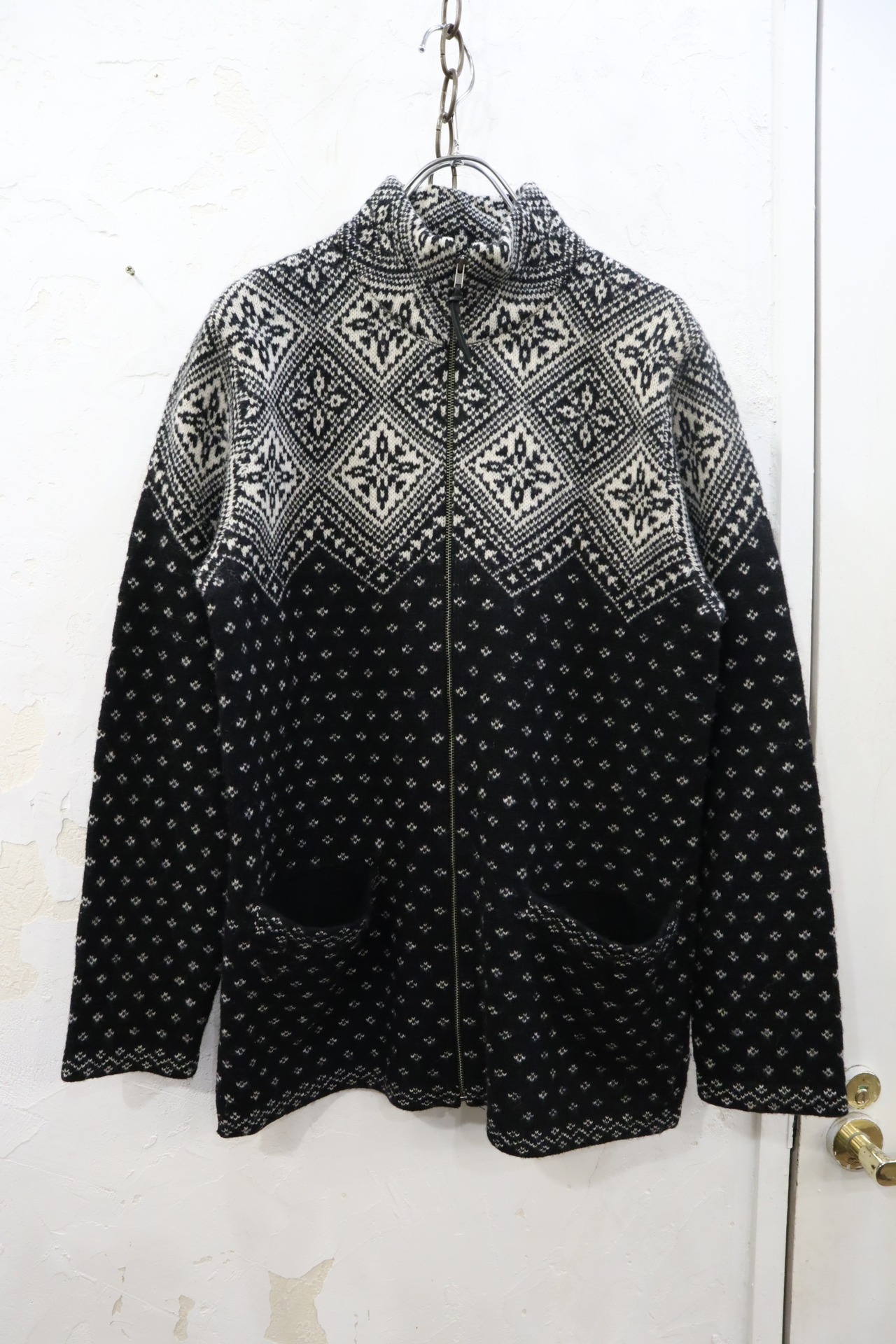 "Ralph Lauren" white×black snowflakes pattern wool fullzip knit cardigan [k-2154]