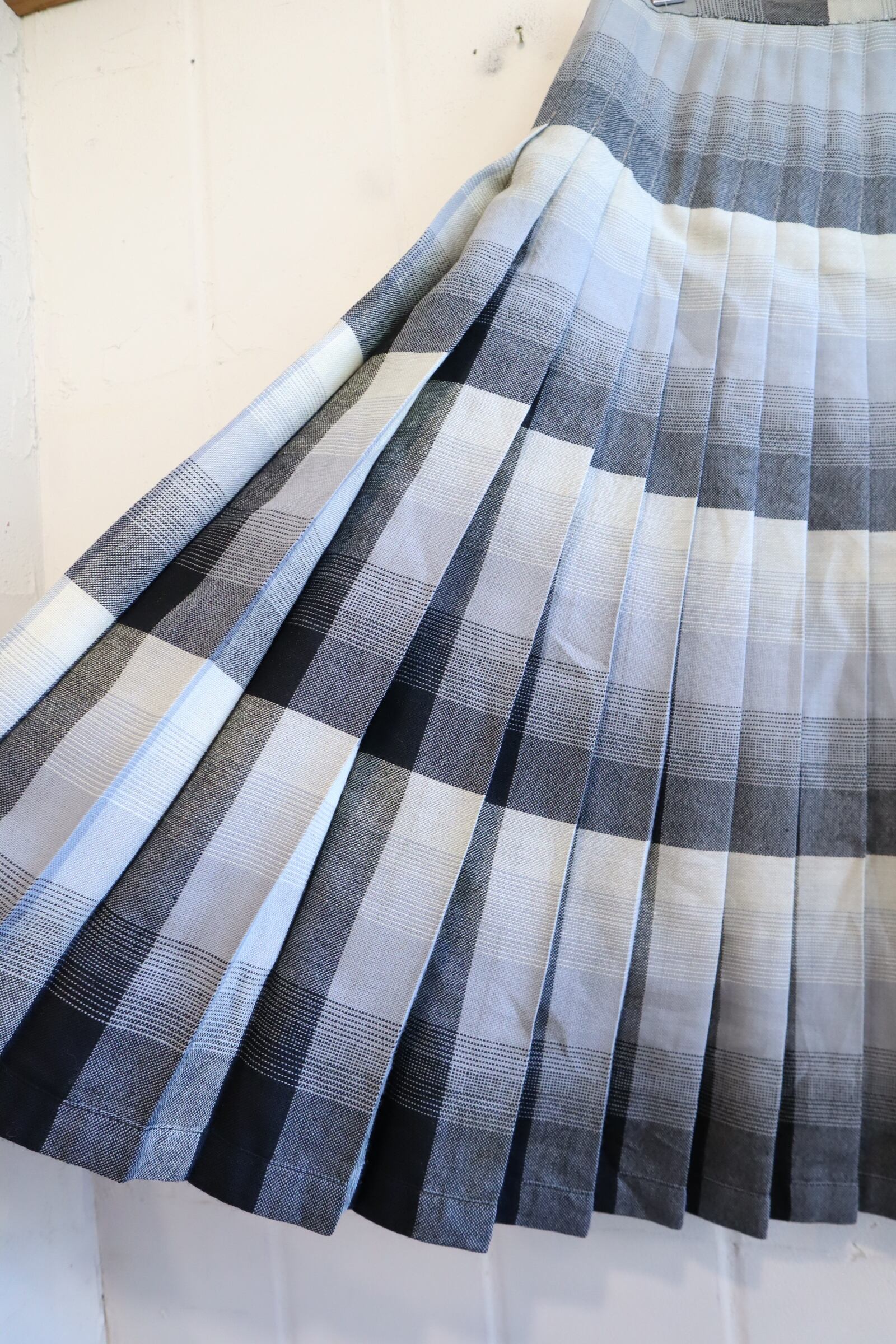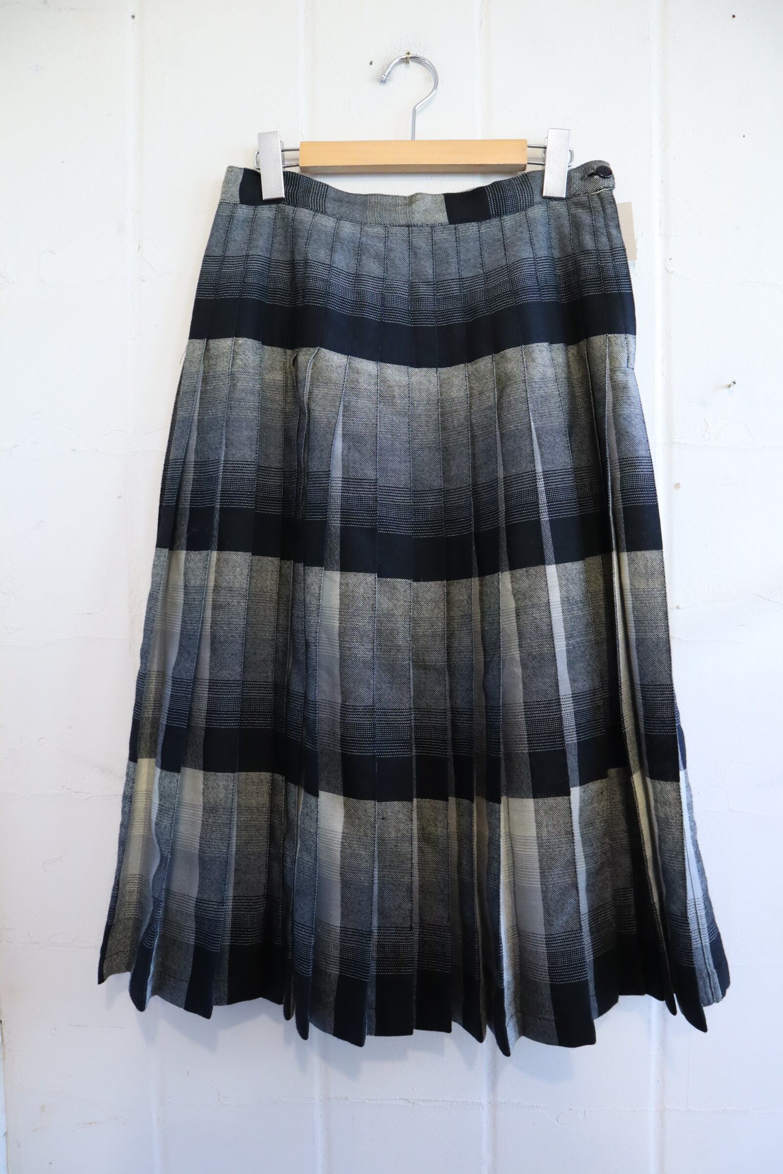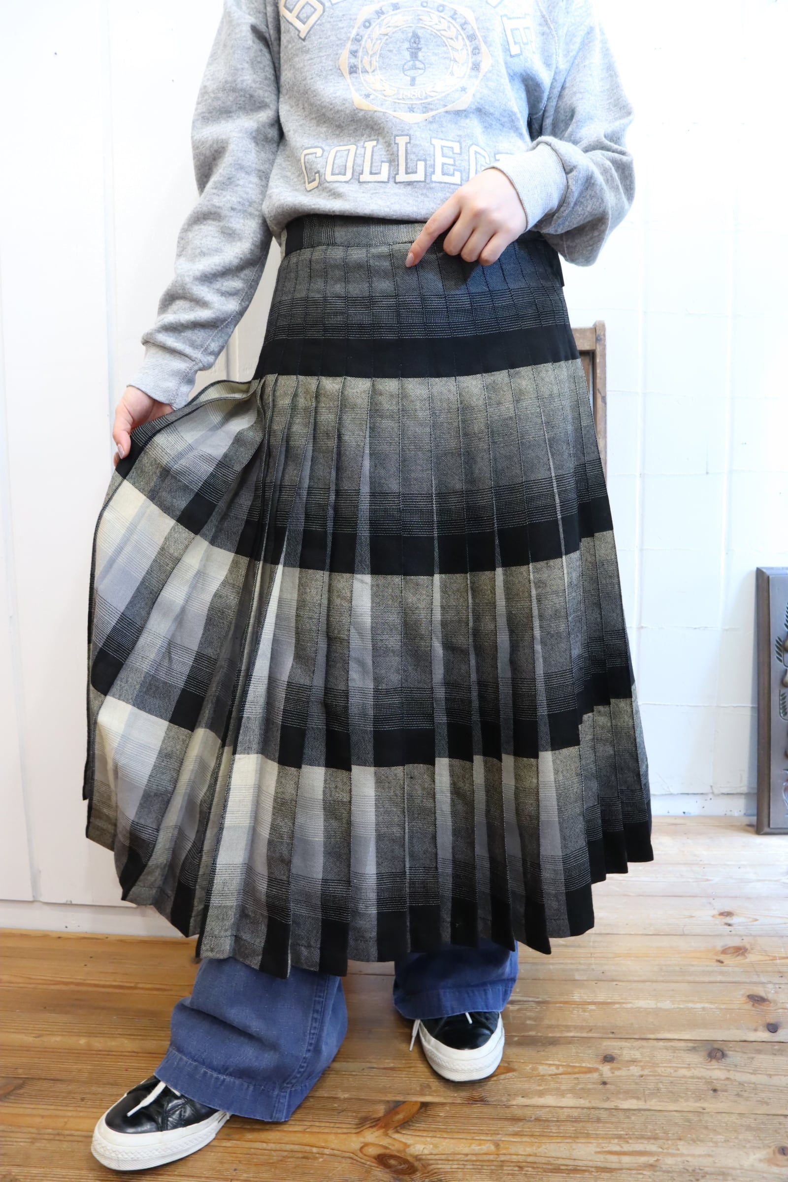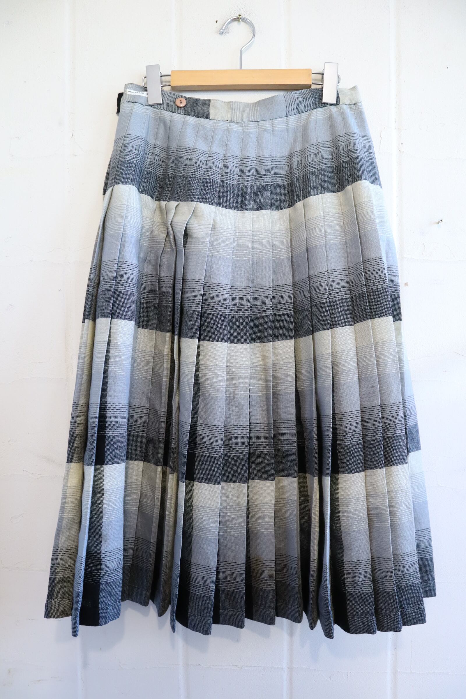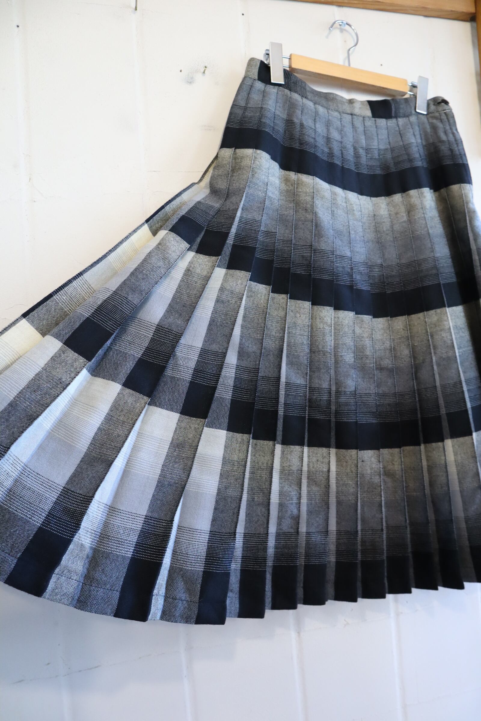 60s‐ black×gray gradation reversible pleats skirt [l-2158]
