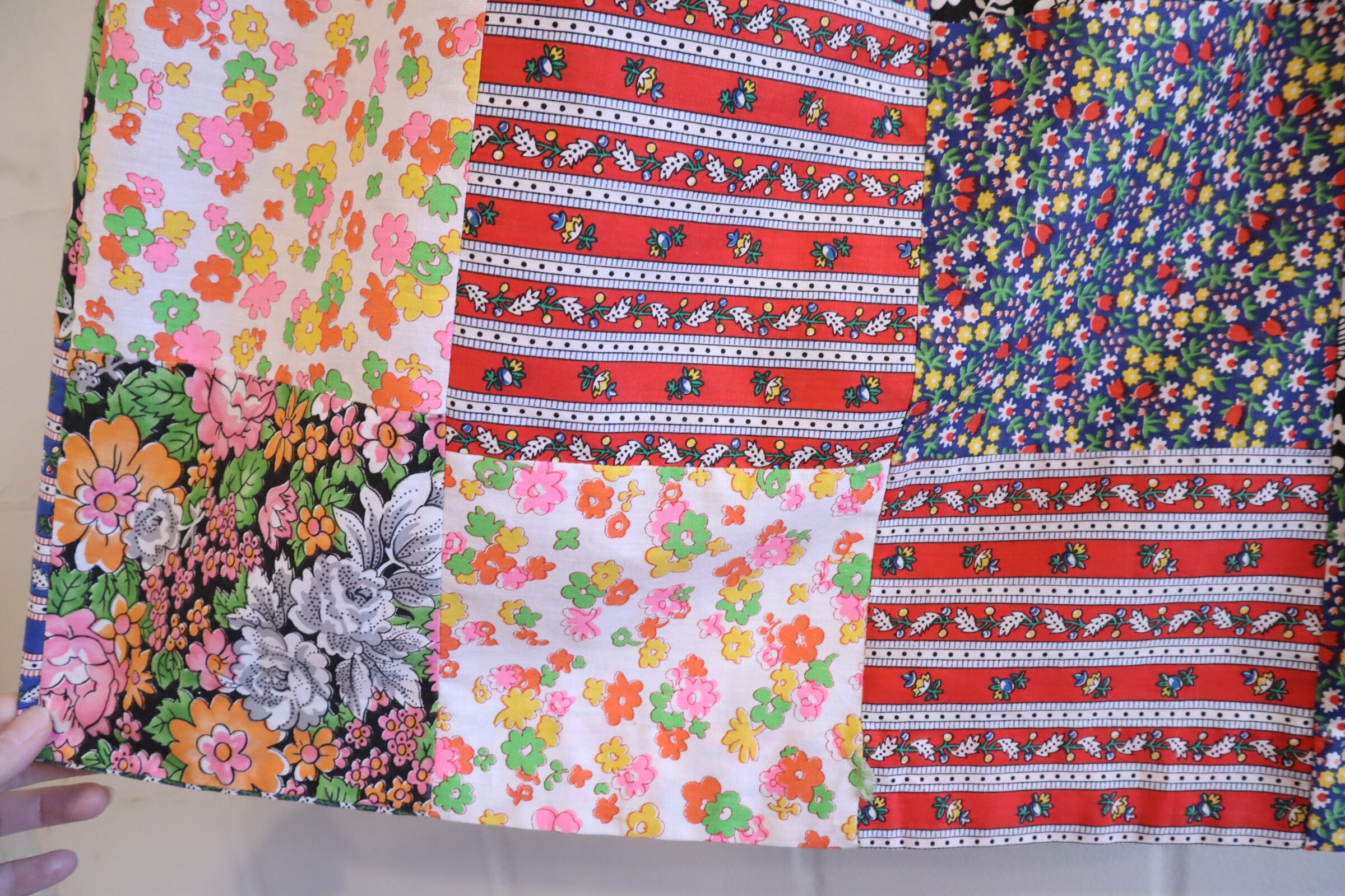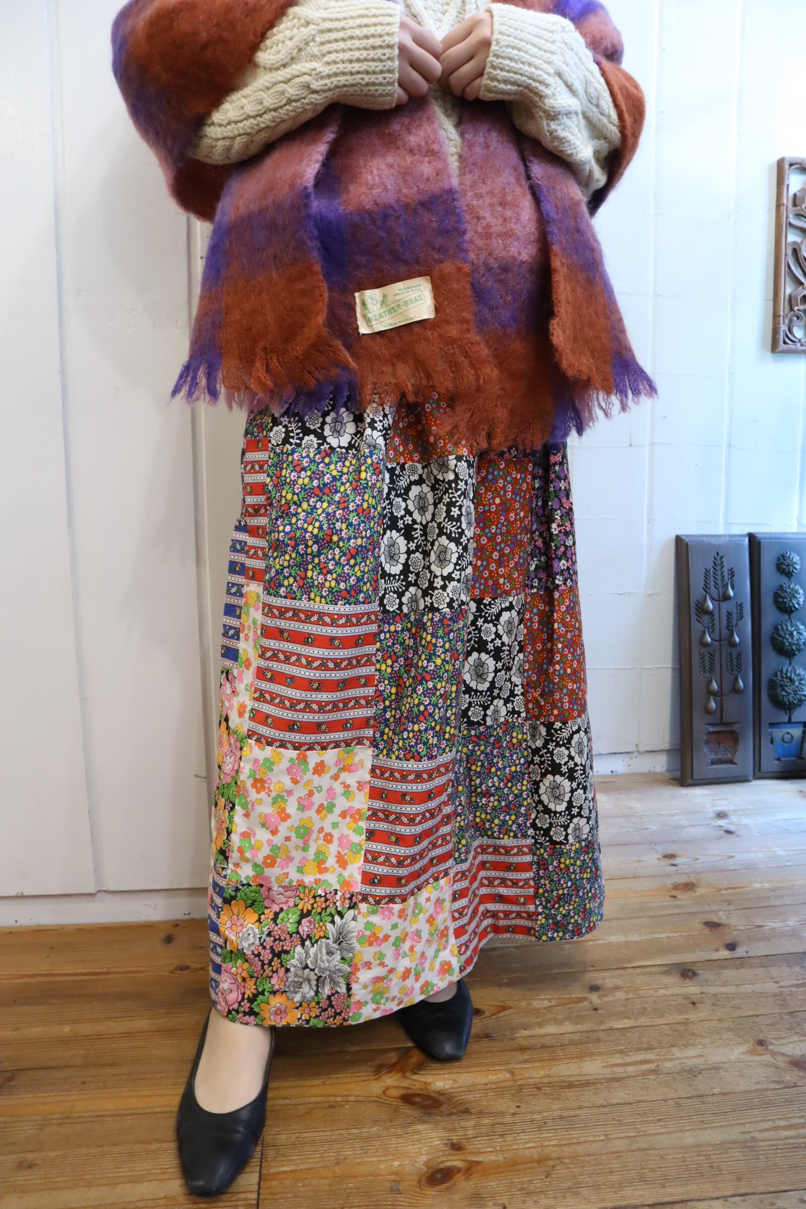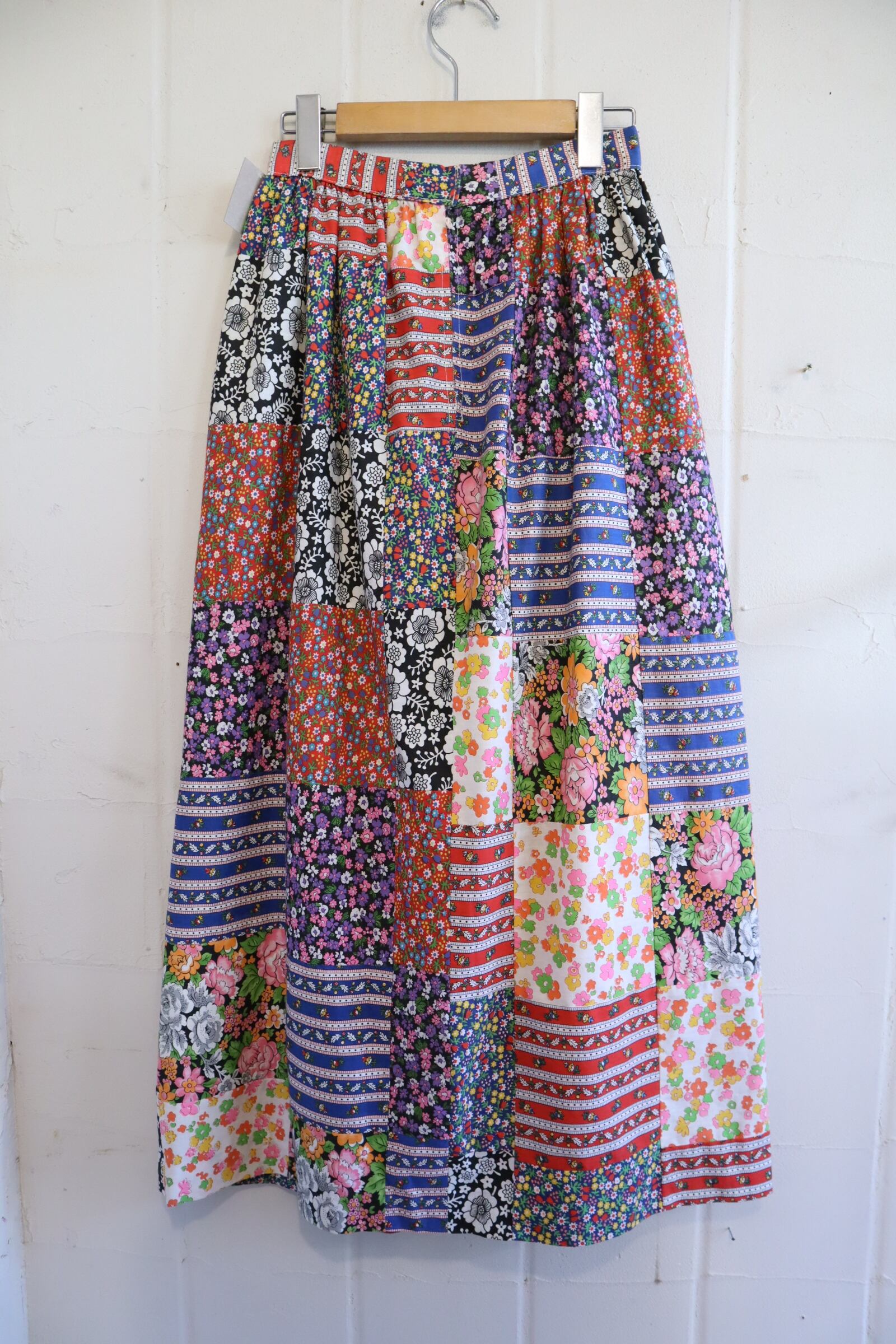 色々な花柄のパッチワークが素敵なスカート。