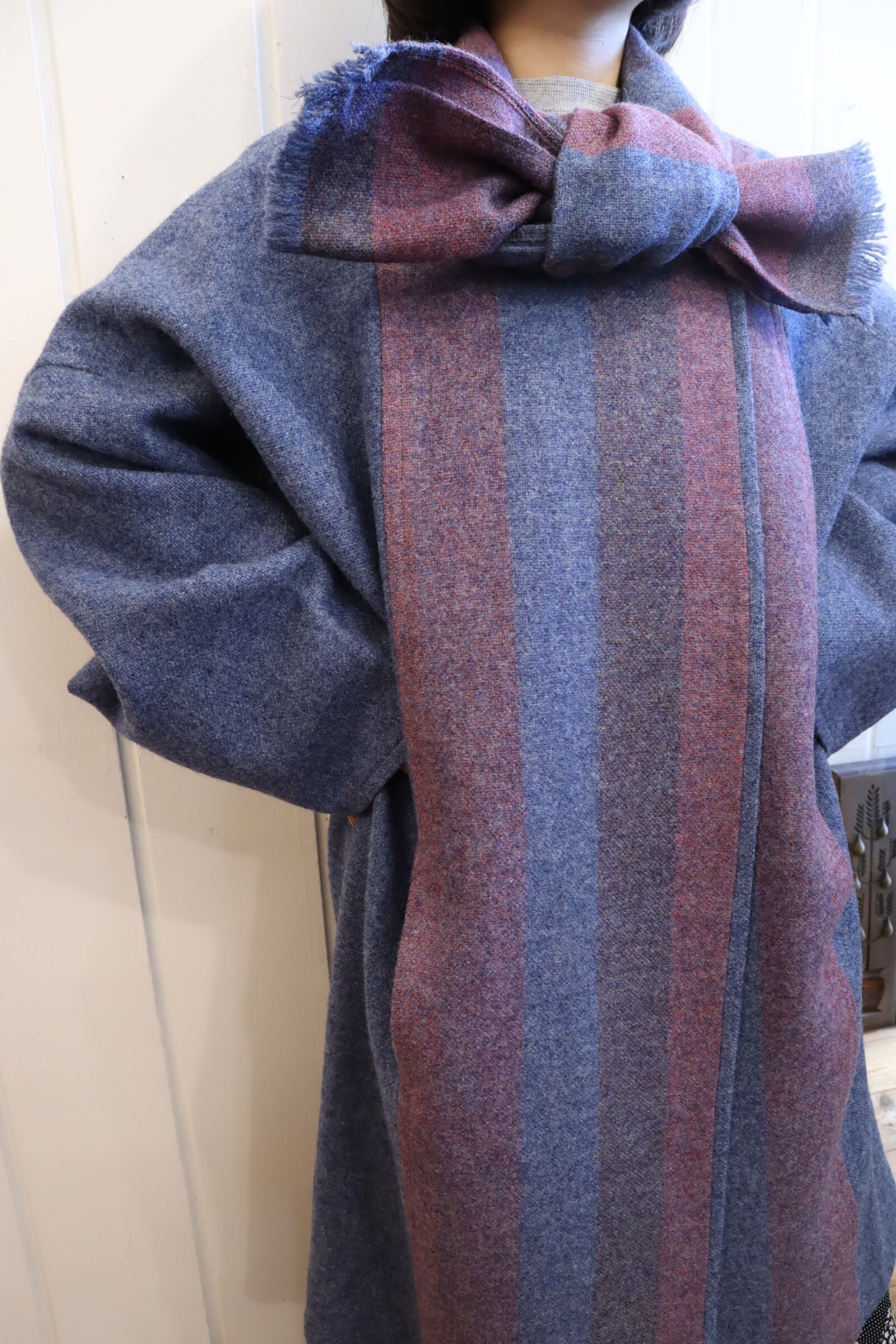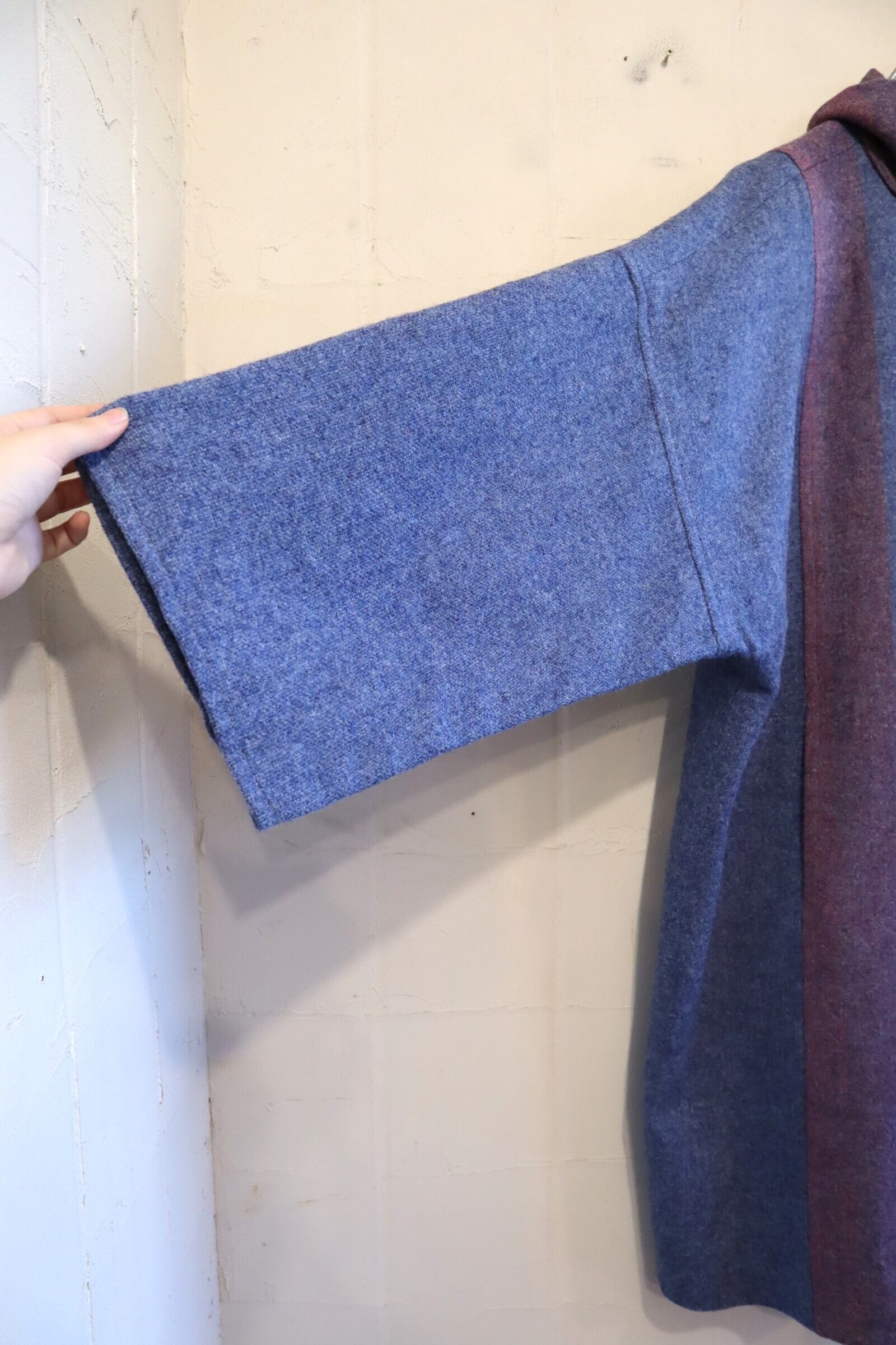 dull blue×dull purple line ribbon design wool coat [l-2169]