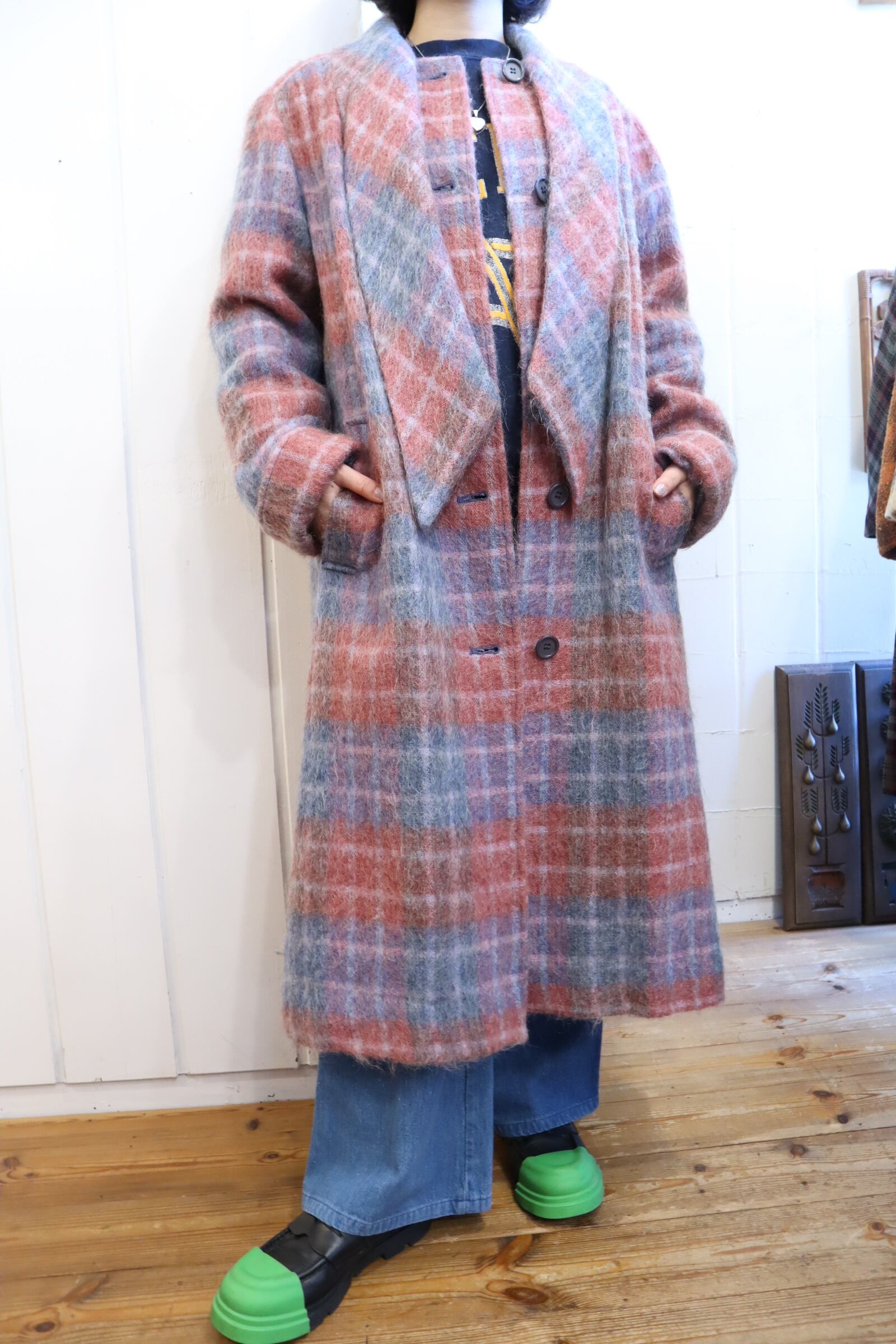 60s-70s blue×pink muffler collar mohair coat [l-2178]