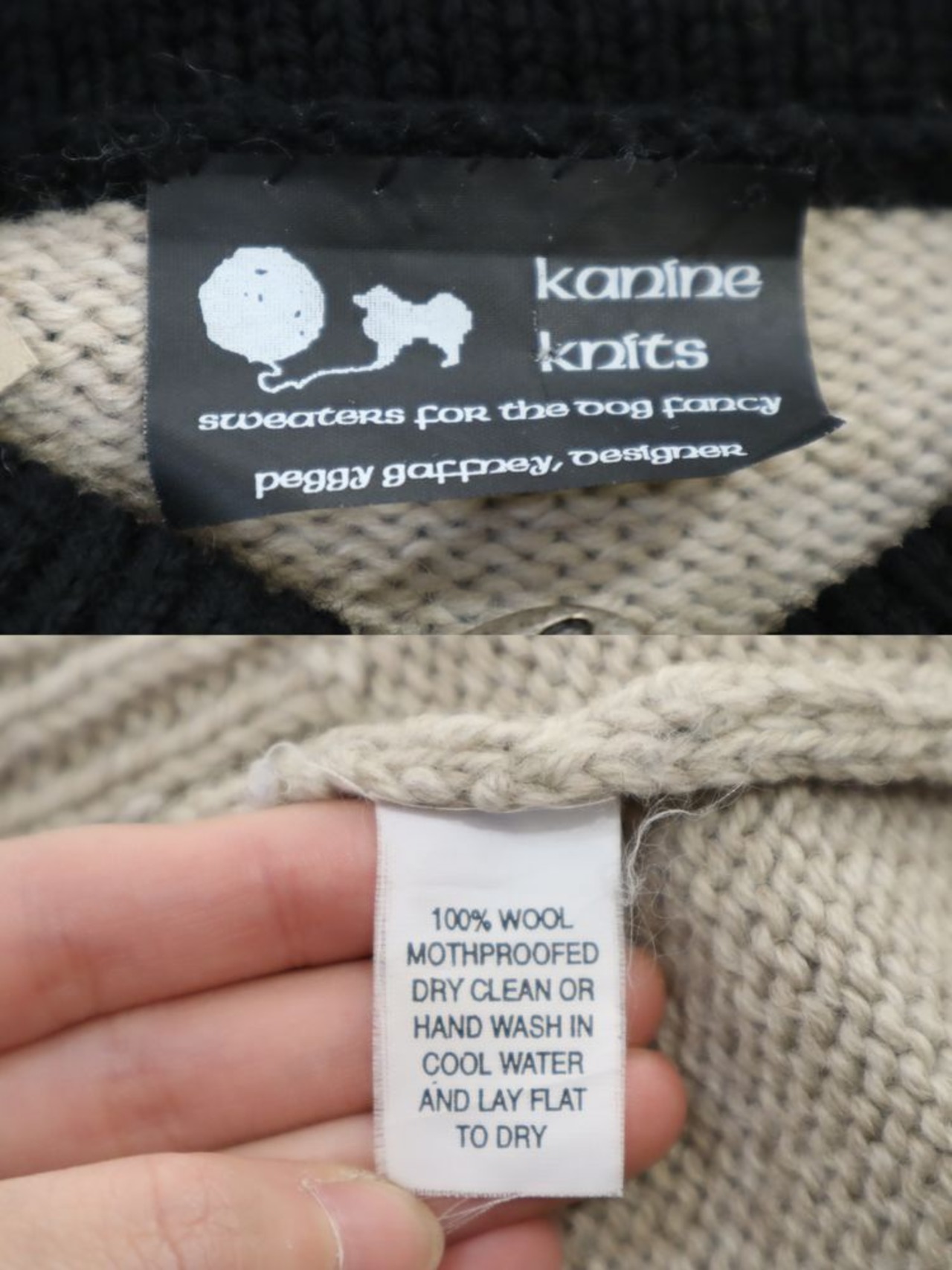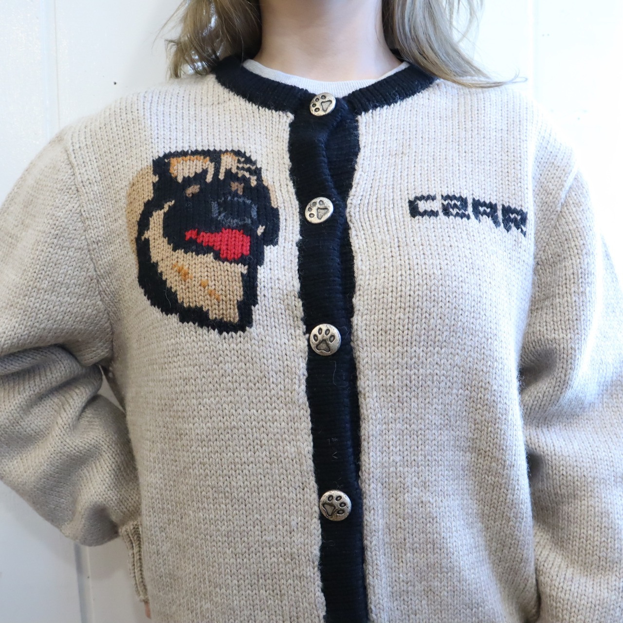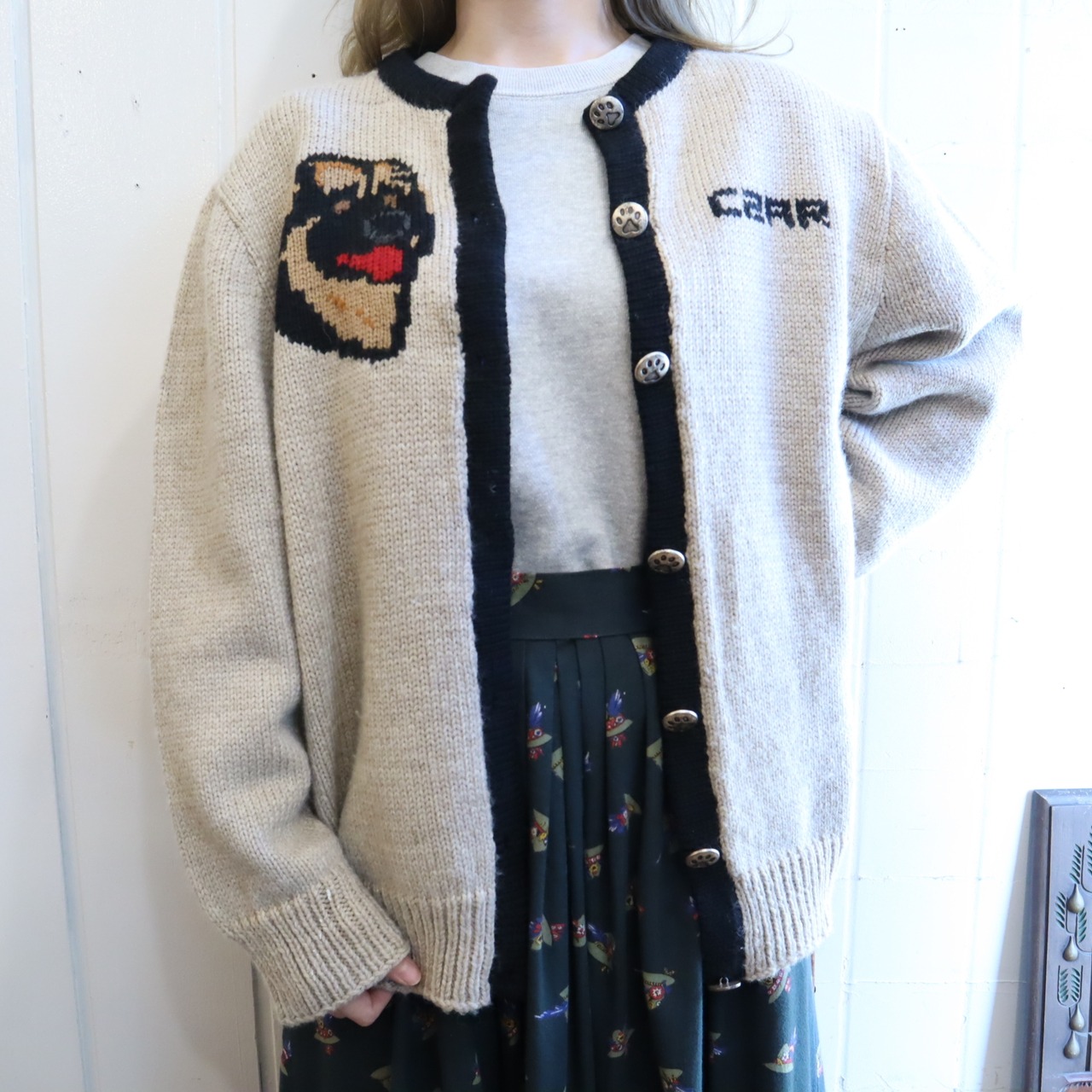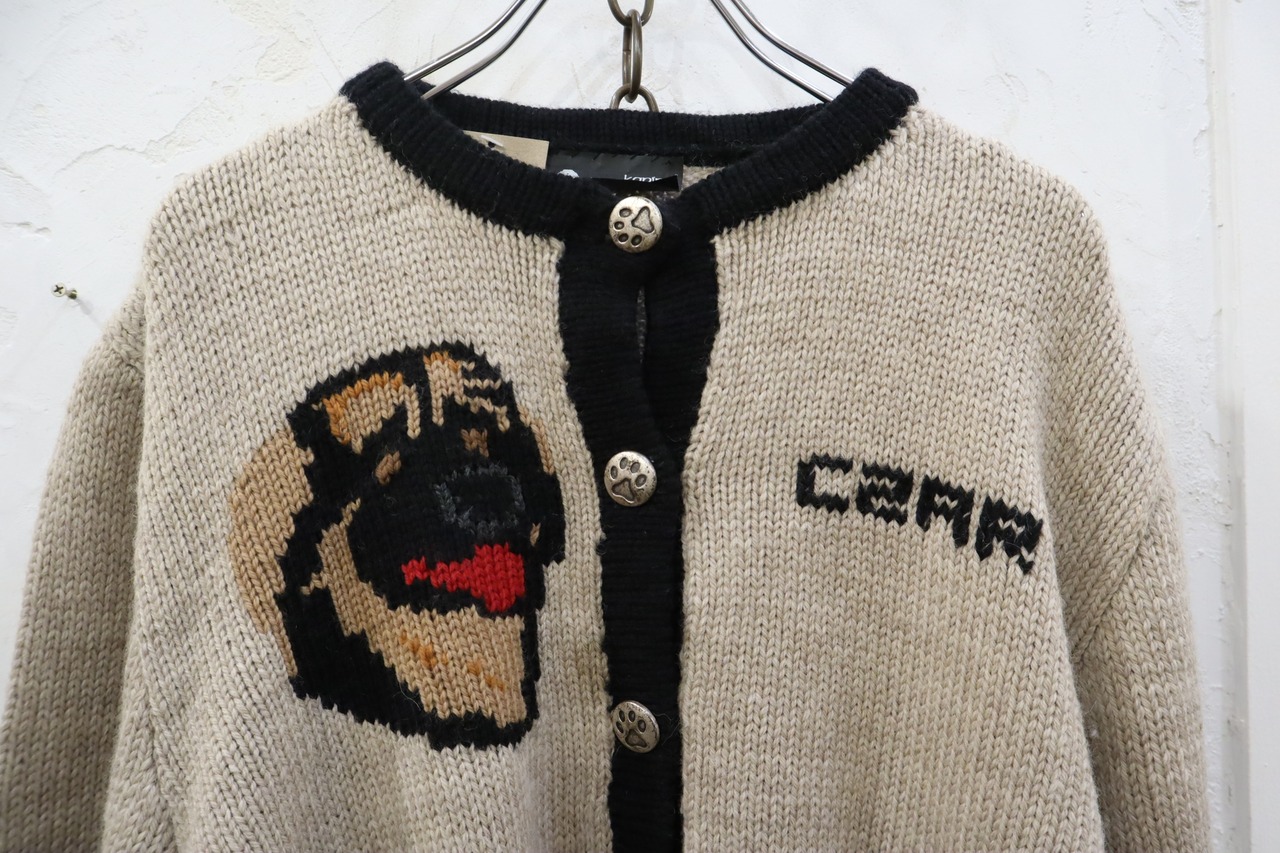 beige×black×red dog pattern wool knit cardigan [l-2179]
