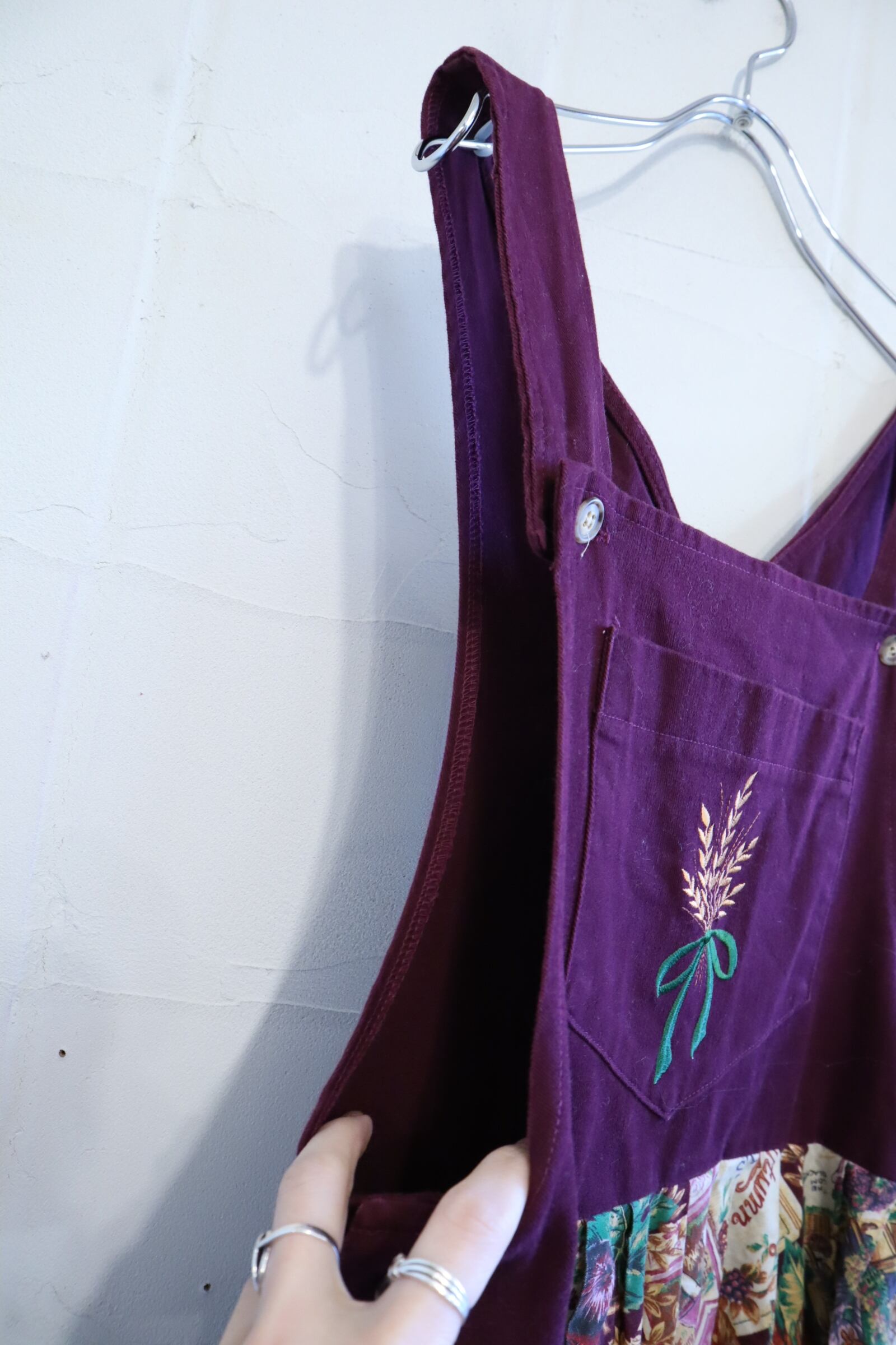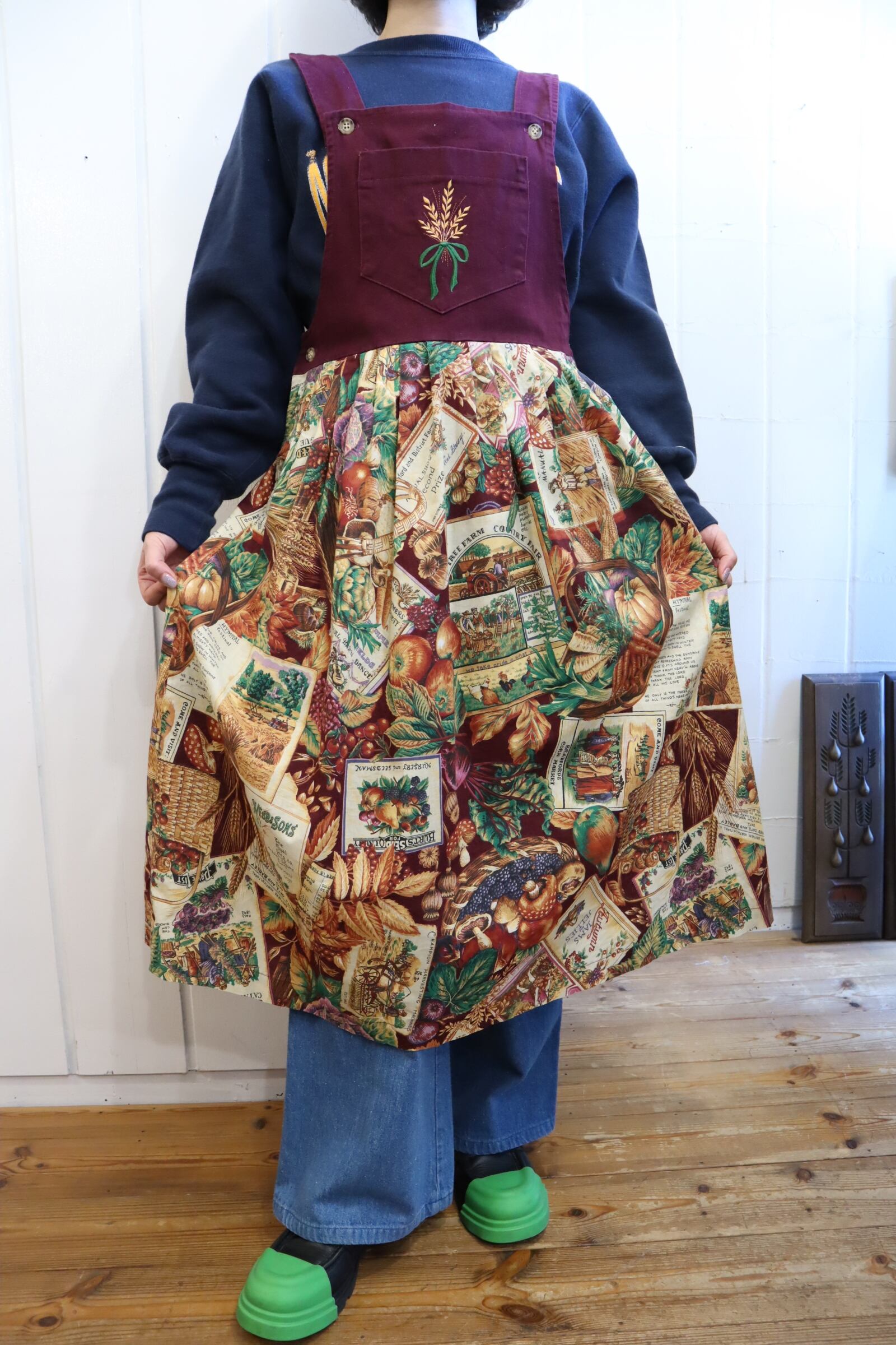 収穫祭のようなテキスタイルと刺繍が可愛いUSA製のジャンパードレス。