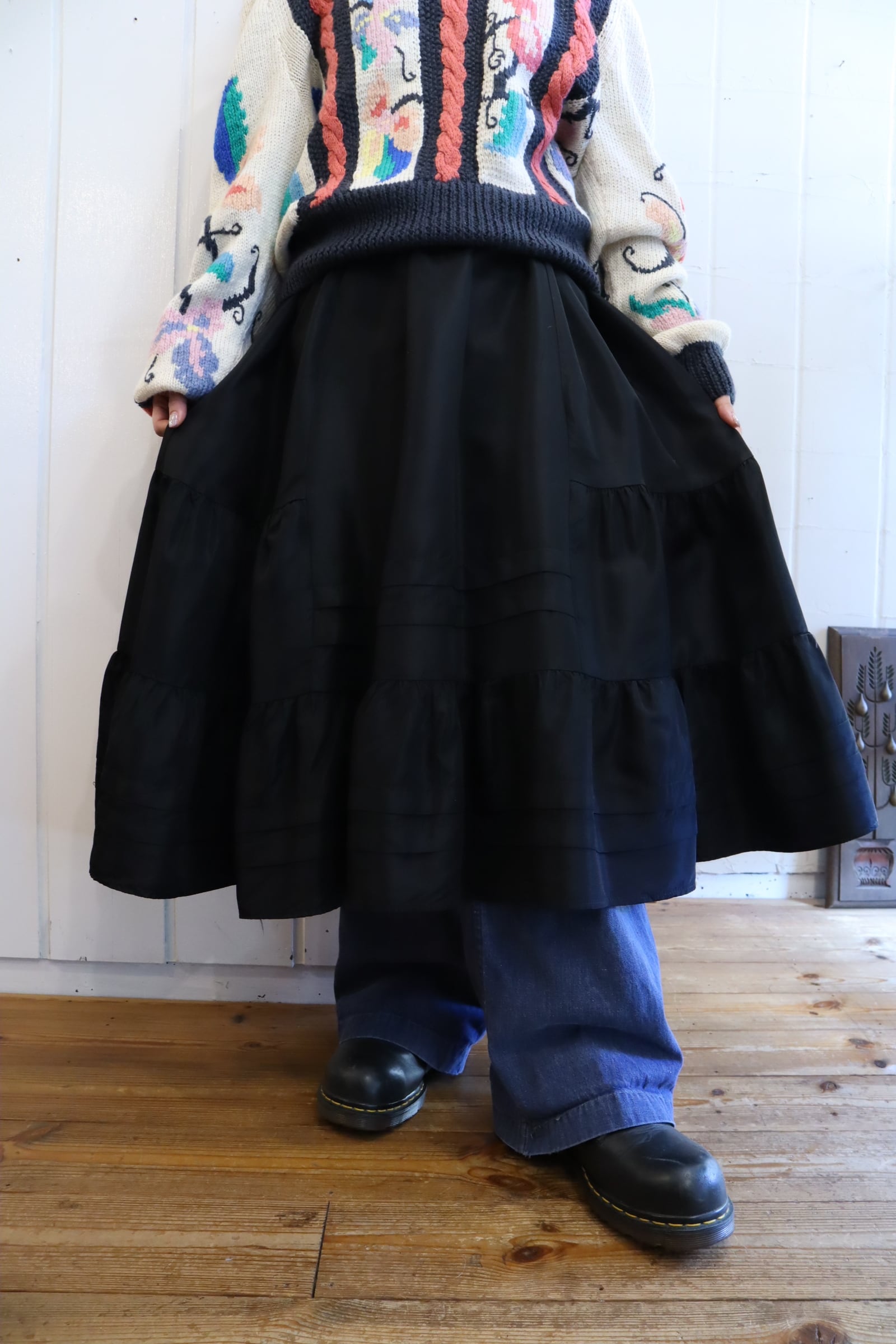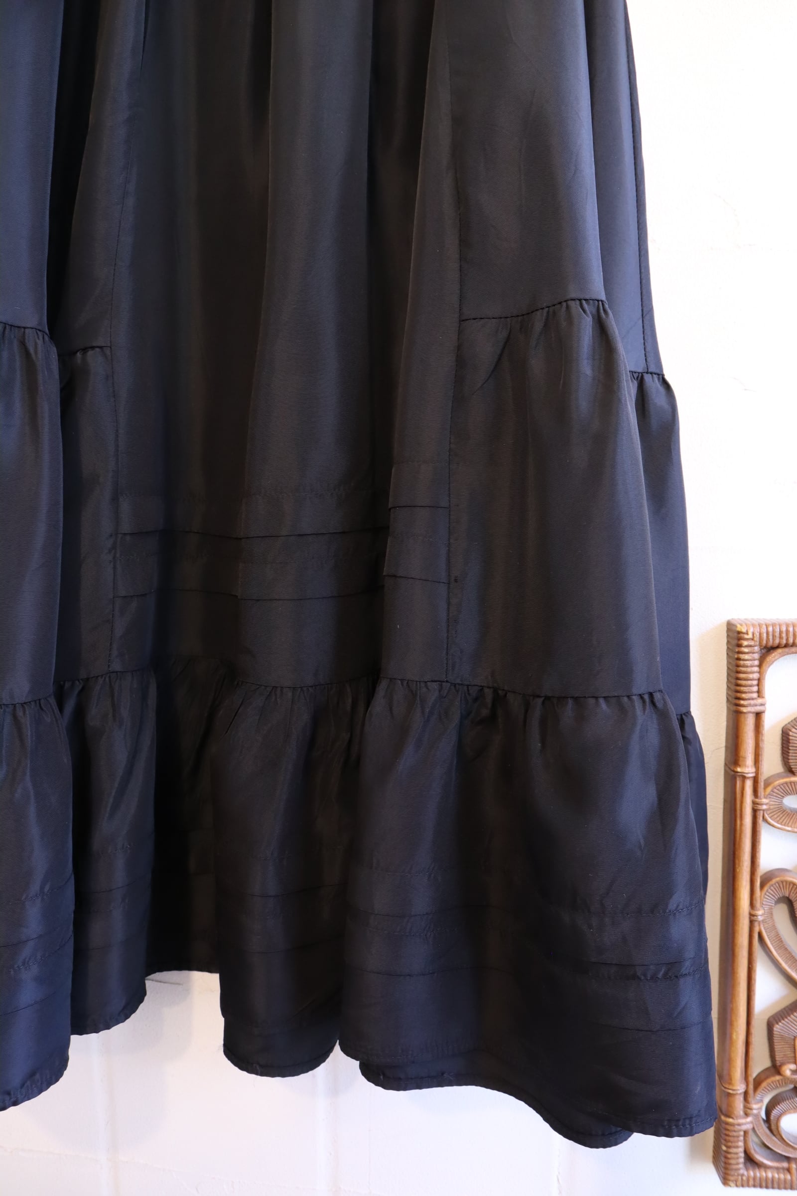 70s GUNNE SAX black plain tiered skirt [l-2194]