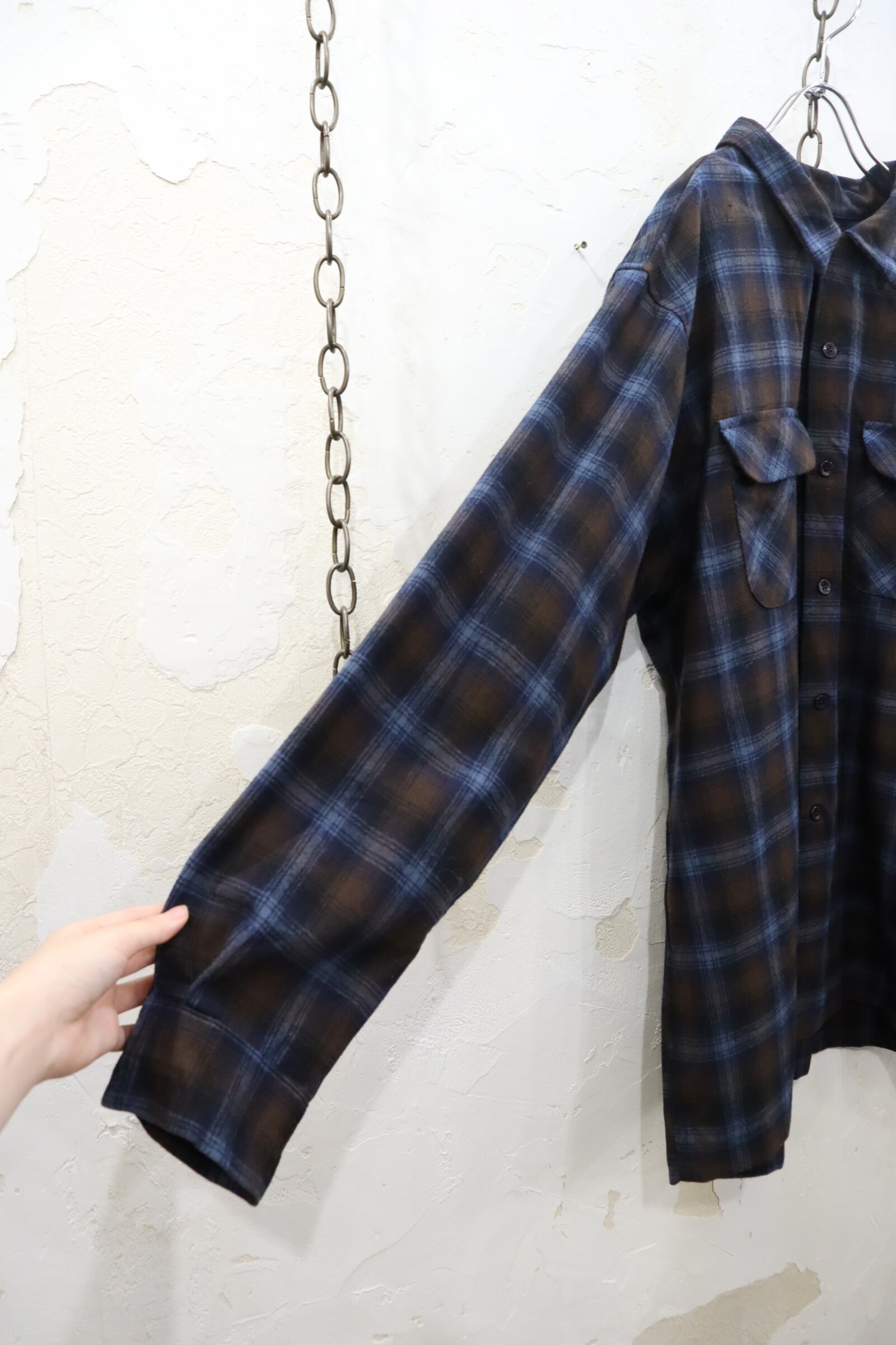PENDLETON navy×lightblue×brown plaid wool shirt [k-2206]