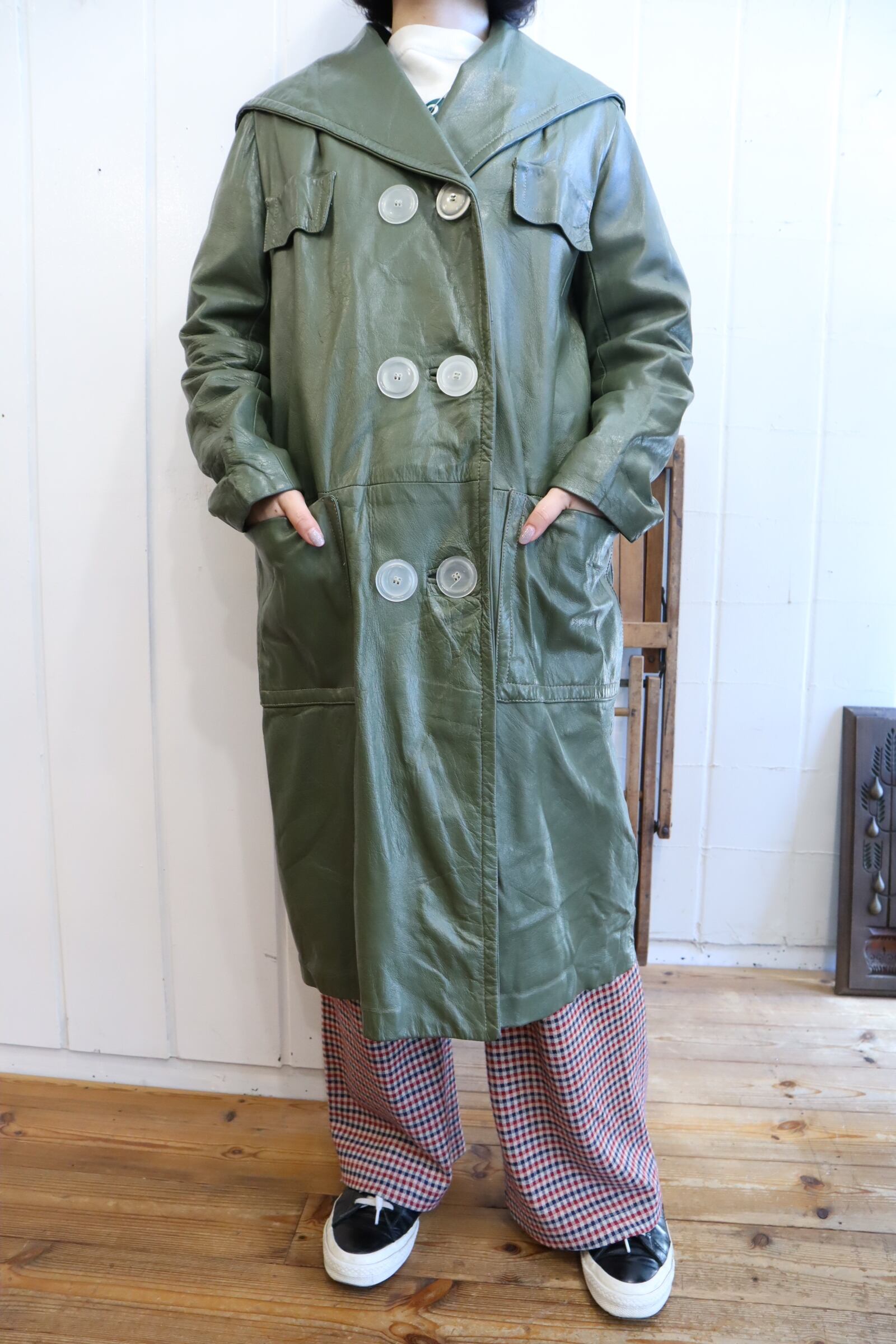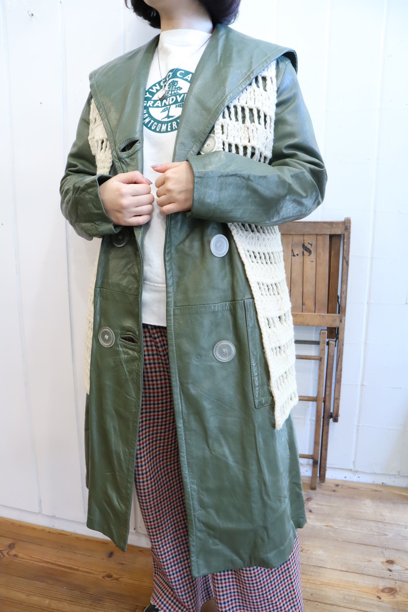ダブルボタンのデザインが素敵なヴィンテージレザーコート。