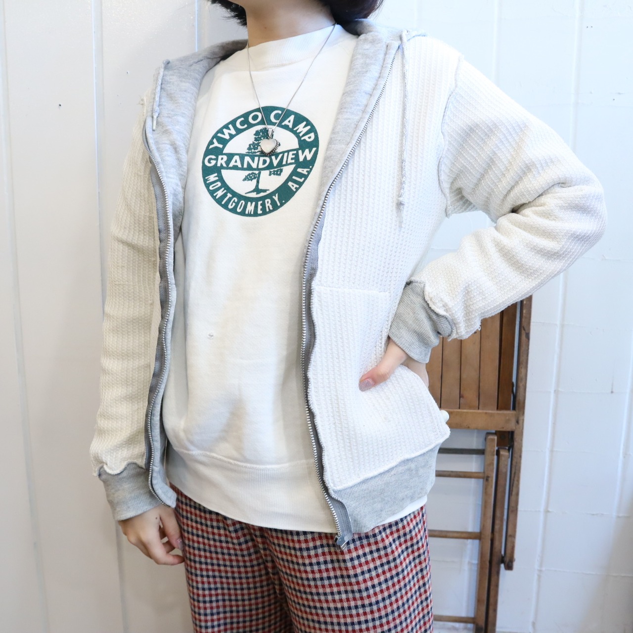 いくつかシミ汚れ汚れがございますが、古着の味として着て頂けるかと思われます。