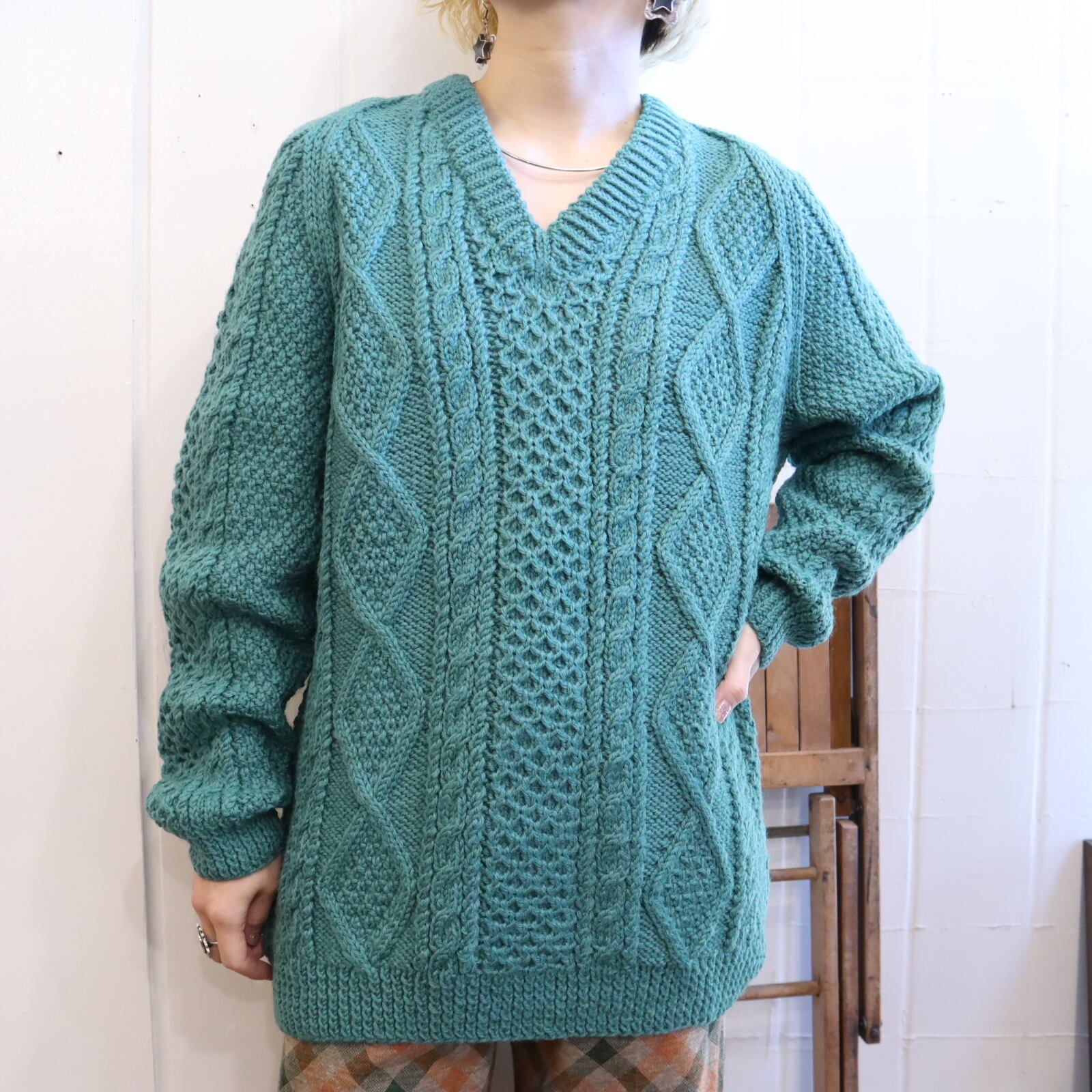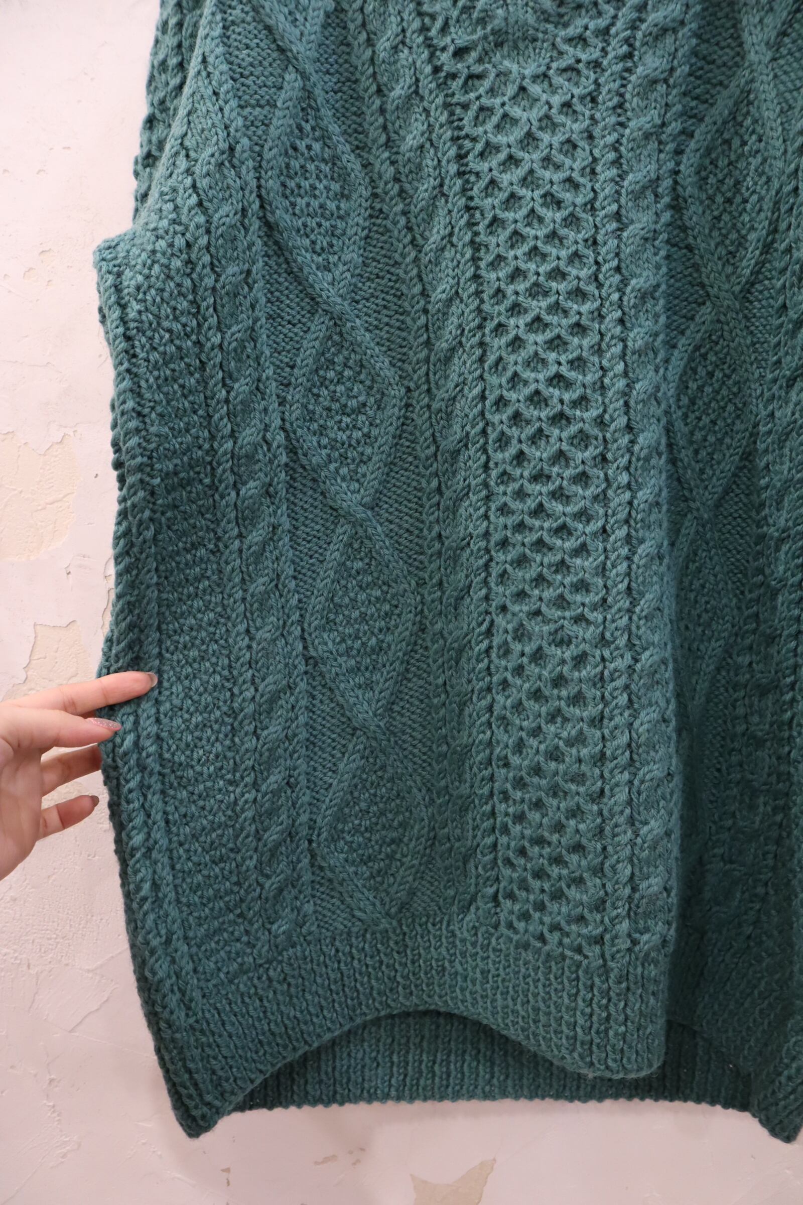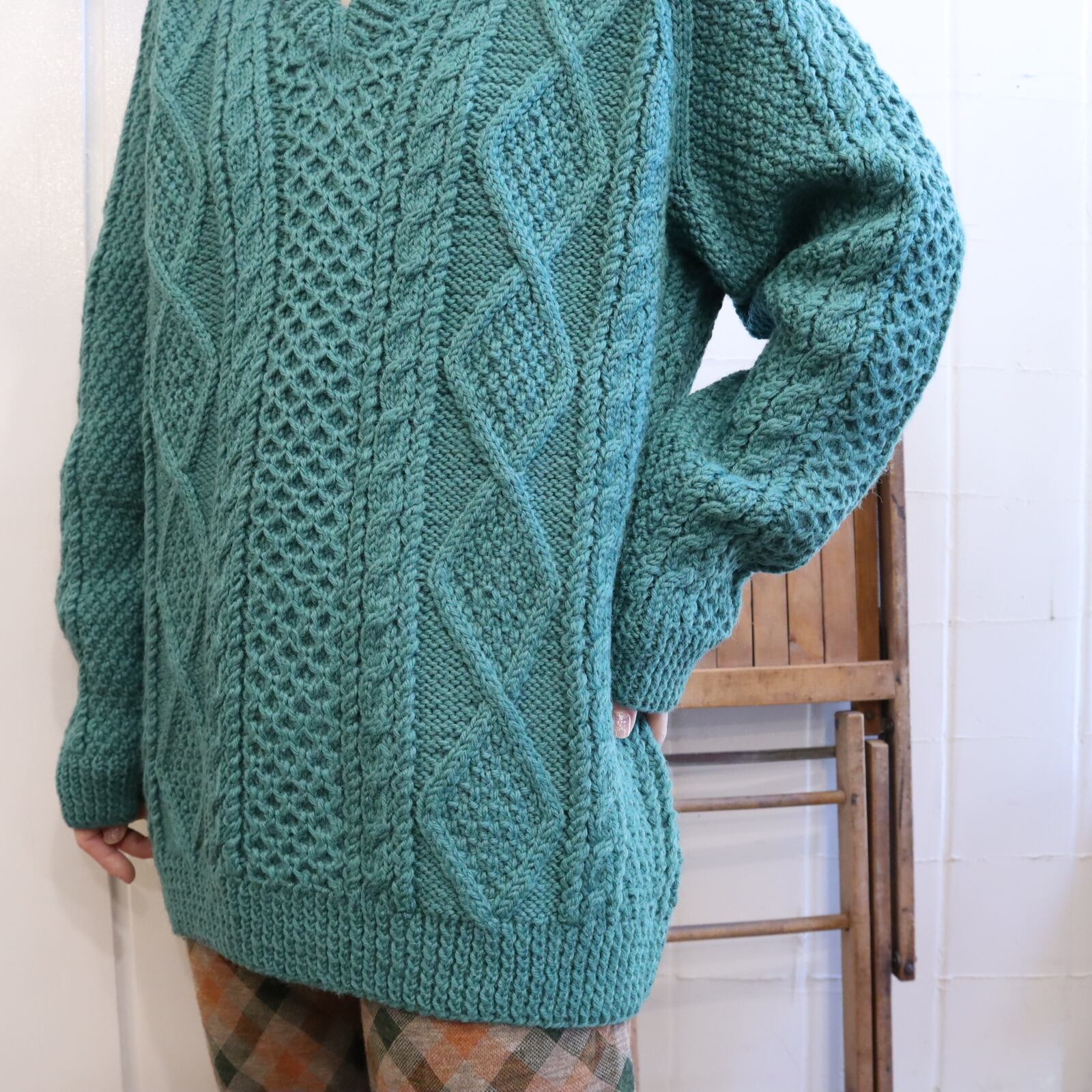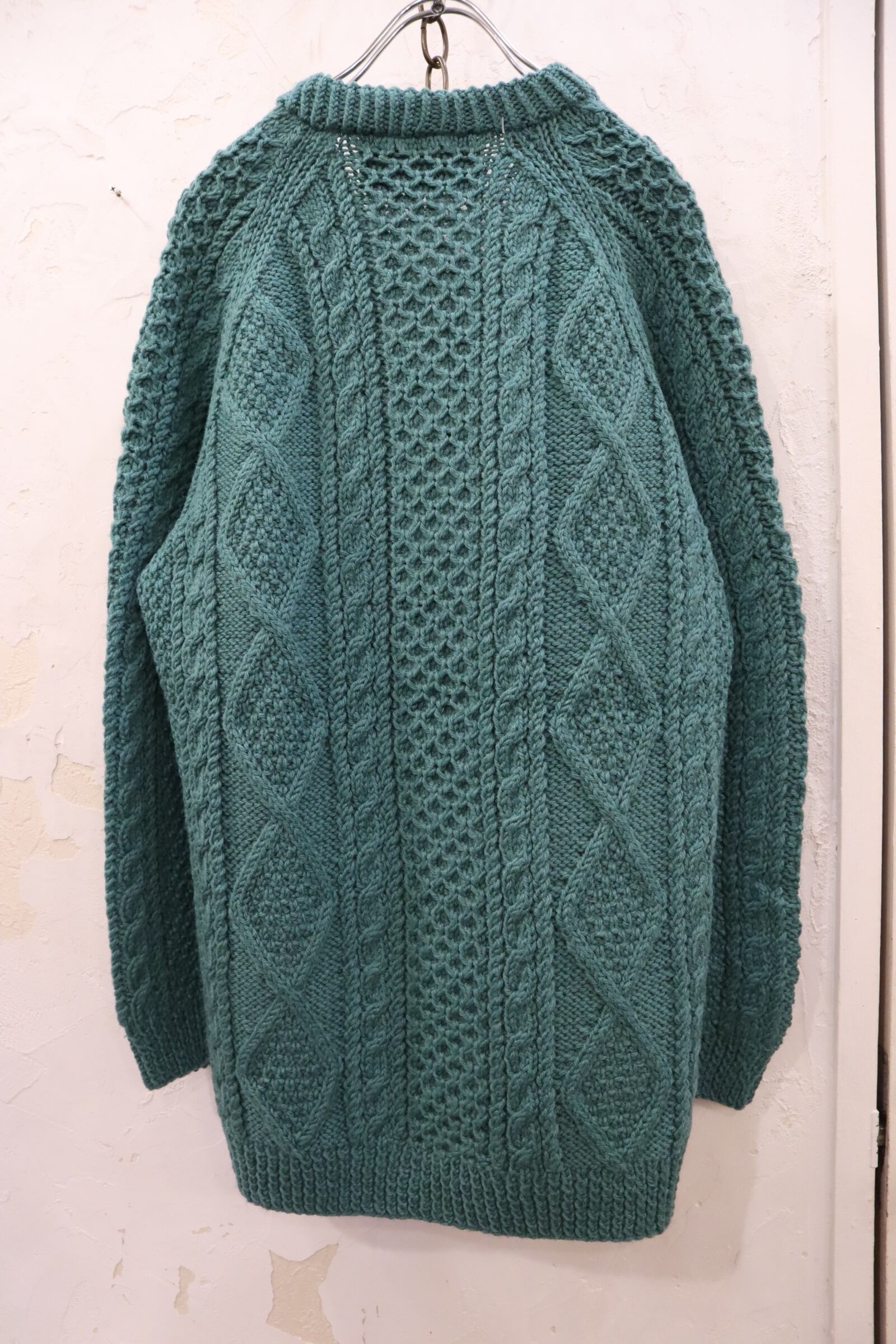 mossgreen plain fisherman knit pullover [l-2220]